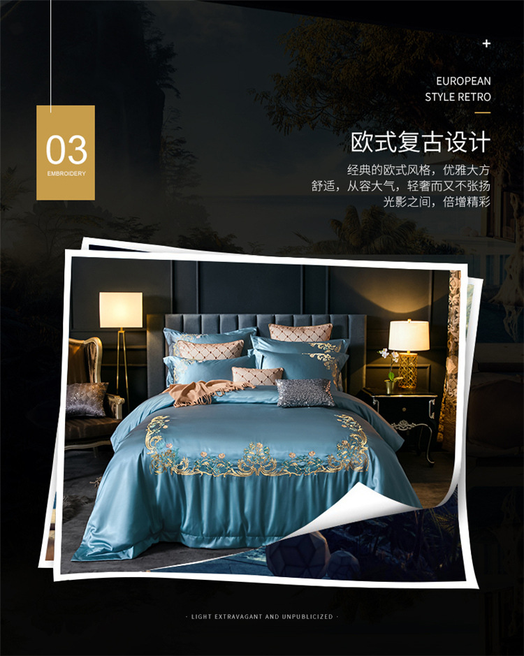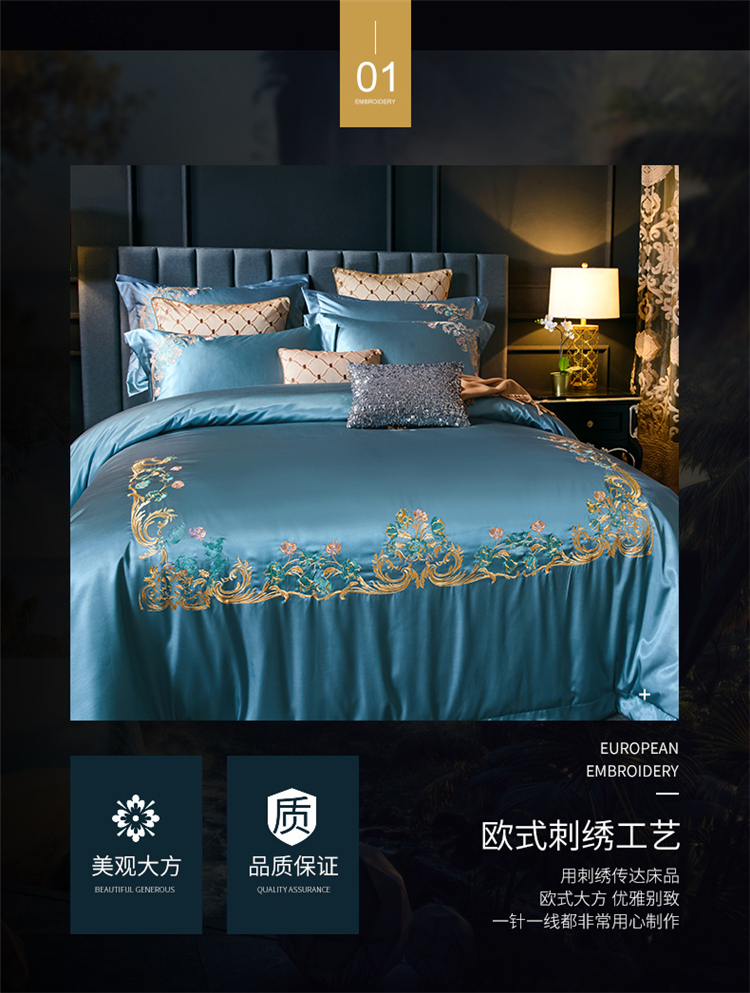 商品名称:千禧婚庆专供 高精密纯丝绣 奥兰帝-浅兰