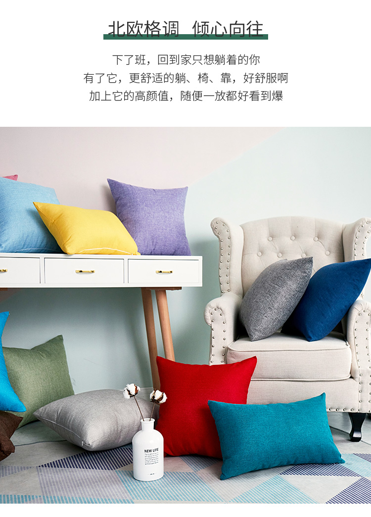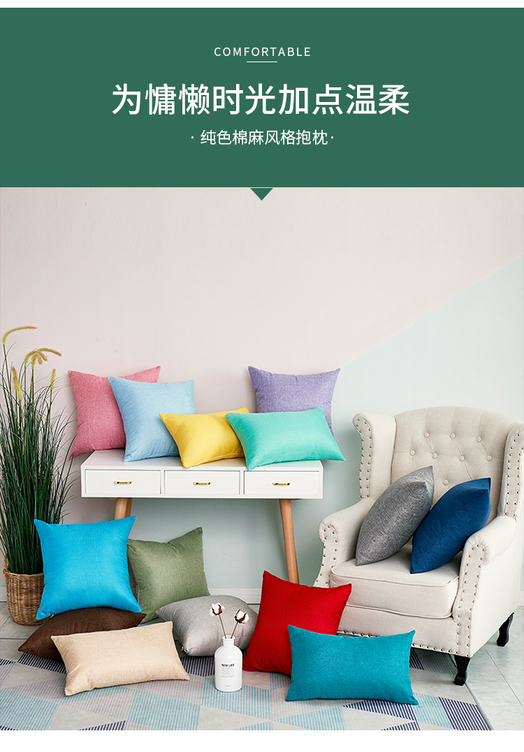 (总)李帅家居 纯色棉麻风腰枕抱枕汽车腰靠沙发靠背圆柱枕芯