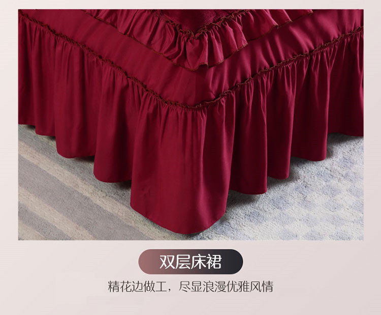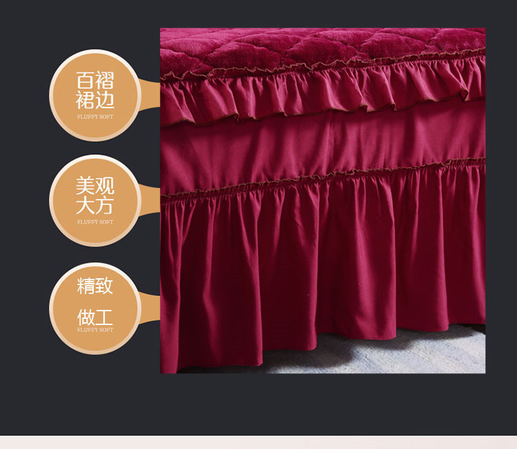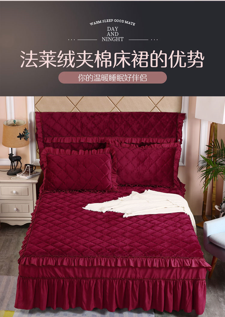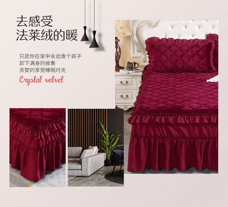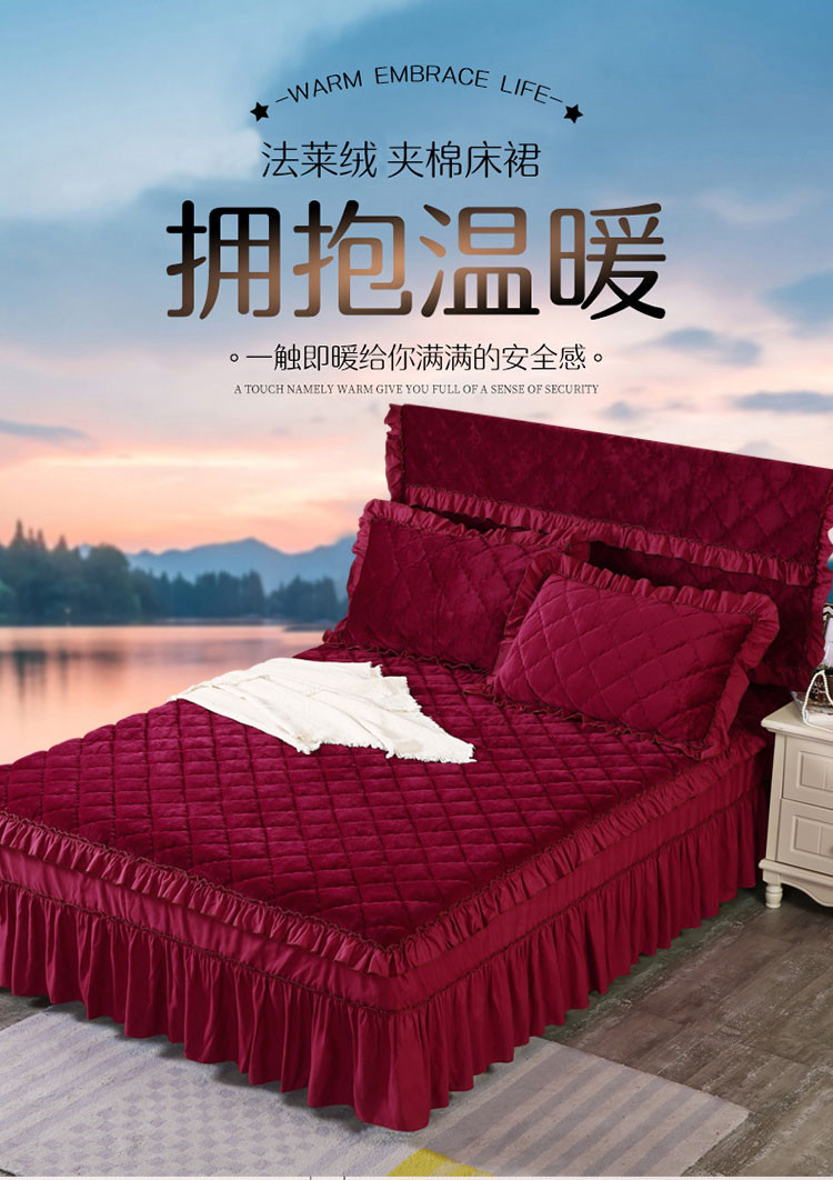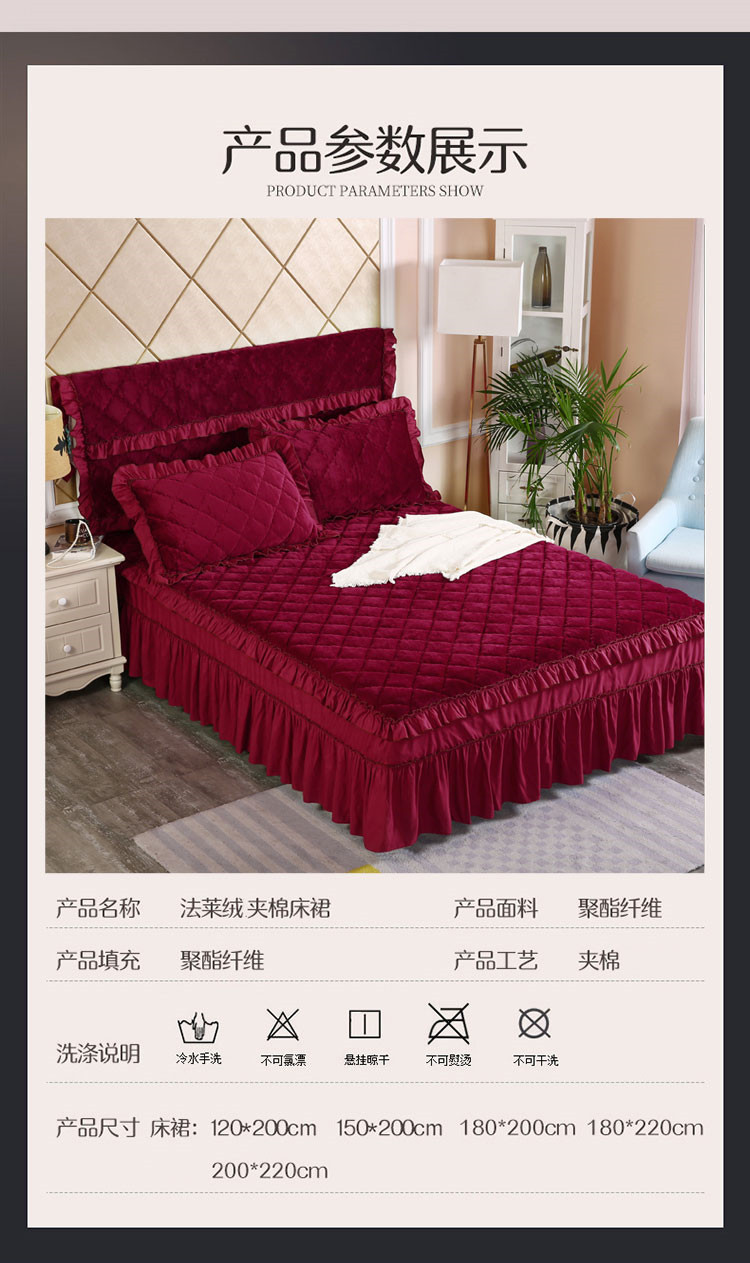 商品名称:情恒家纺 2020新款法莱绒夹棉床裙 酒红
