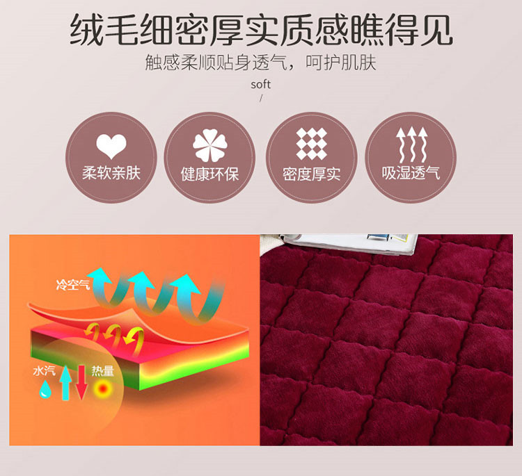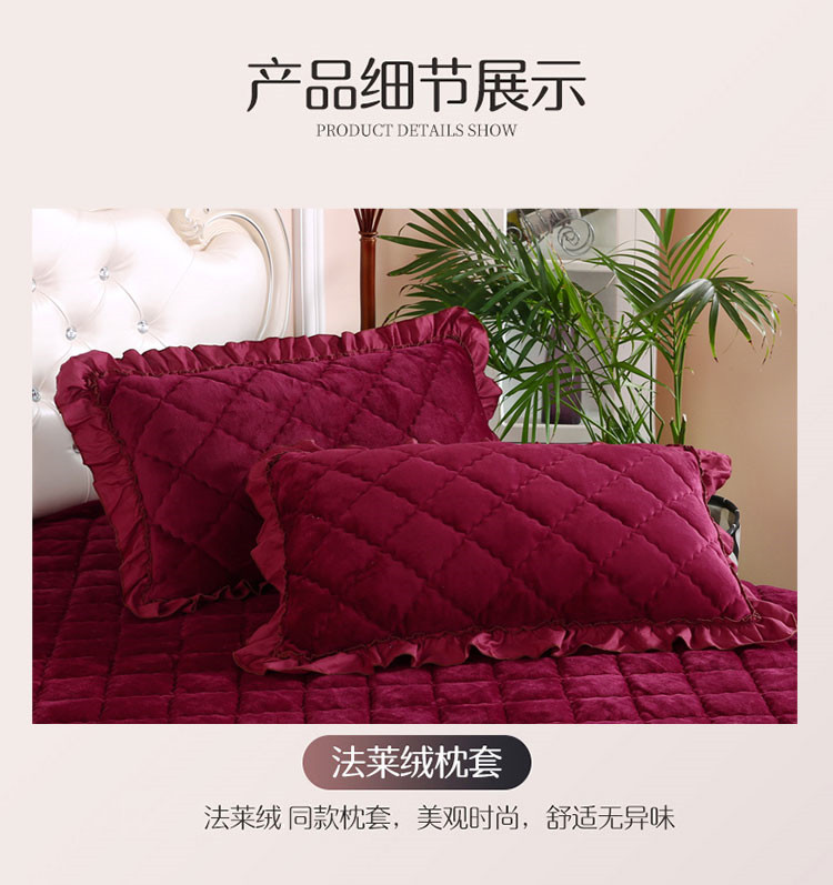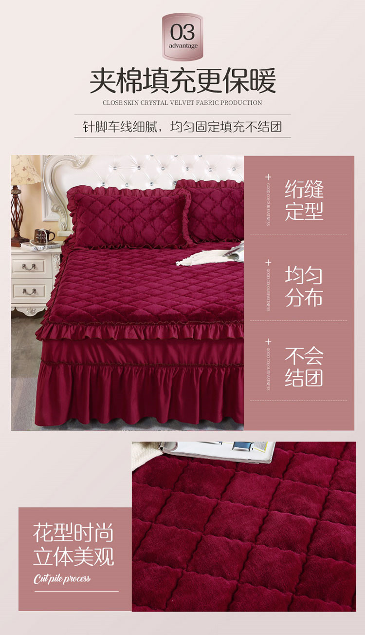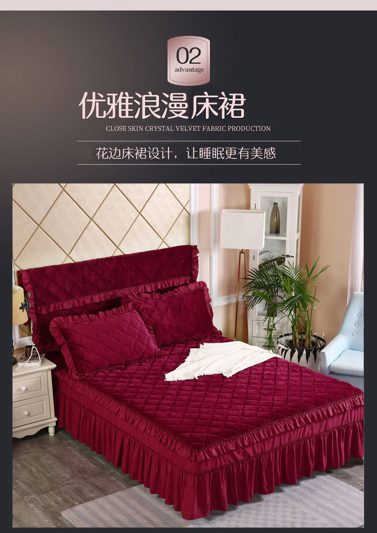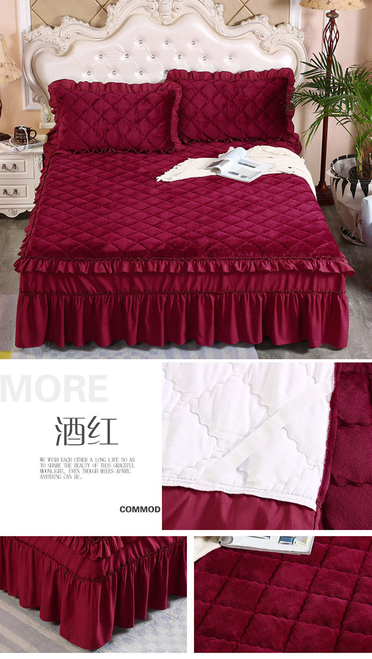 商品名称:情恒家纺 2020新款法莱绒夹棉床裙 酒红