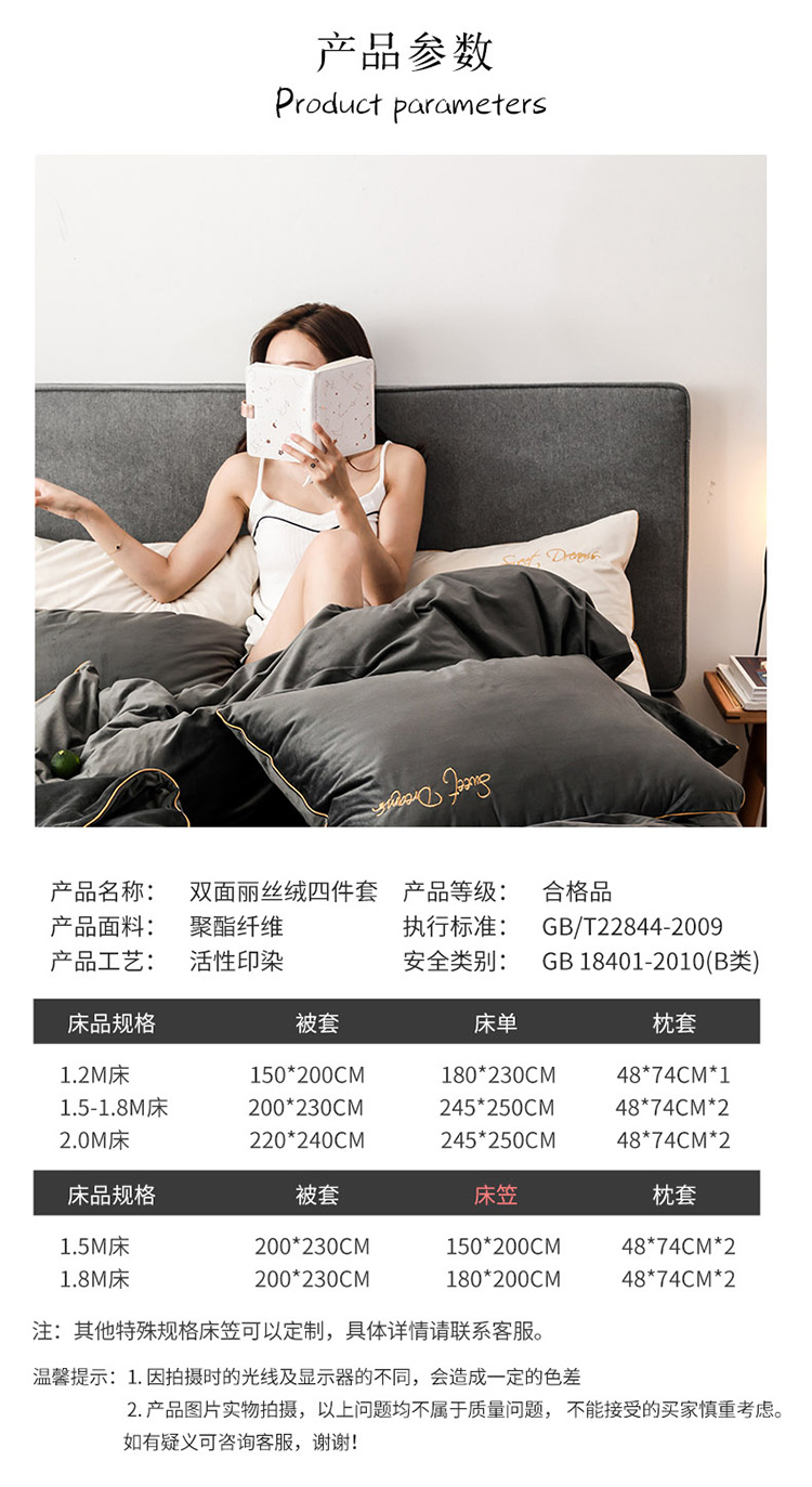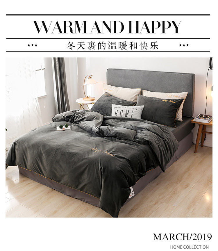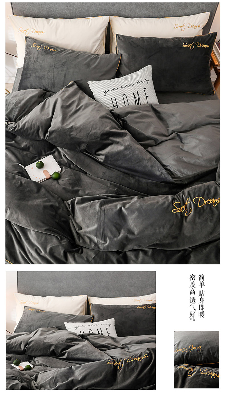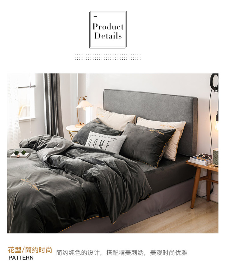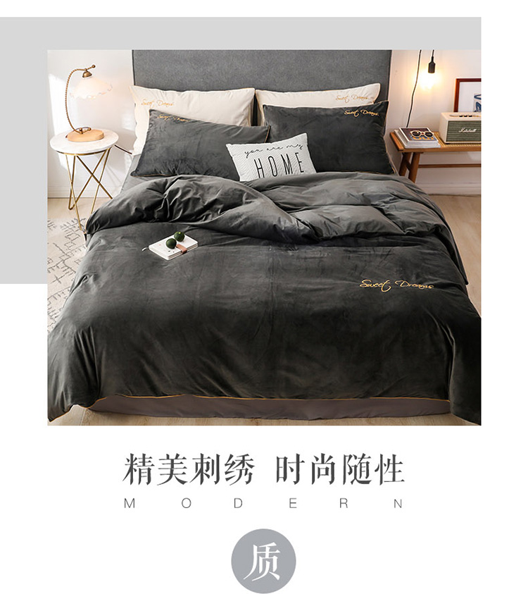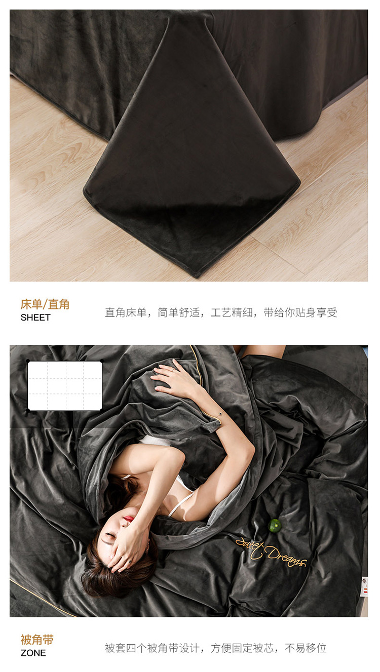商品名称:爱缦 2019新款水晶绒丽丝绒绣花工艺款四件套 古典灰