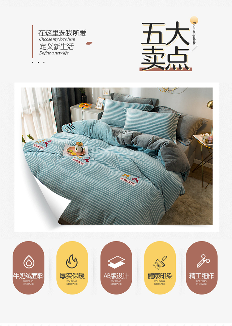 商品名称:新太阳 2022新款牛奶绒四件套 鹿先生