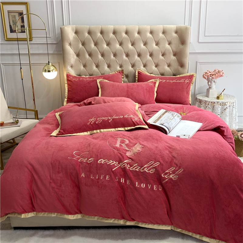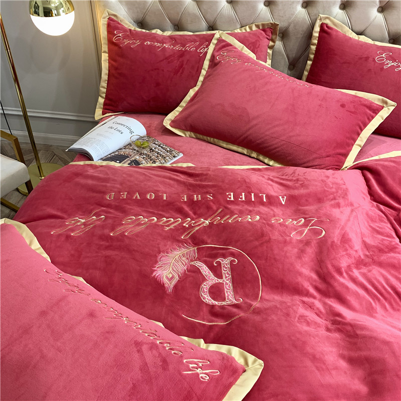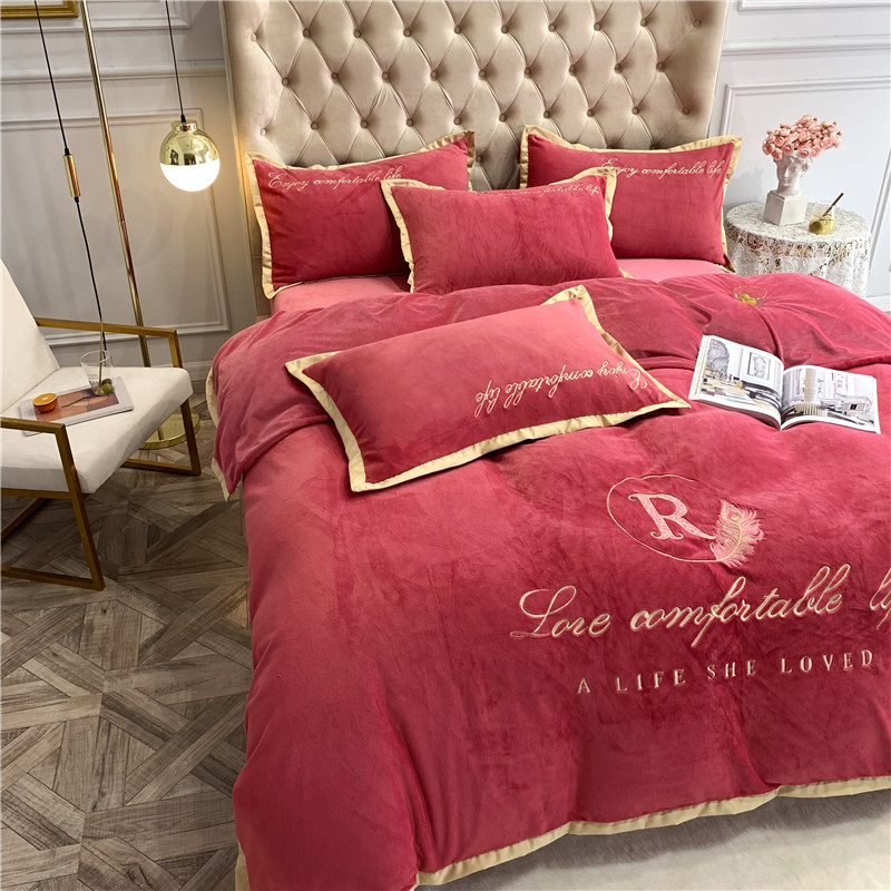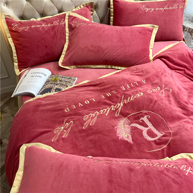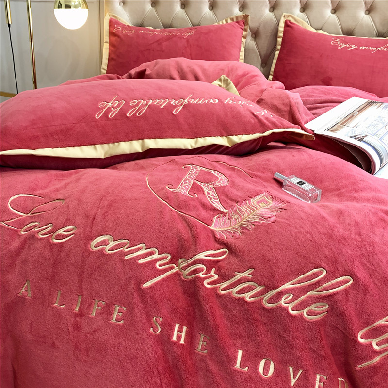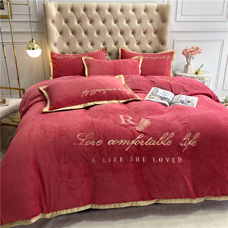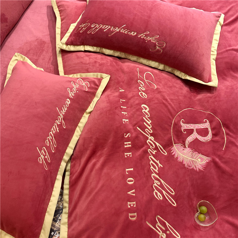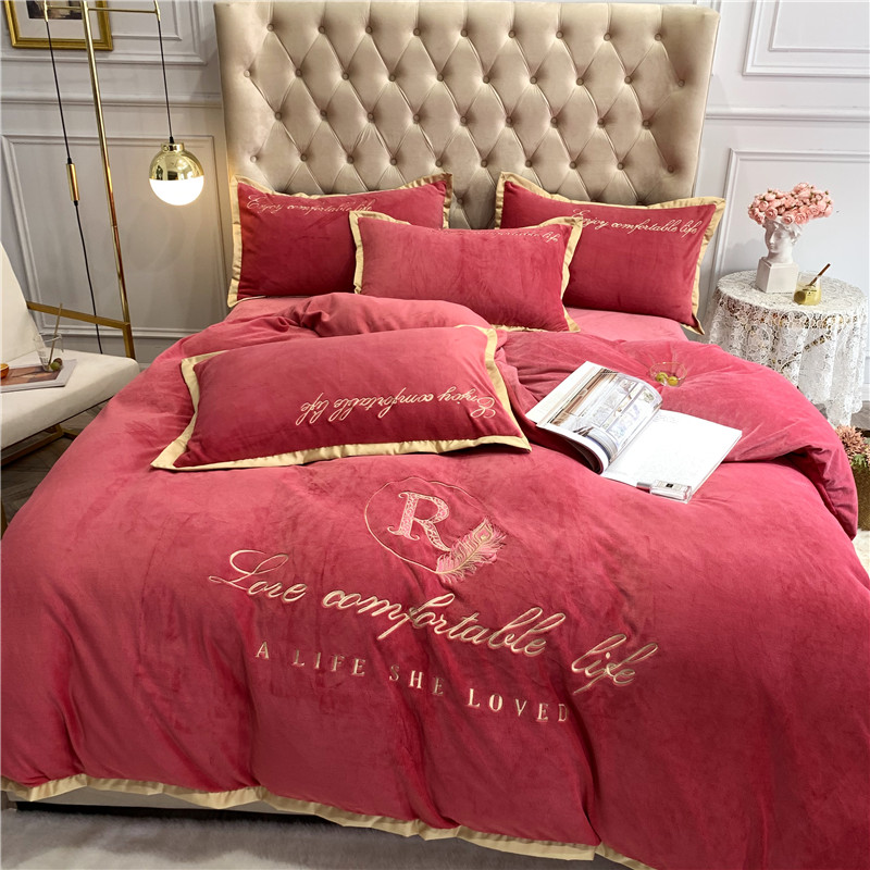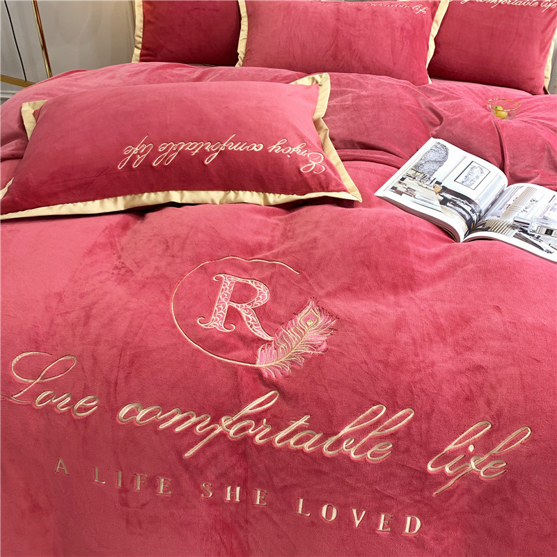 馨蕊家居 2021秋冬轻奢牛奶绒简爱系列四件套 玫红