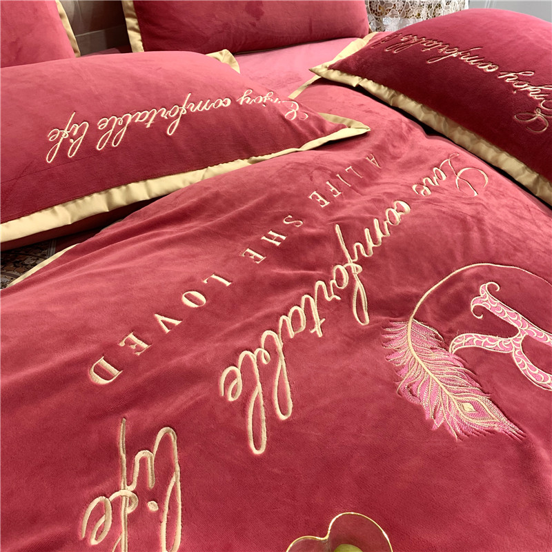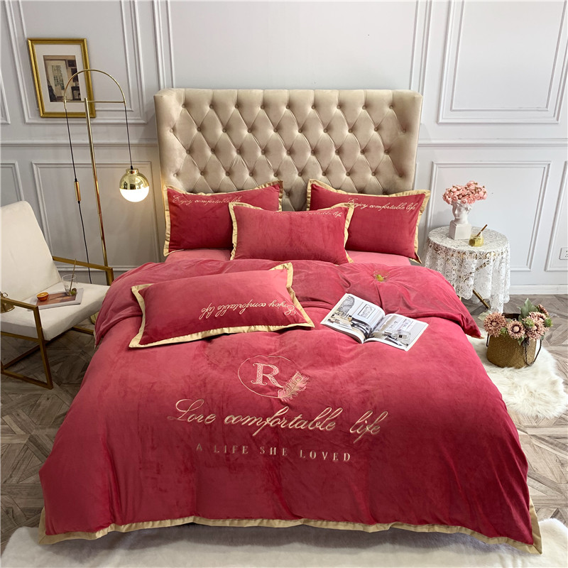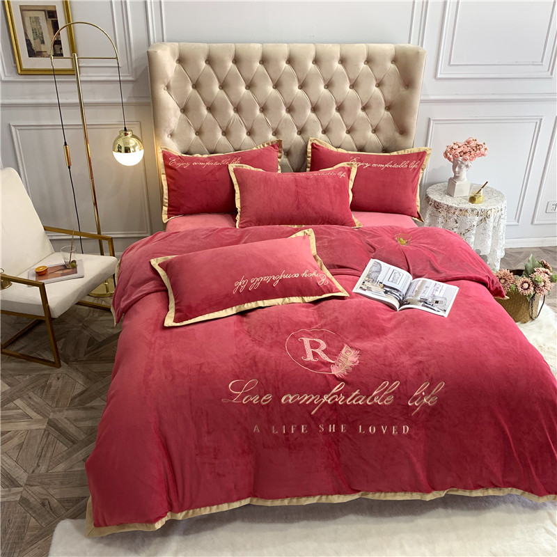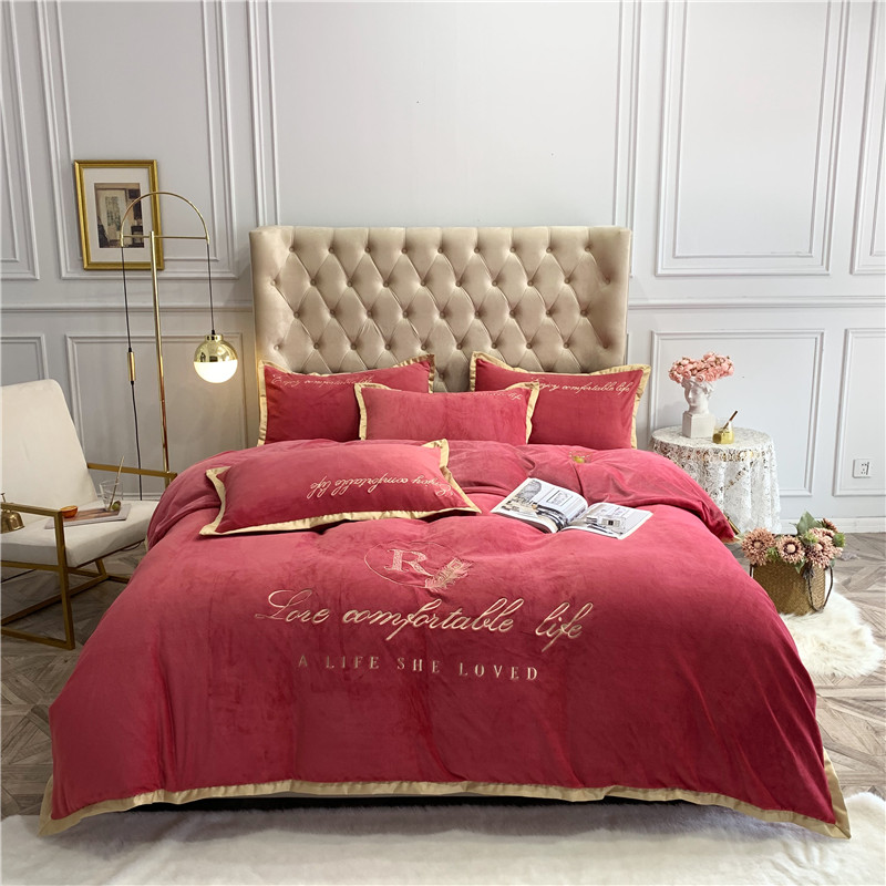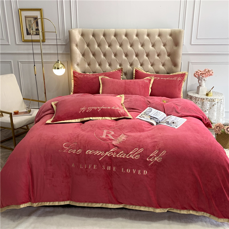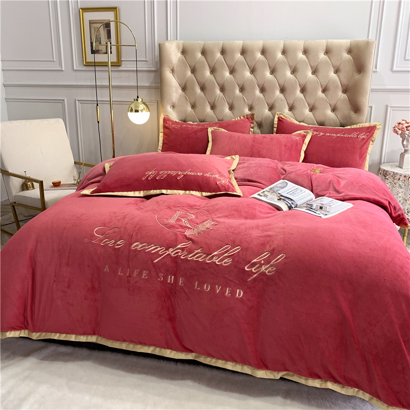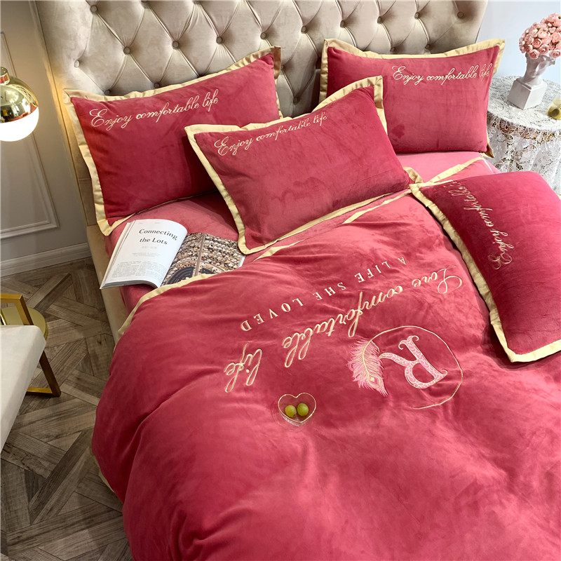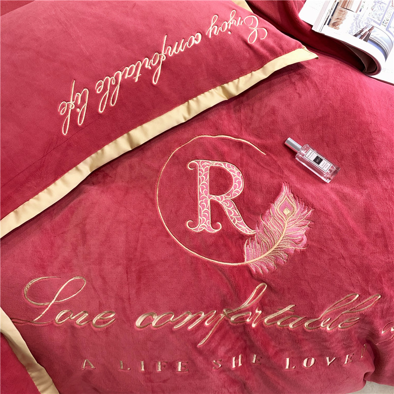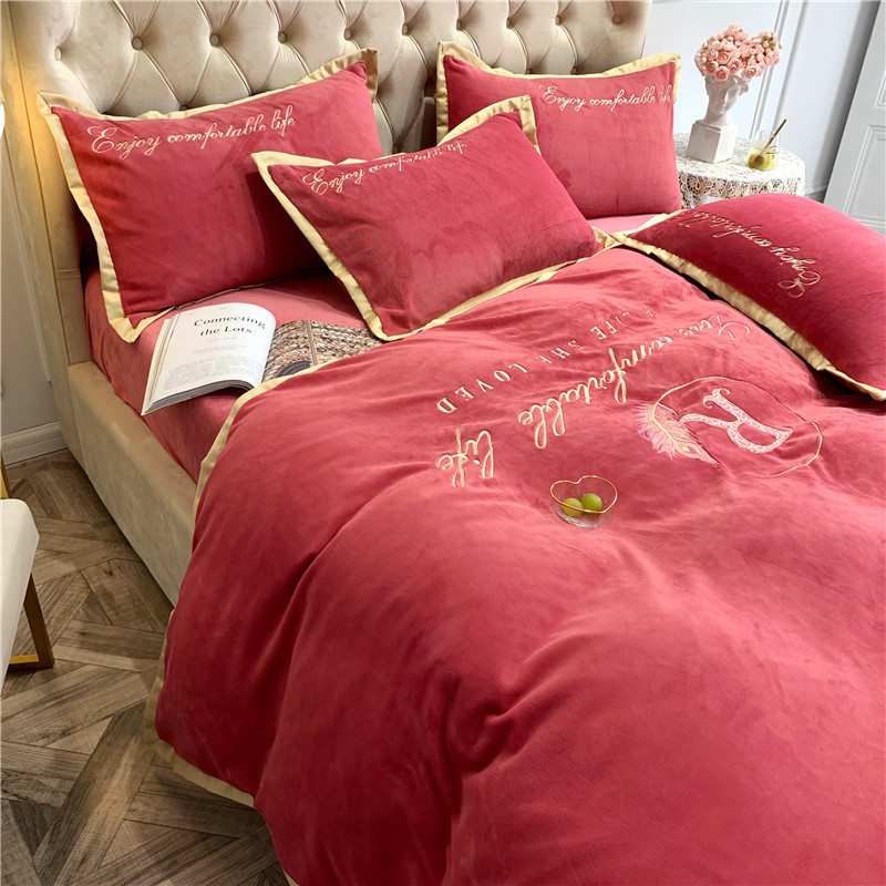 馨蕊家居 2021秋冬轻奢牛奶绒简爱系列四件套 玫红