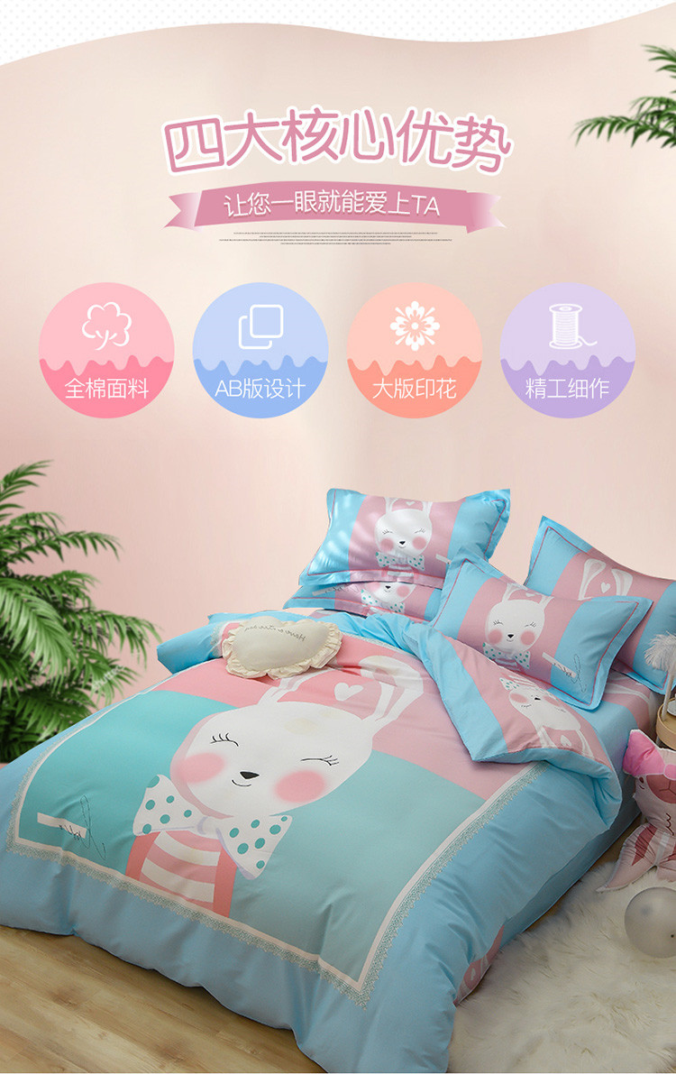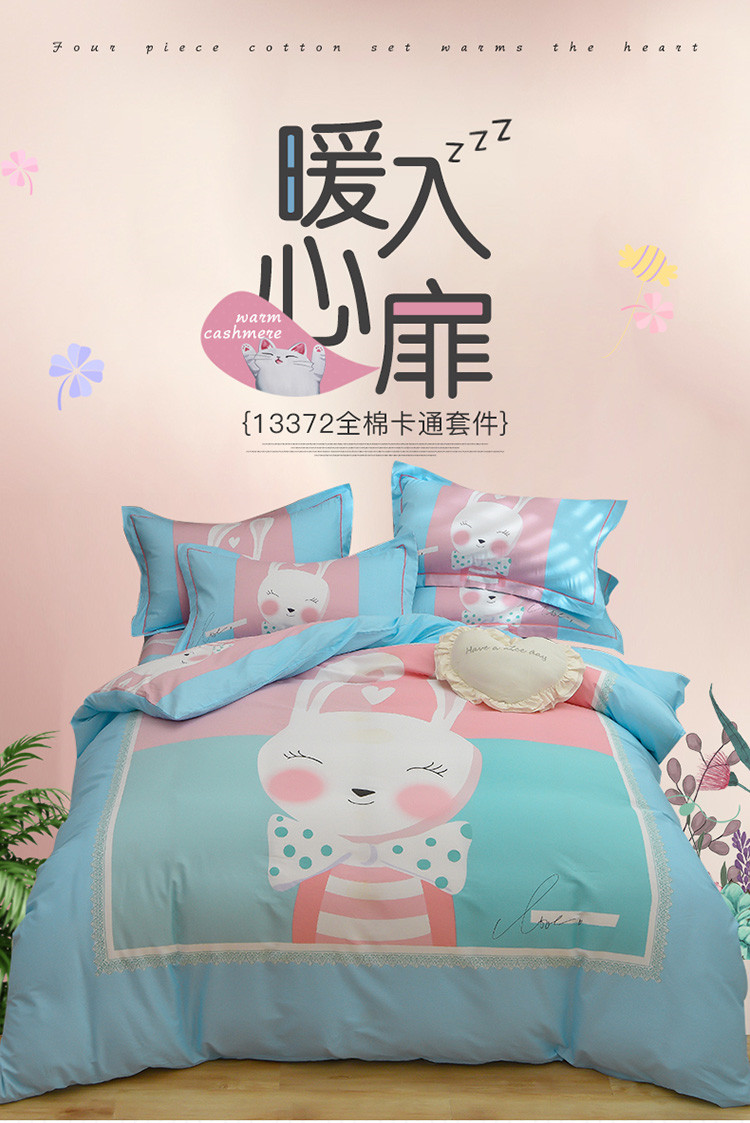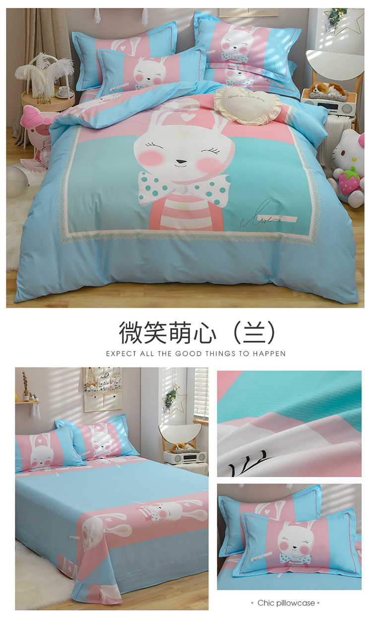 当前位置: 91家纺网 > 商品网购 > 床品套件 > 四件套 > 全棉普通四件套 > 雲归梦 2020新款13372全棉大版四件套 微笑萌心-兰