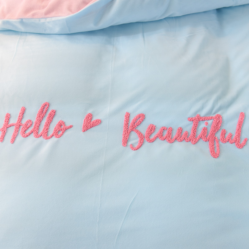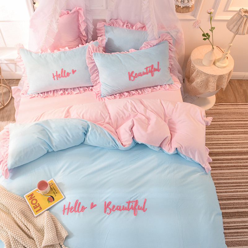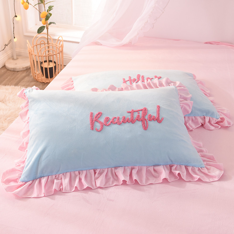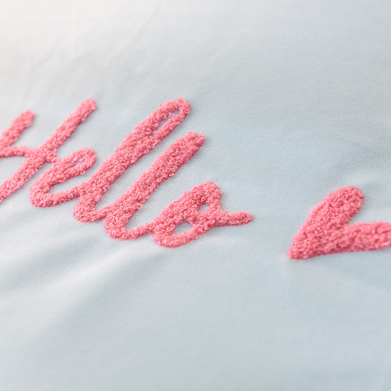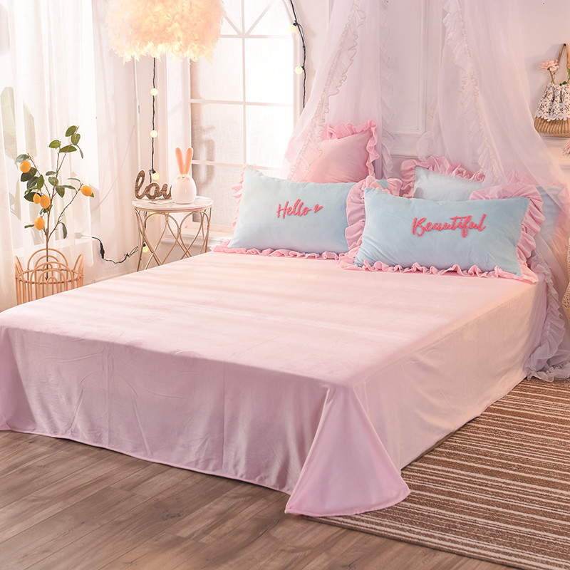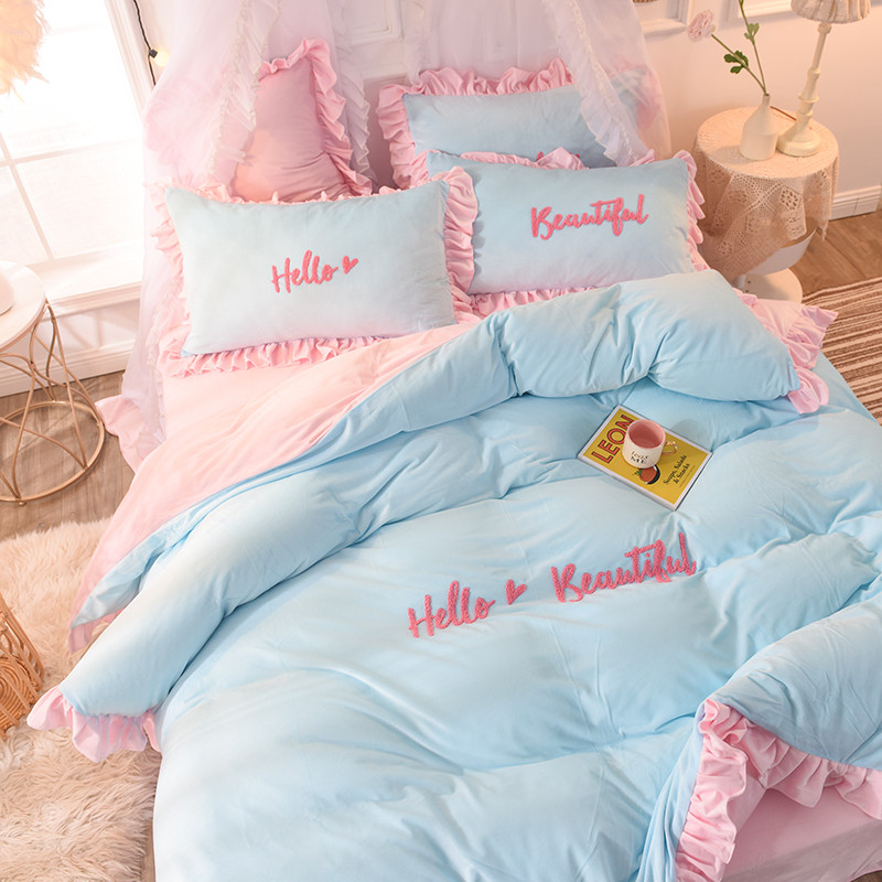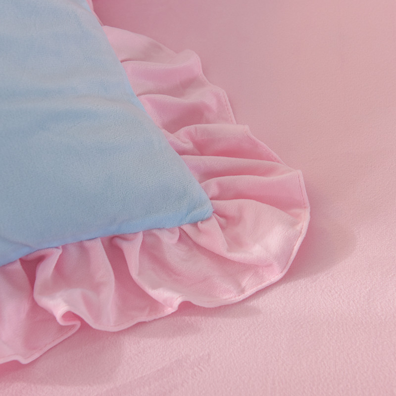欧冠2019水晶绒宝宝绒花边款和毛巾绣款四件套毛巾绣慕蓝粉