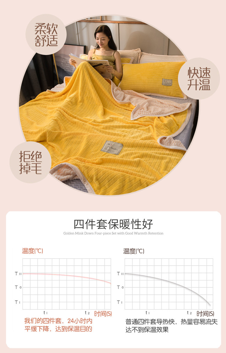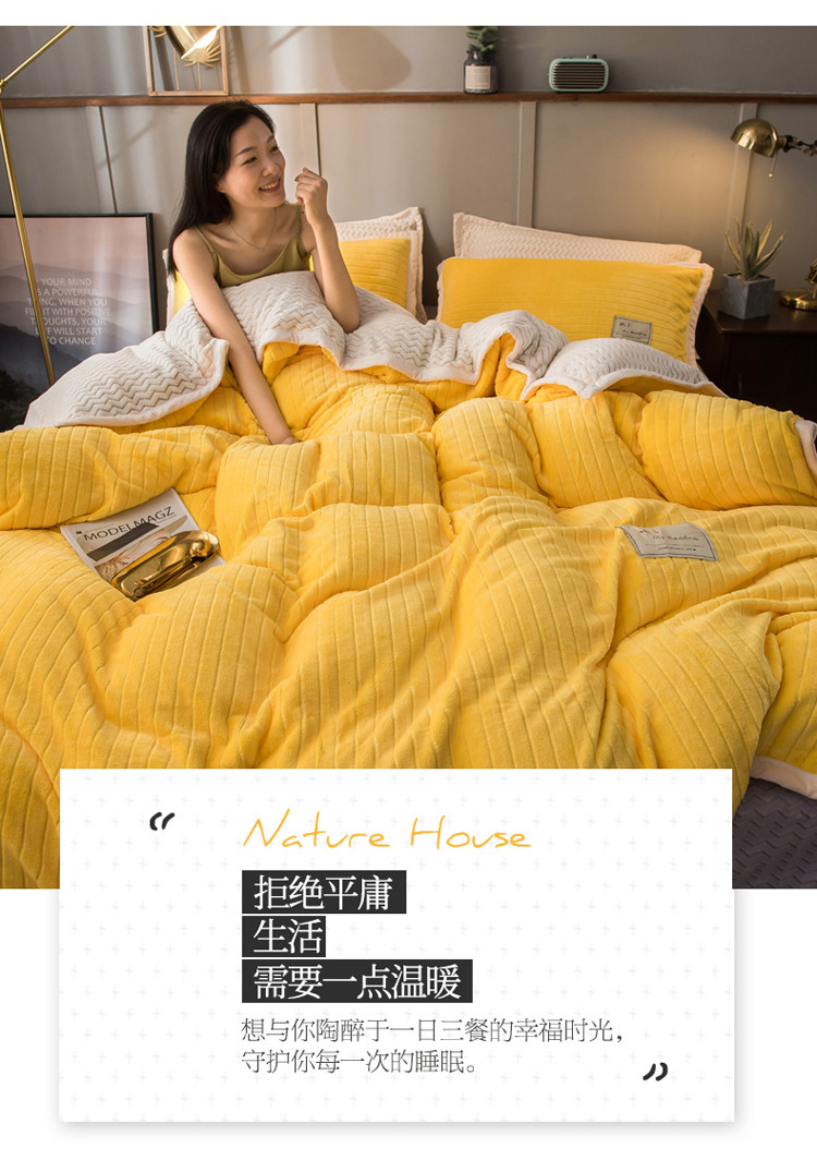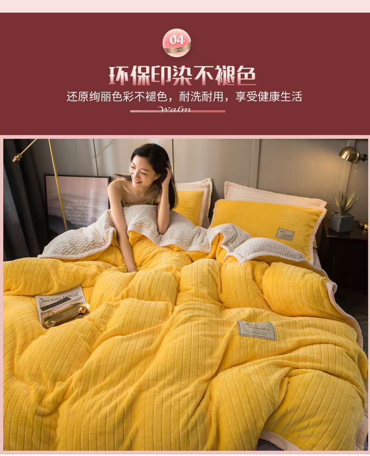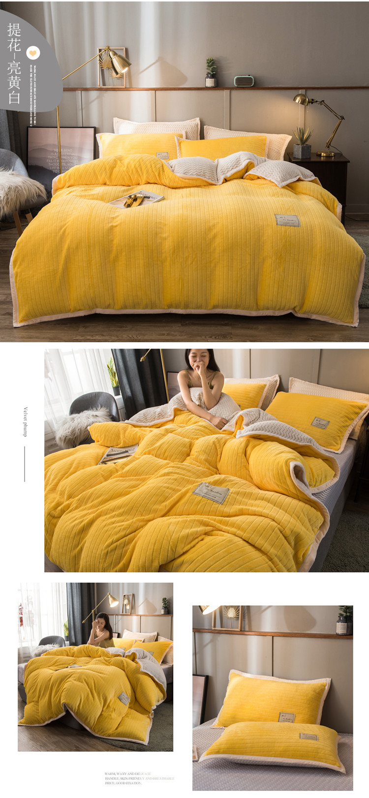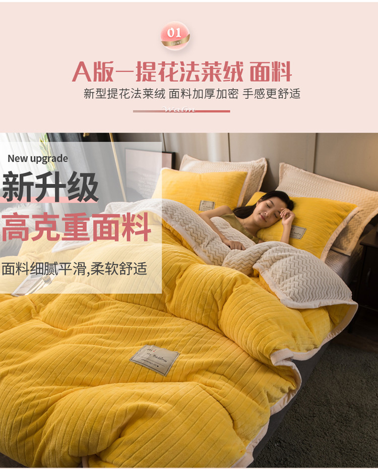 欧冠 2019提花法莱绒加贝贝绒加厚四件套 亮黄白
