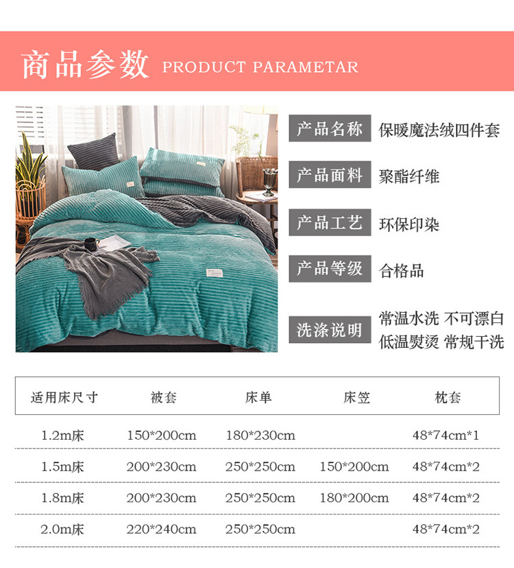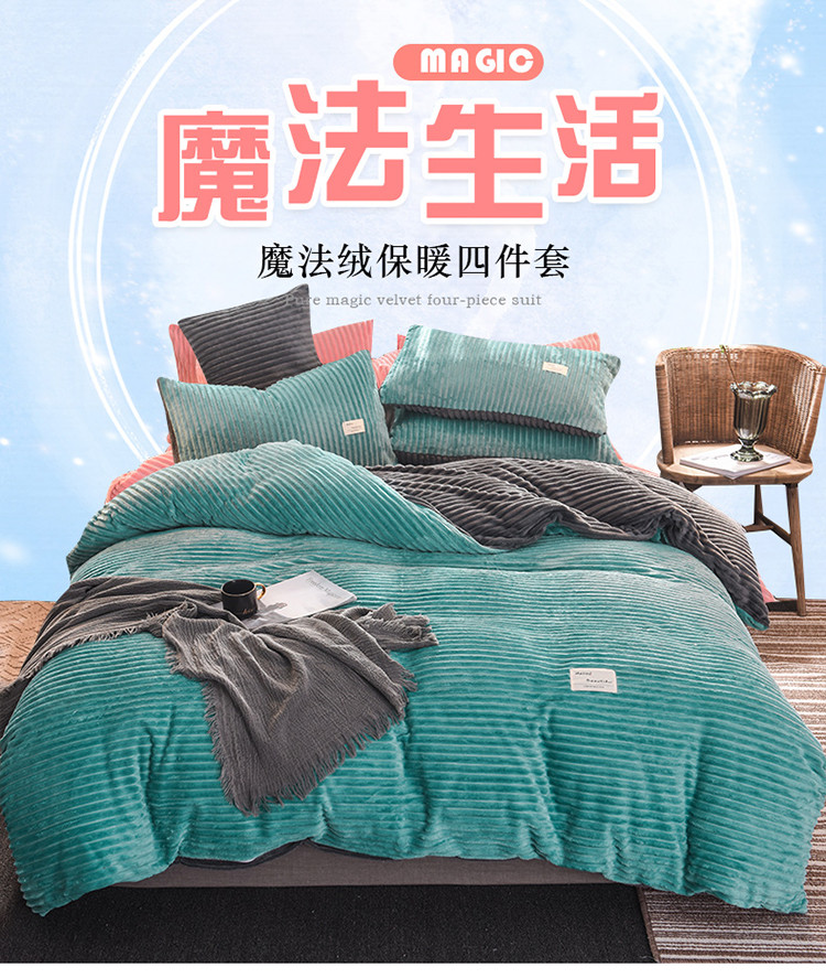 商品名称:欧冠 2019秋冬魔法绒暖绒系列四件套床单款 回忆蓝