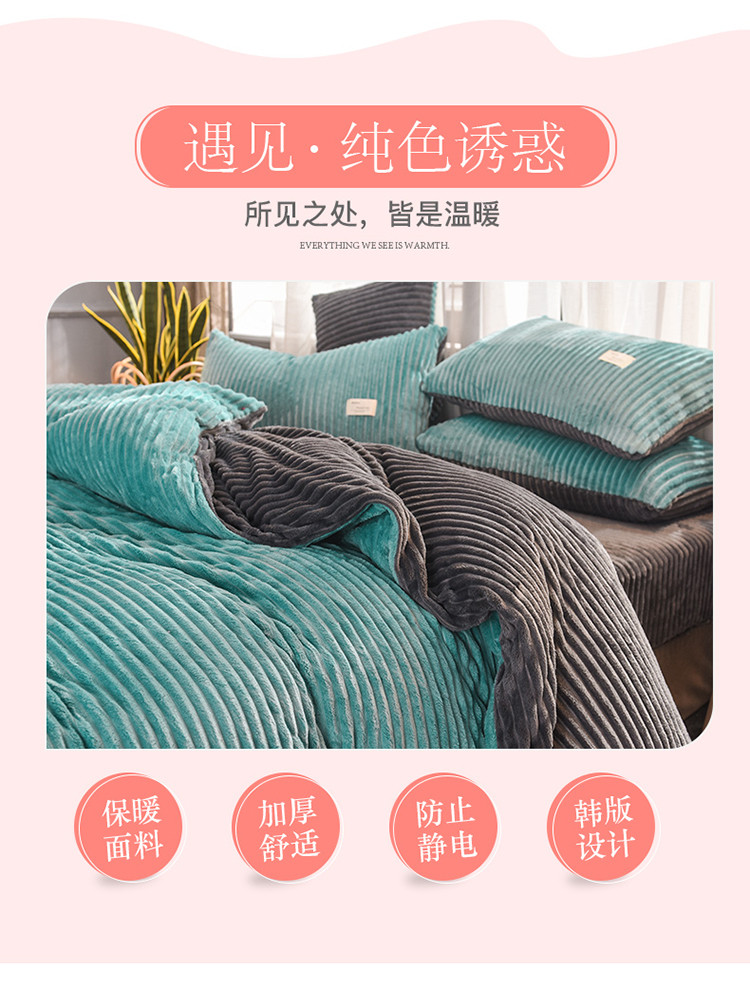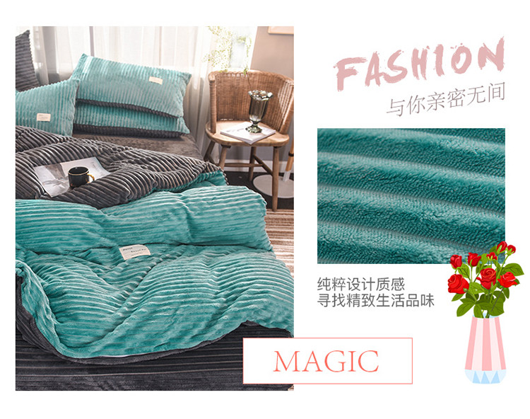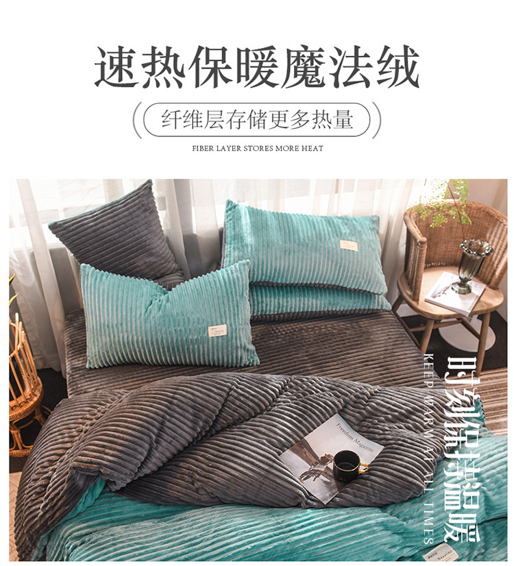 (总)欧冠家纺 2025新款条纹兔毛绒牛奶绒四件套,魔幻黑,卡其,墨绿,森林绿,雪灰,棕灰