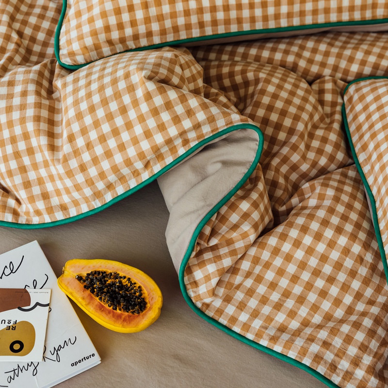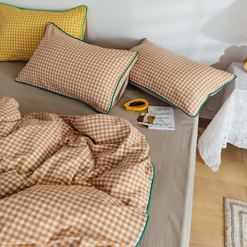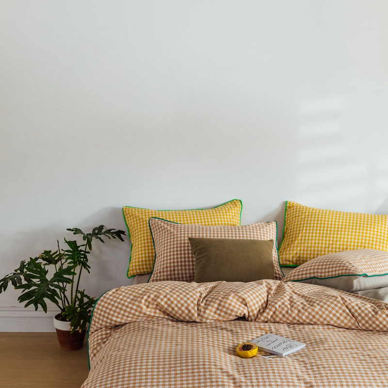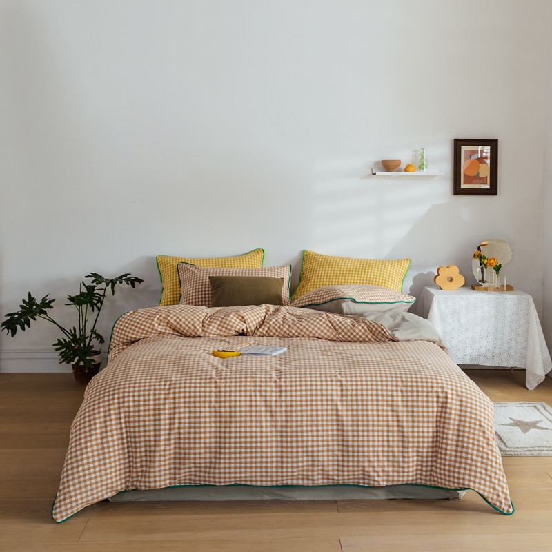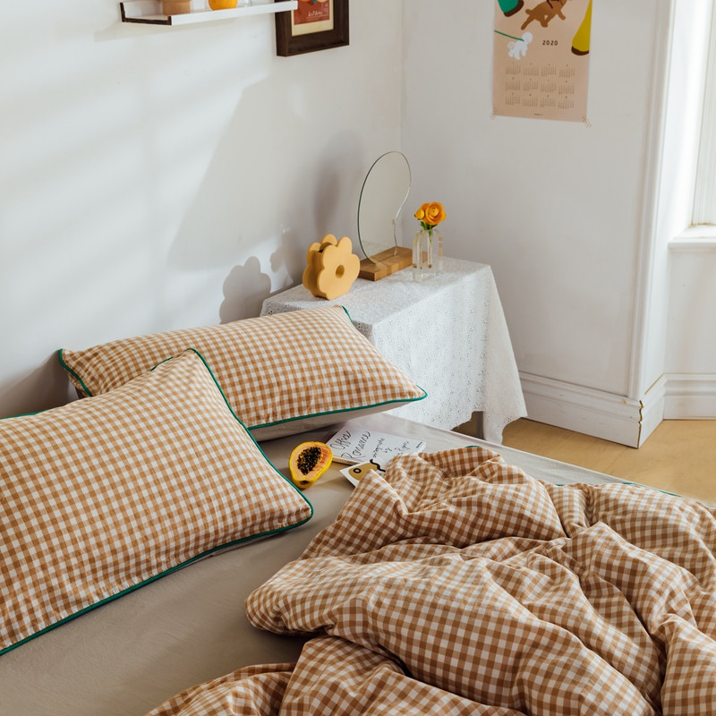 商品名称:棉眠2020夏季新款32支色织水洗棉四件套 奶茶格