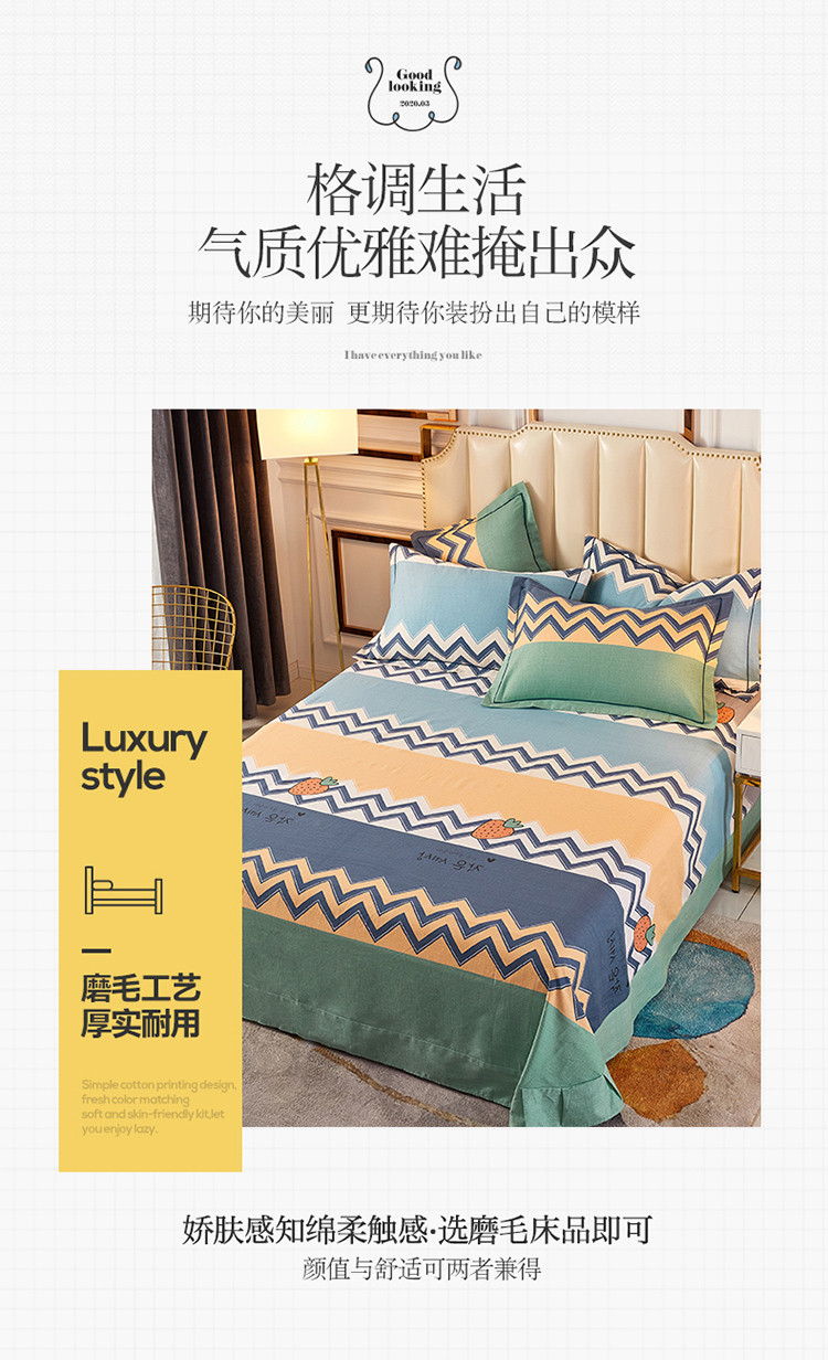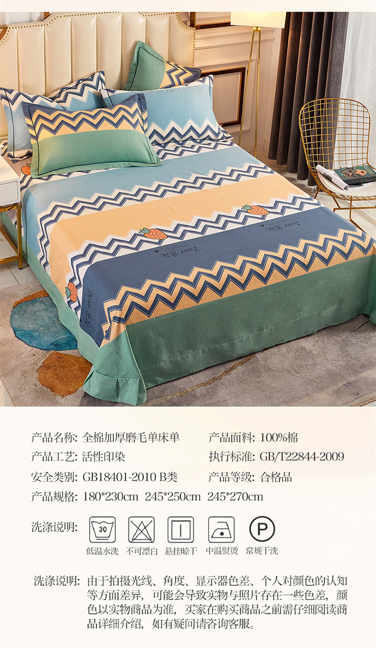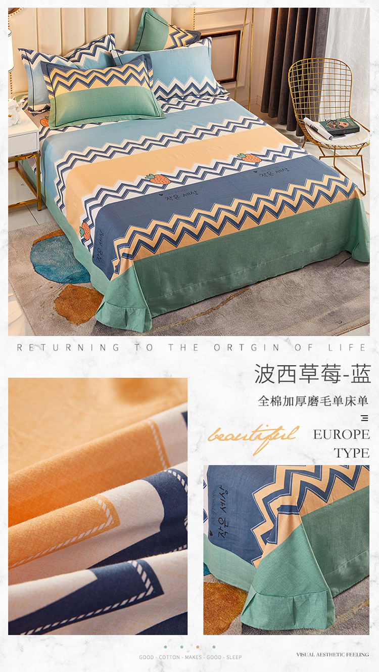 商品名称:雲归梦 2020新款多规格全棉加厚磨毛单床单 波西草莓-蓝