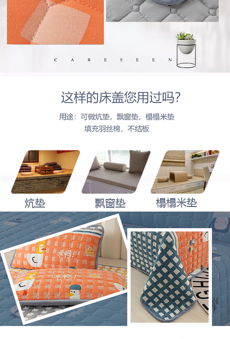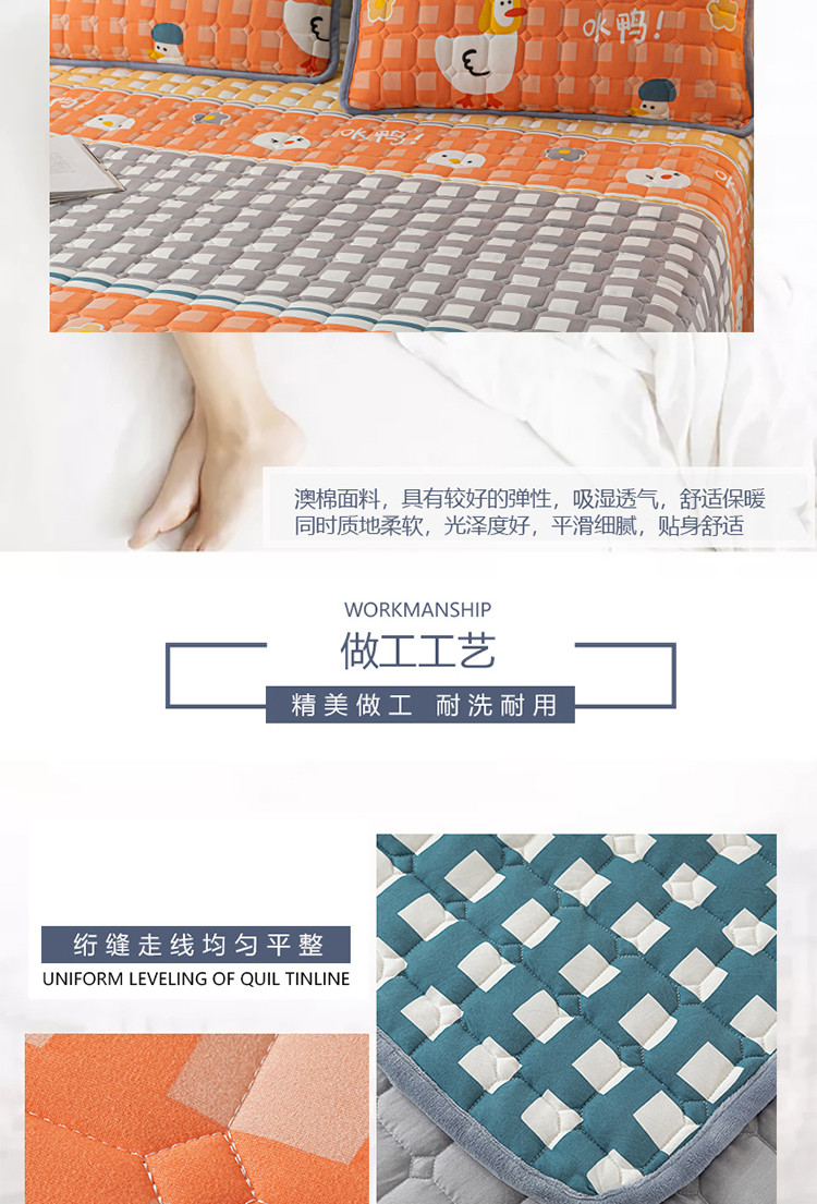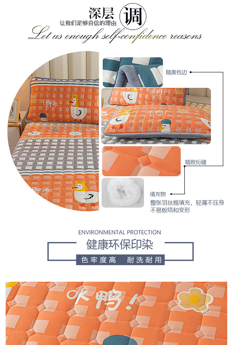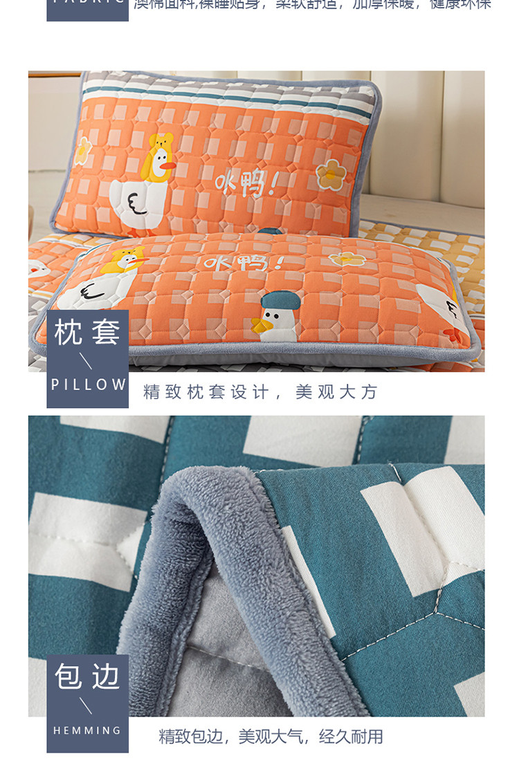 青竹苑 2023新款直角款牛奶绒床盖夹棉保暖沙发垫榻榻米垫炕垫 南瓜小熊,南瓜小熊