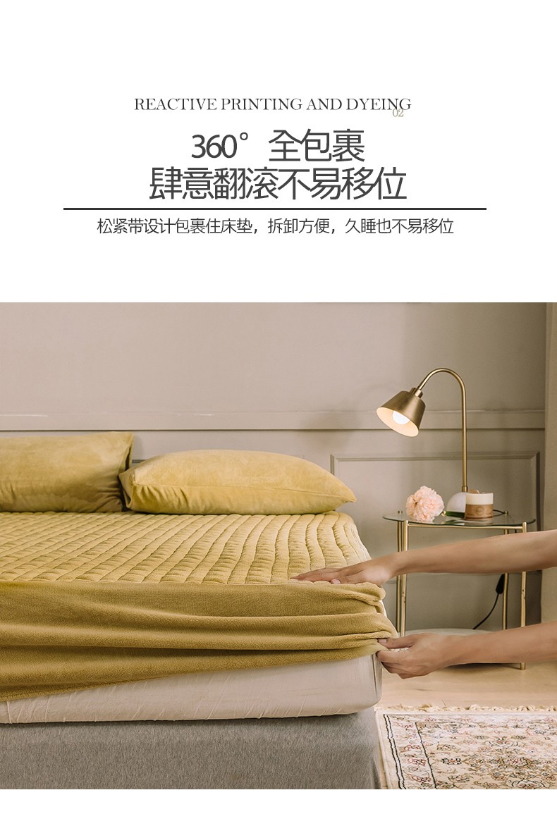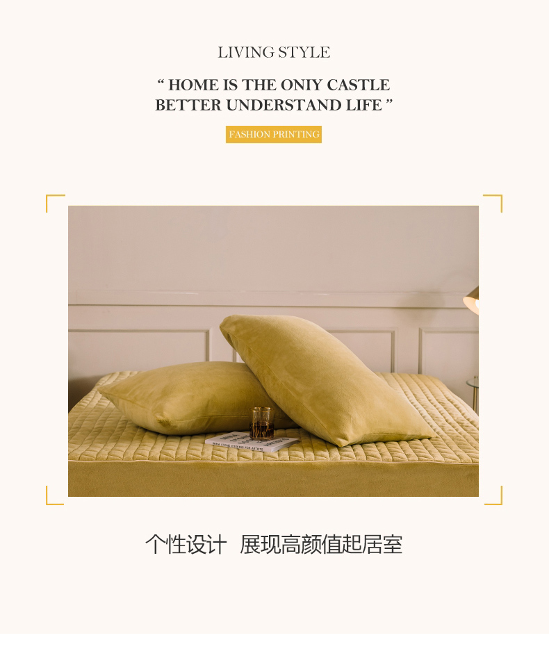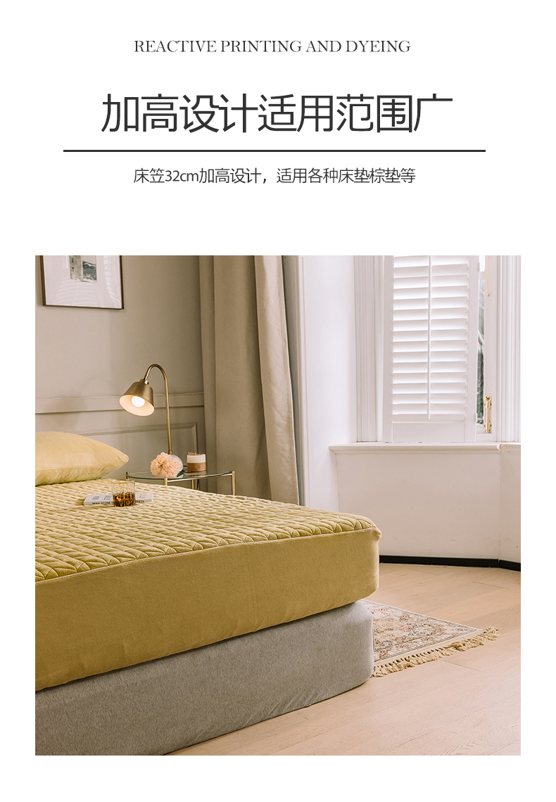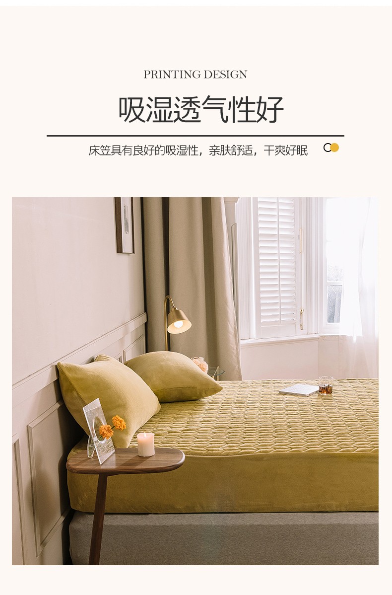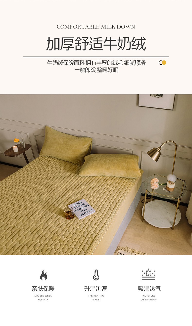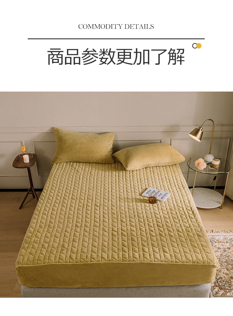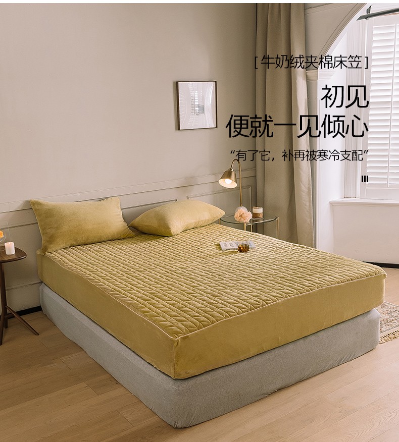 商品名称:法芙娜家纺 秋冬加厚牛奶绒夹棉床笠 吸湿排汗保暖 芥末黄
