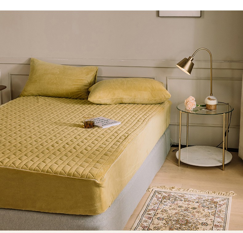法芙娜家纺 秋冬加厚牛奶绒夹棉床笠 吸湿排汗保暖 芥末黄