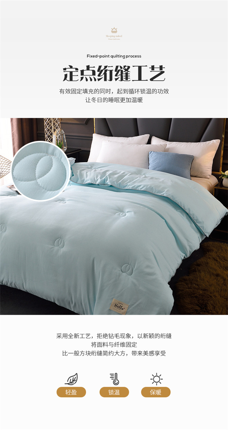 总德芙A类全棉提花小方格不染系列被子20%大豆纤维冬被春秋被被芯,白色