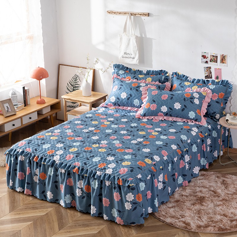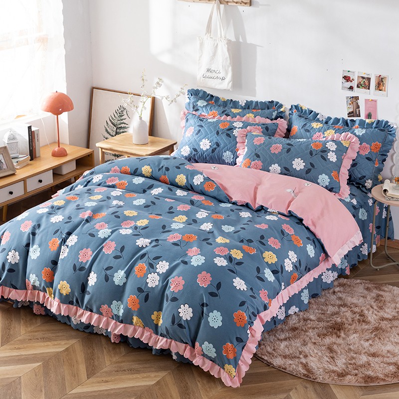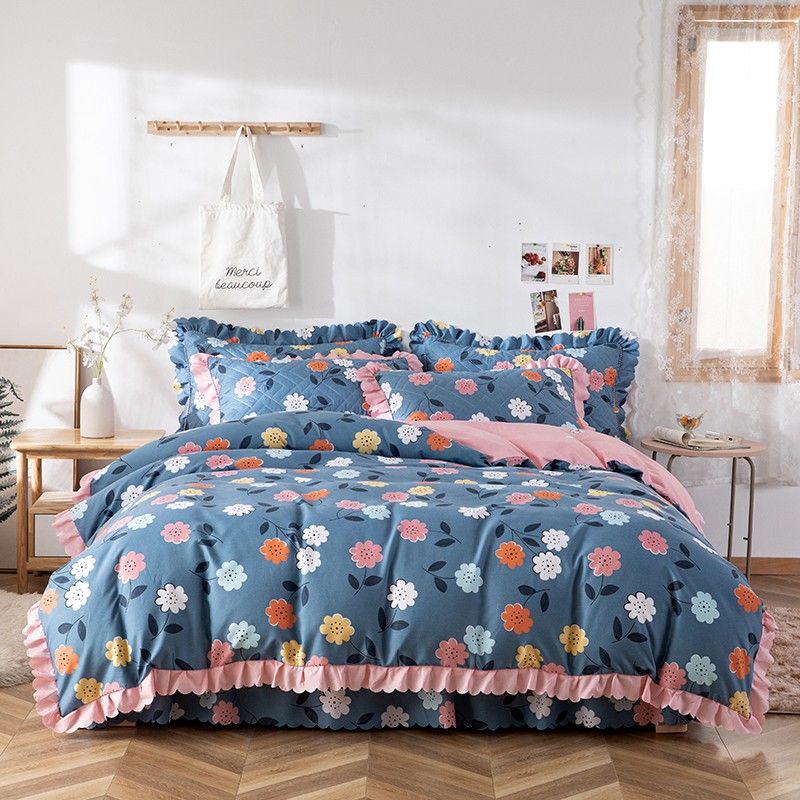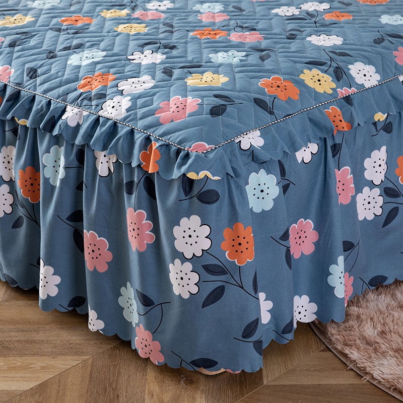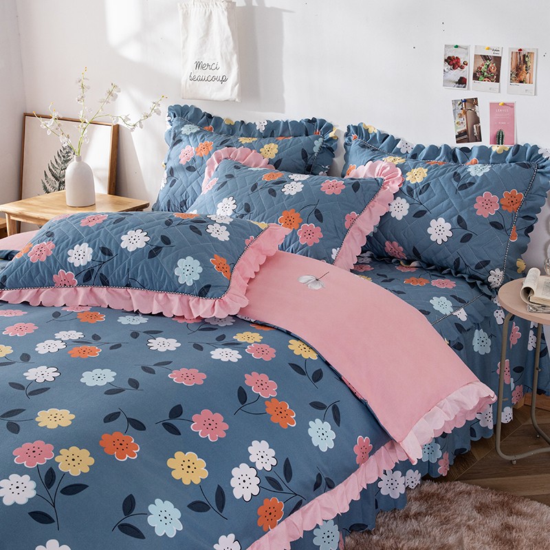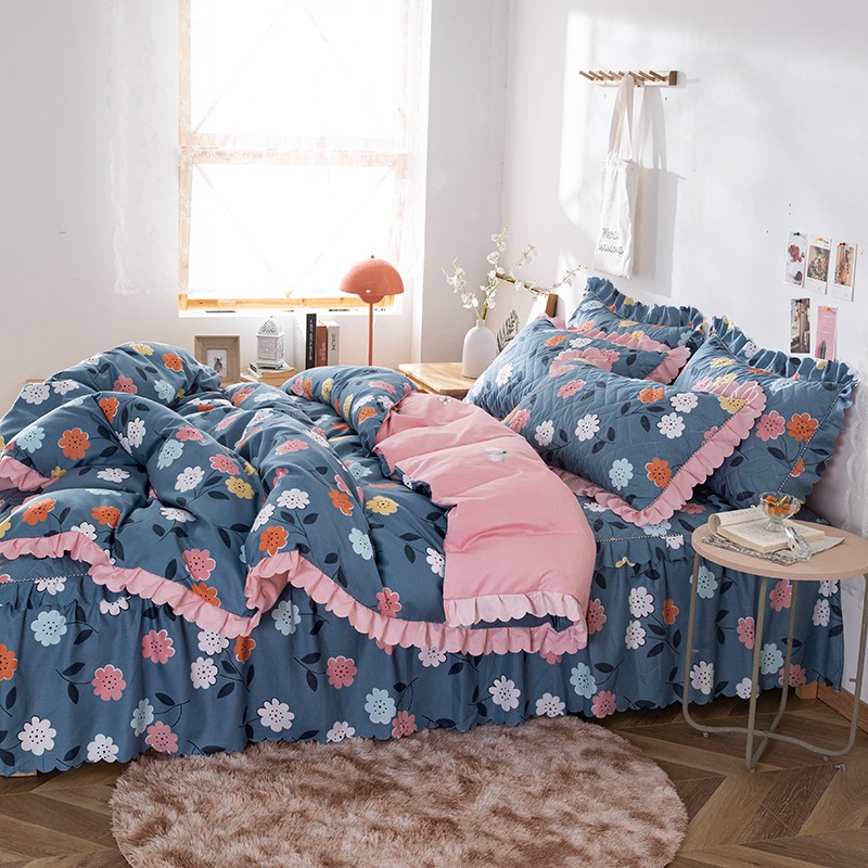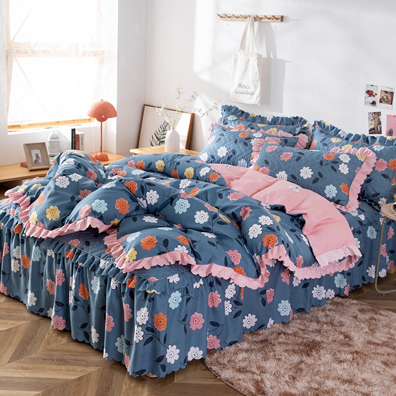 商品名称:纽缦 2020新款加厚磨毛夹棉床裙款四件套 豆蔻年华蓝