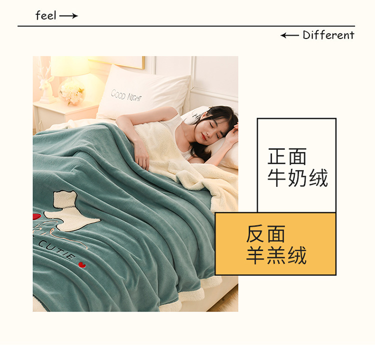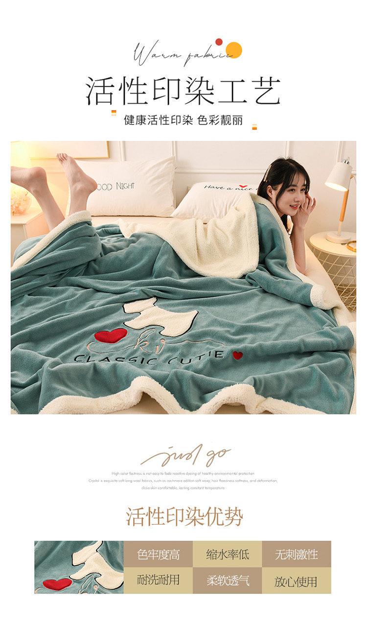 朗莎家纺 2020新款羊羔绒+牛奶绒毛毯 神奇狗-湖蓝