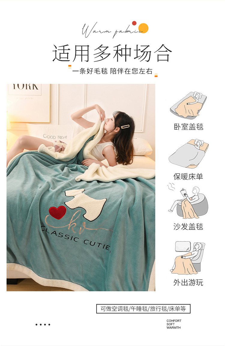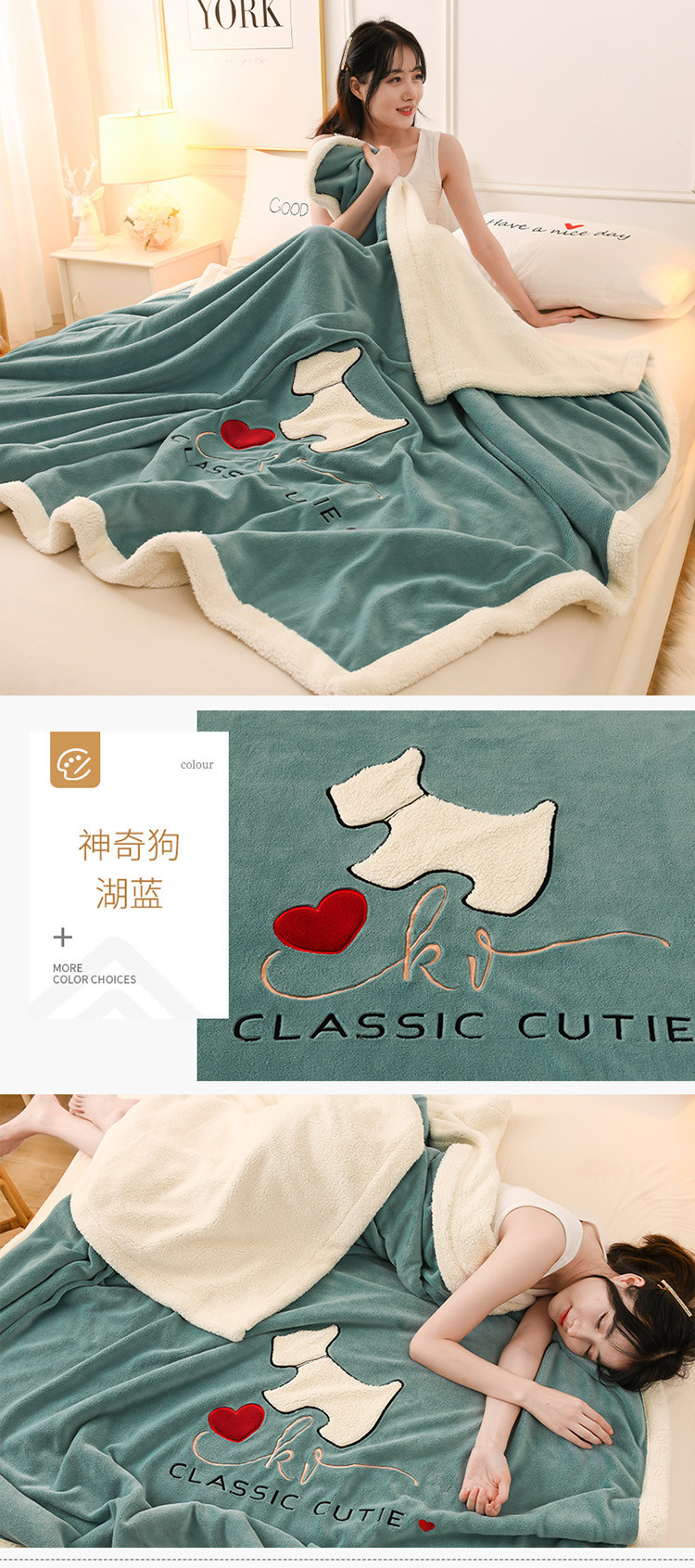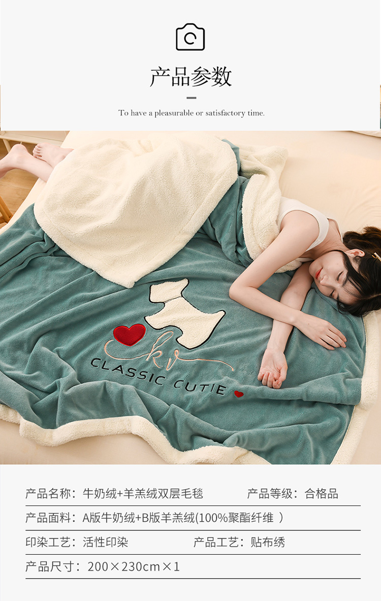 商品名称:朗莎家纺 2020新款羊羔绒+牛奶绒毛毯 神奇狗-湖蓝