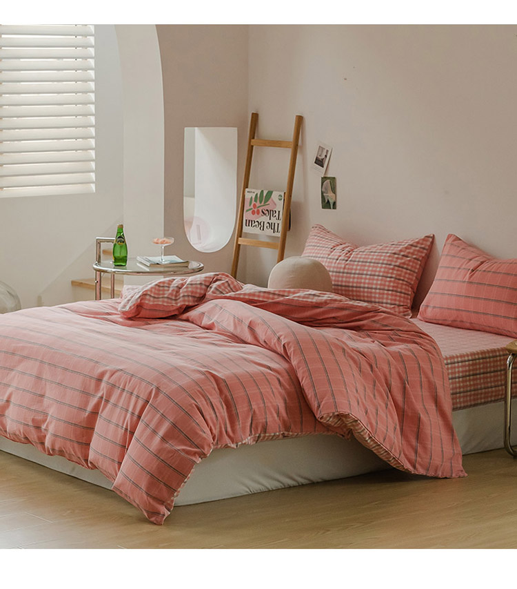 (总)柠萌家居 2026新款色织水洗棉四件套单被套,粉极细条,粉紫条,黄咖条,灰极细条,蓝咖条,绿极细条,绿紫条,米极细条,驼红条