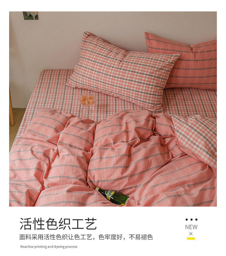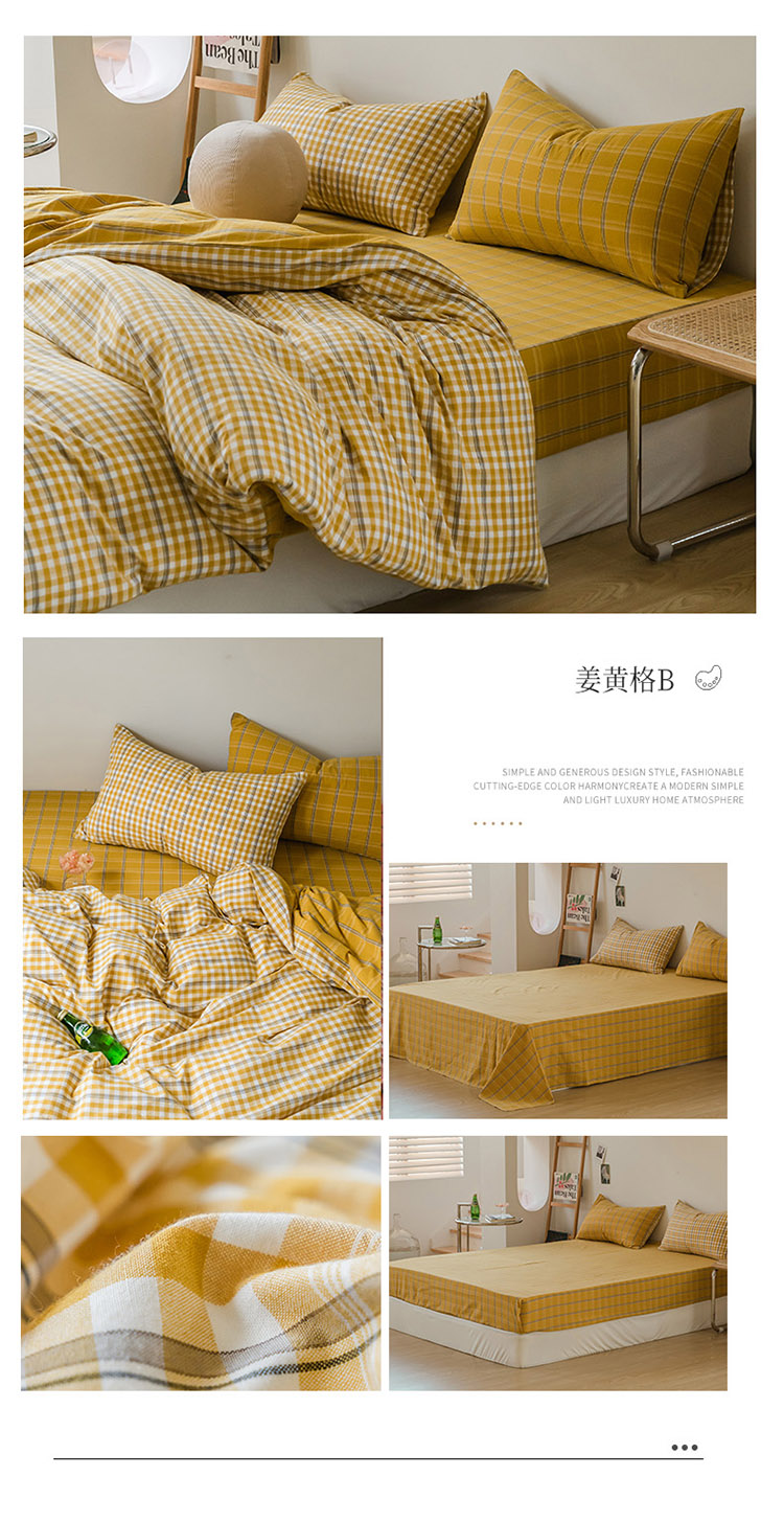 (总)柠萌家居 无印风格良品格子AB板色织水洗棉四件套