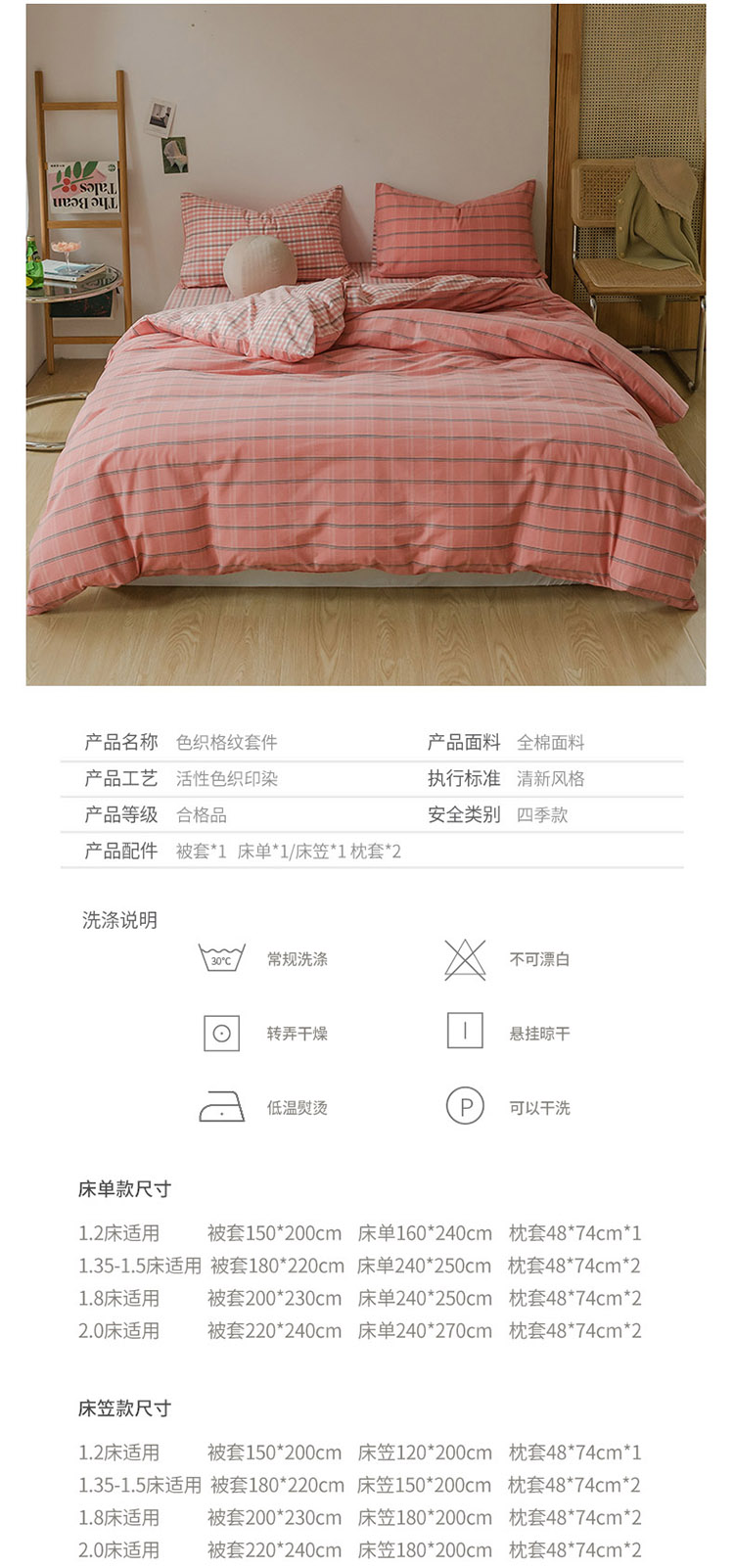 (总)柠萌家居 2026新款纯棉全棉A类色织水洗棉四件套(可定制尺寸),诺卡-咖,倾城-粉,倾城-蓝,倾城-绿,苏格兰-红,苏格兰-咖,苏格兰-卡其,组合