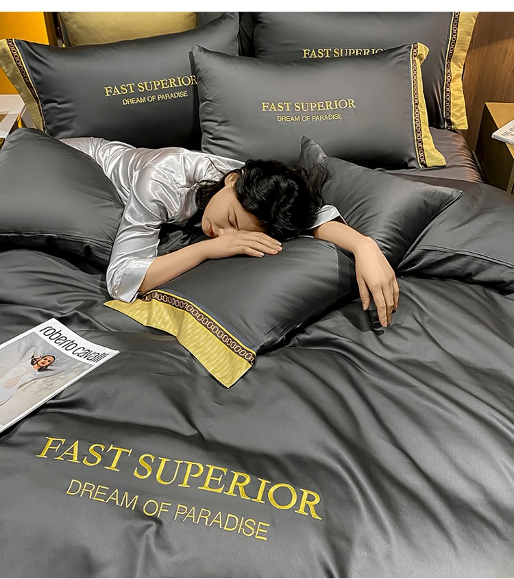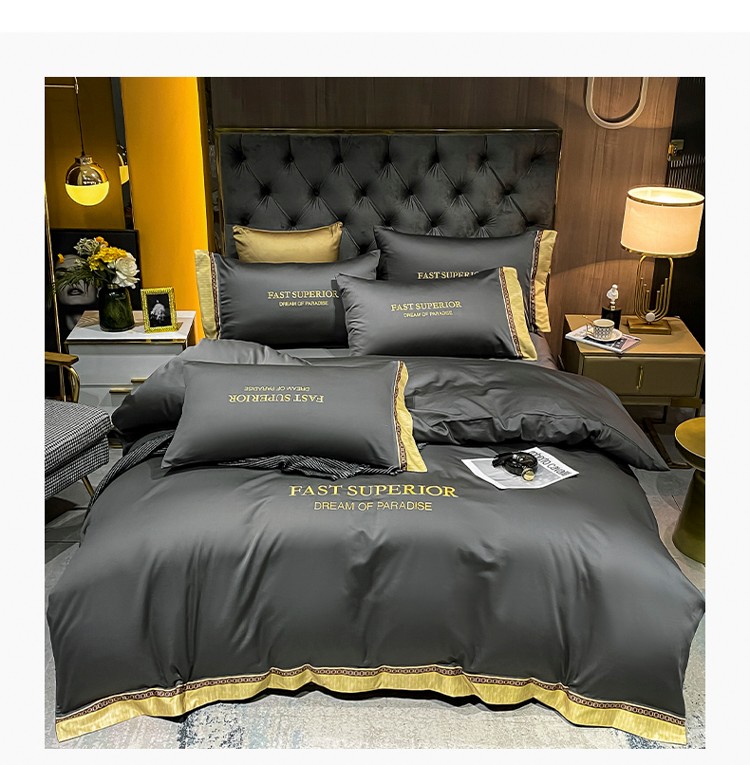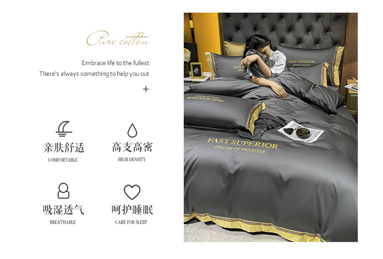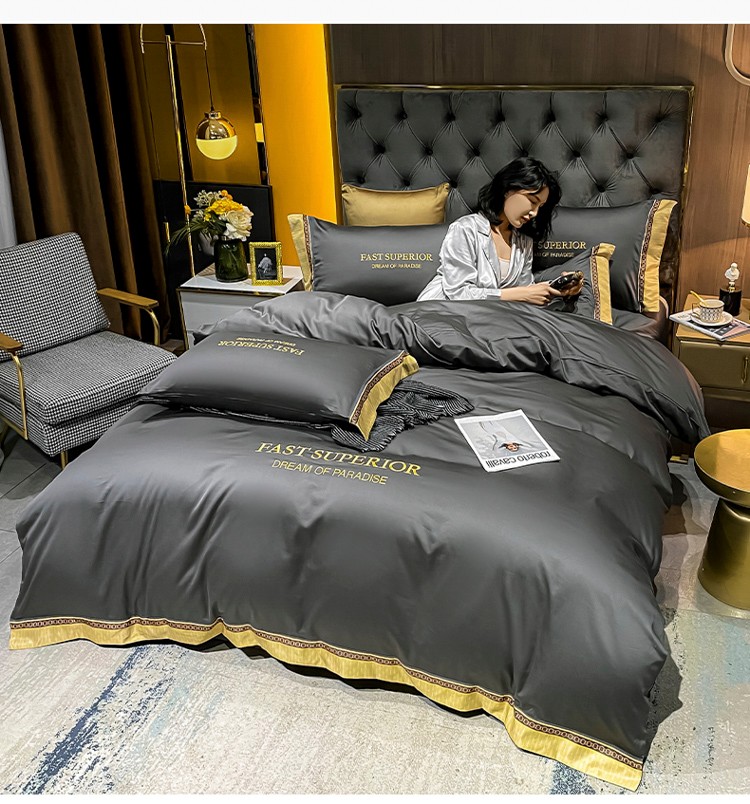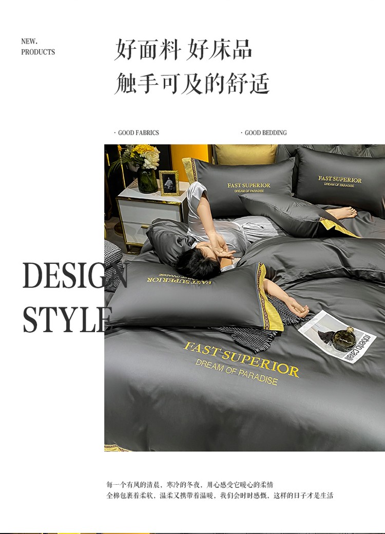 ab家纺 2021新款40s全棉刺绣四件套高级灰