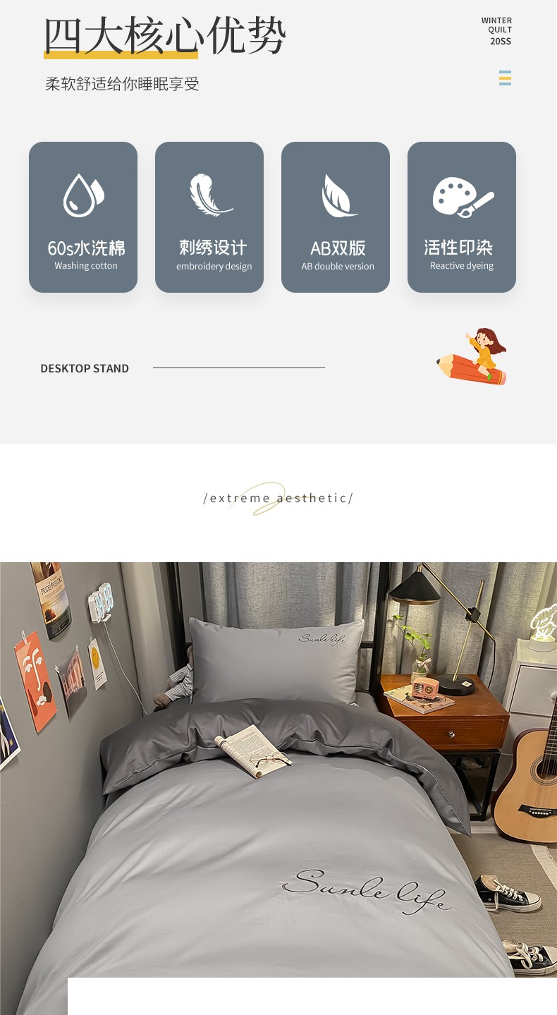 商品名称:古吉梦 2021新款水洗棉-S双拼学生三件套 双拼-浅灰