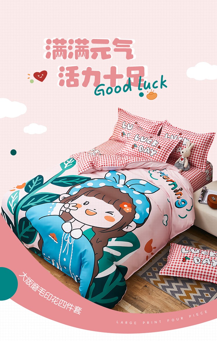 KT猫直营店 2024新款大版磨毛印花四件套 元气少女