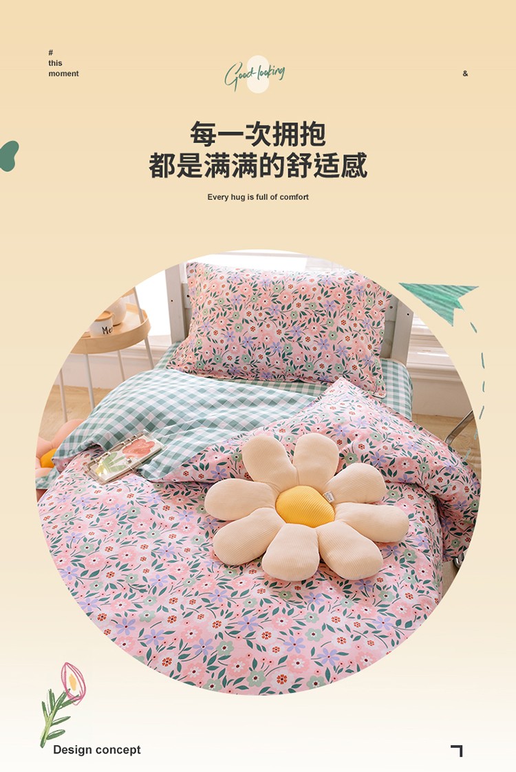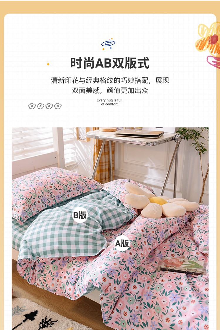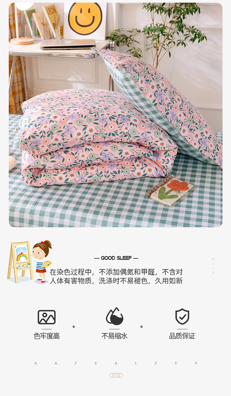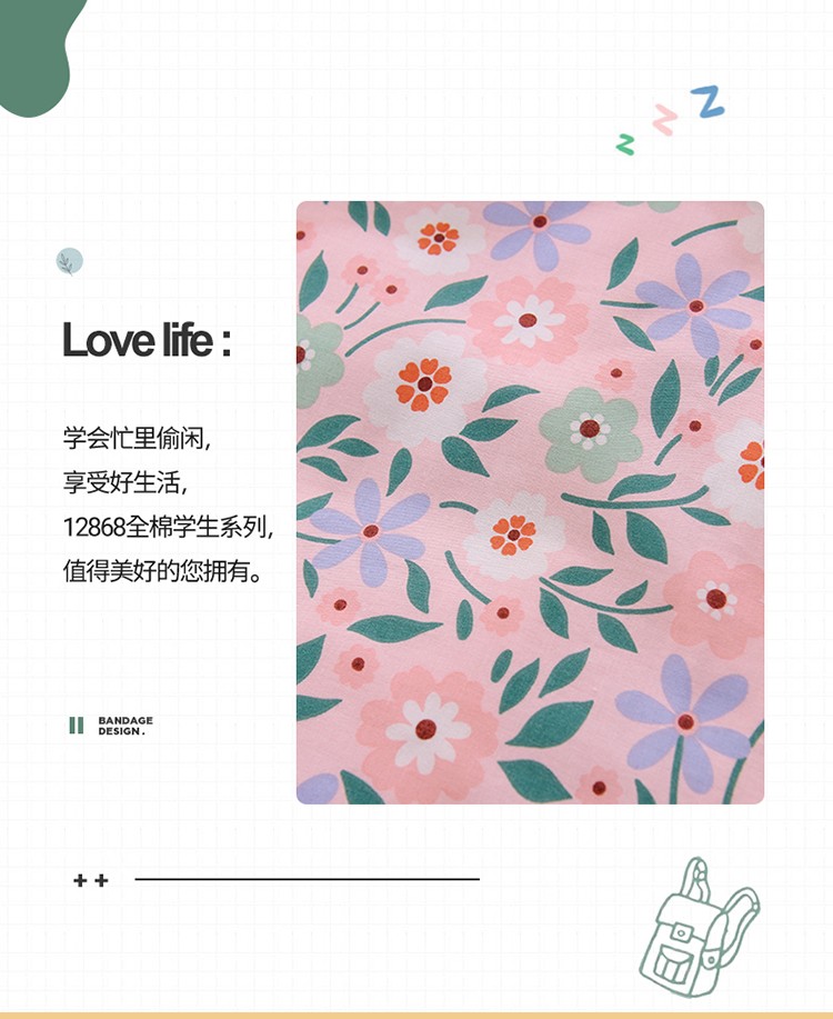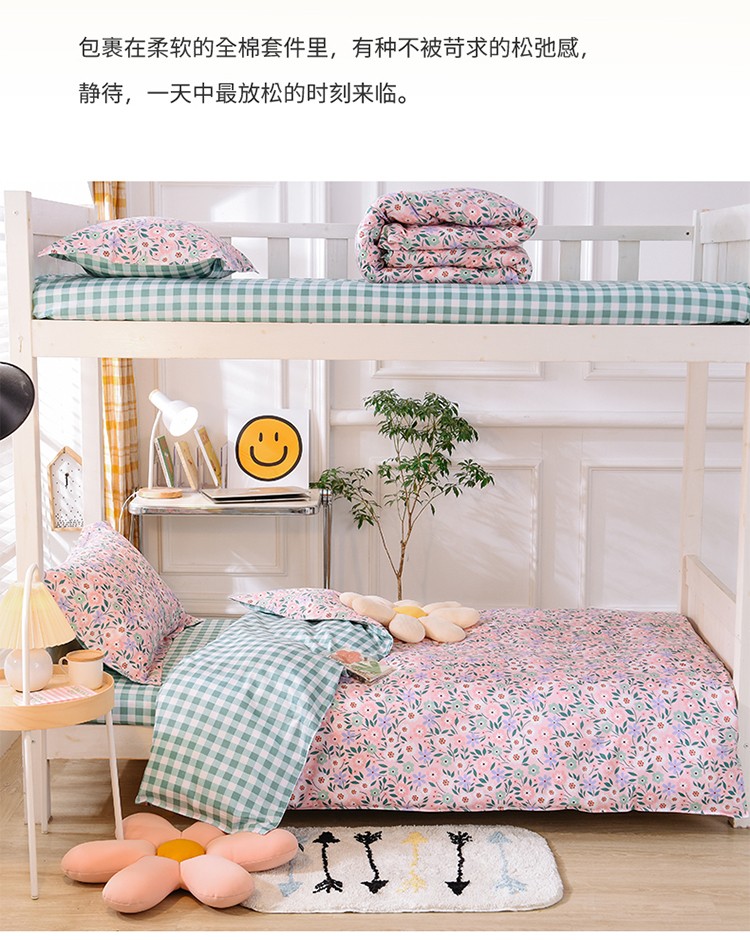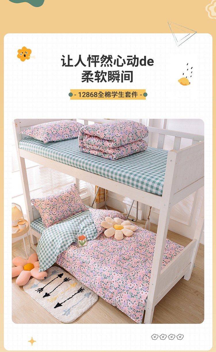 多品家纺 2021新款12868全棉学生三件套 风铃花粉