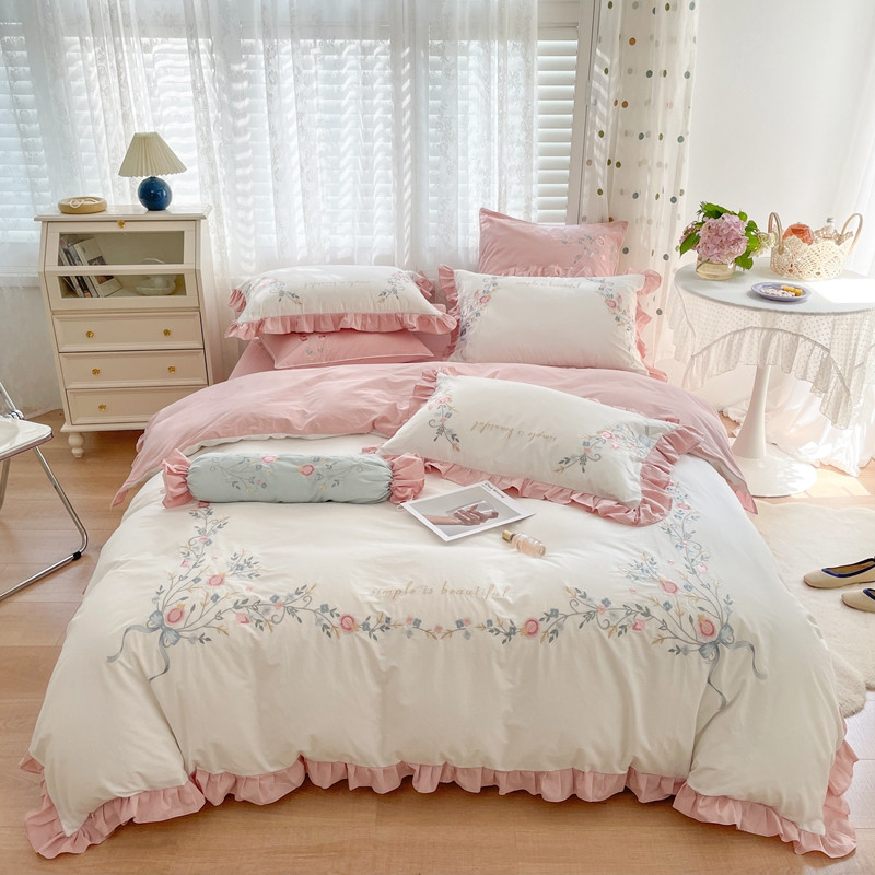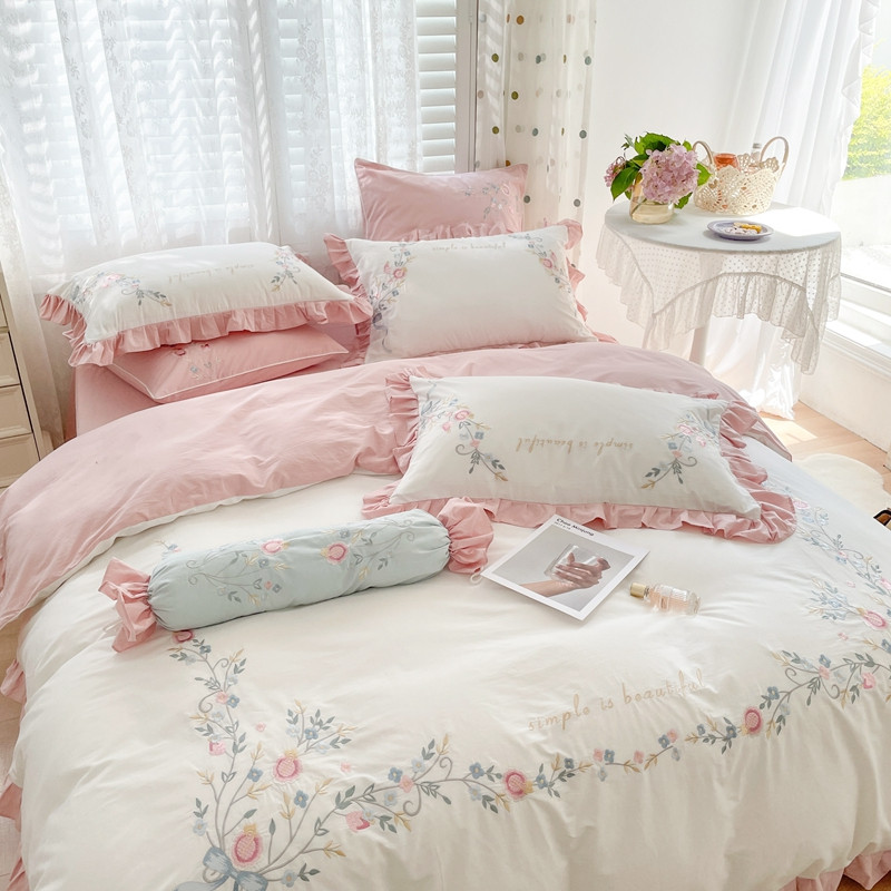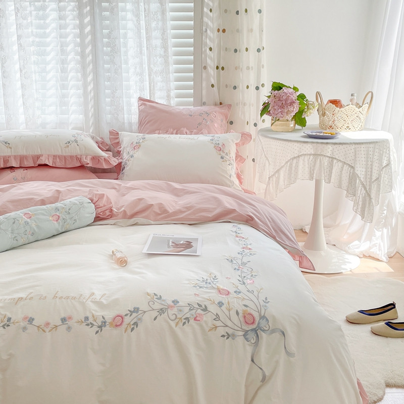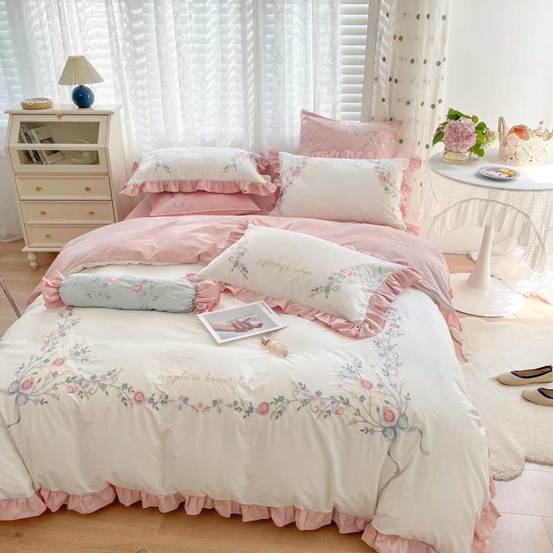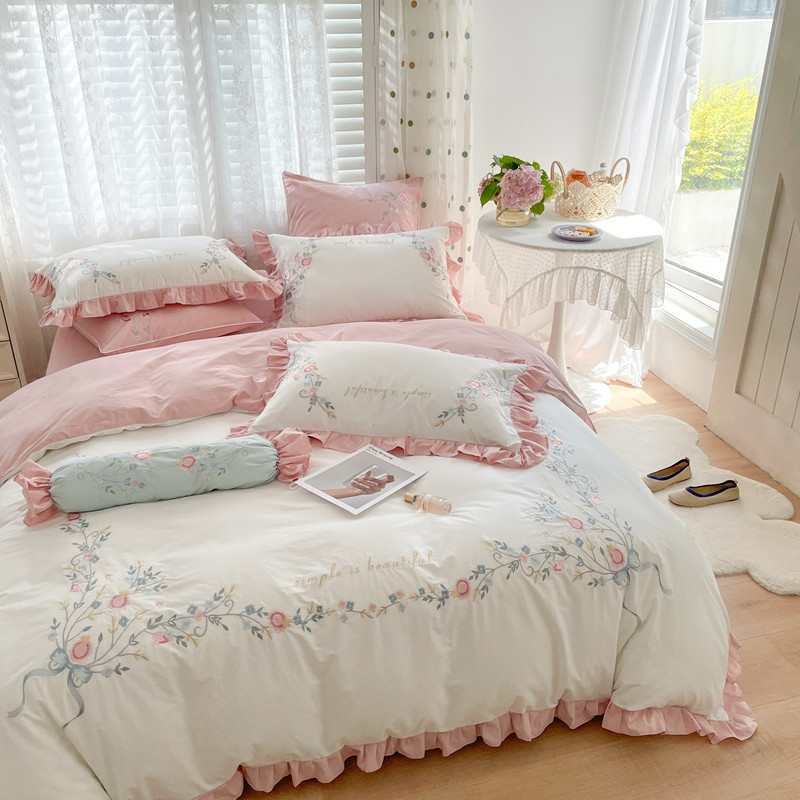 商品名称:(总)馨蕊家居 2021新款水洗棉四件套-朝花夕拾月光白
