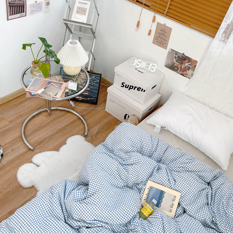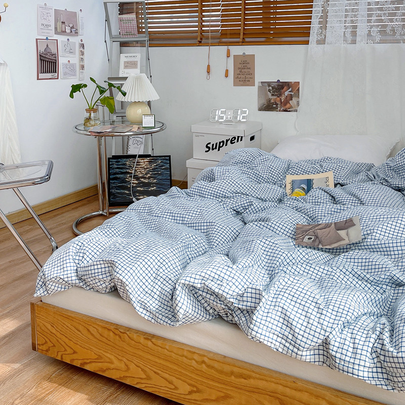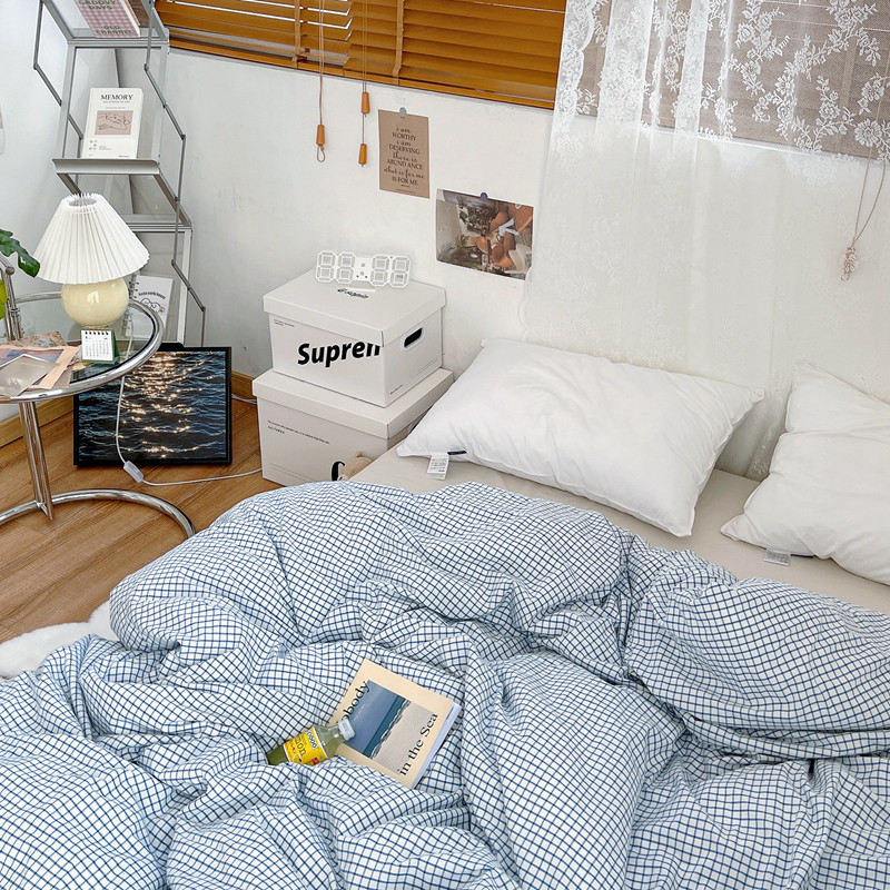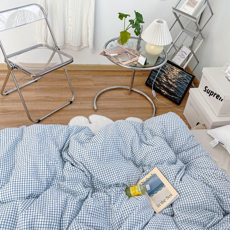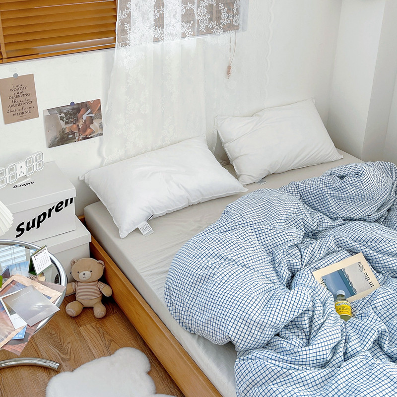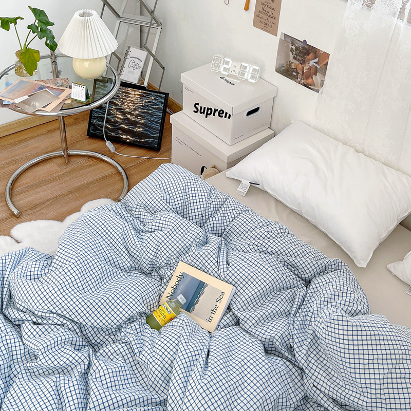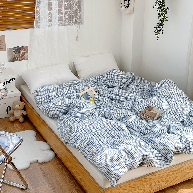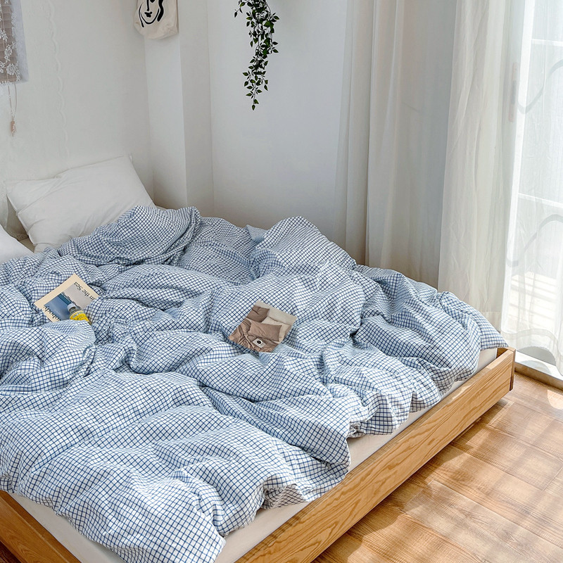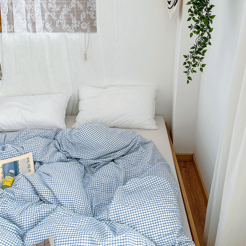 安莱生活 2021新款水洗棉全棉单品被套 清新雾蓝格