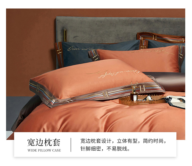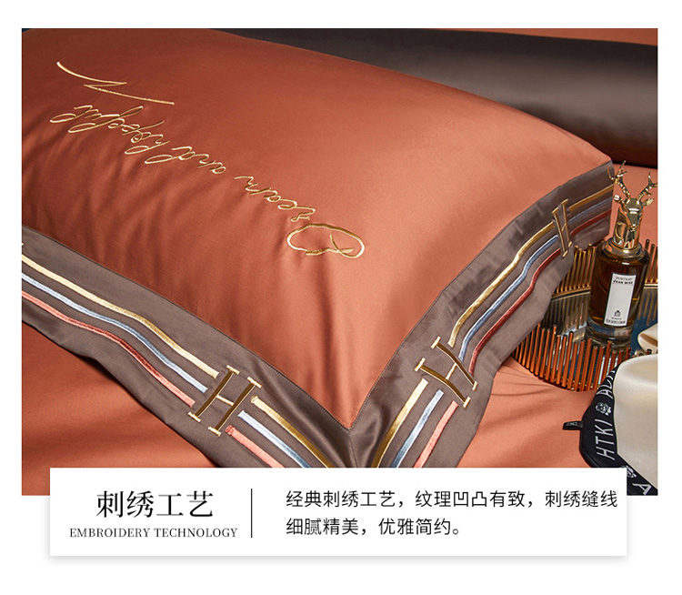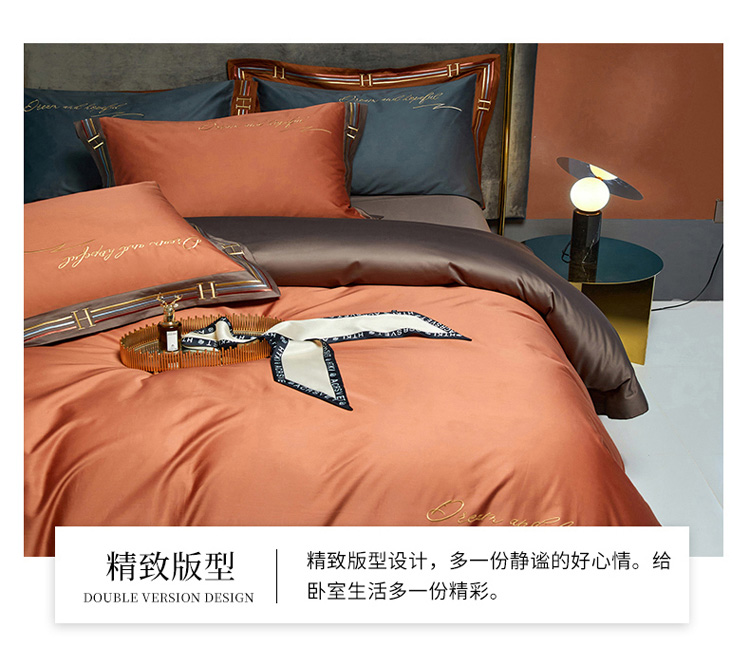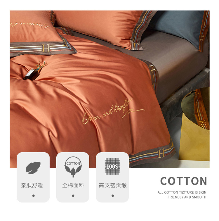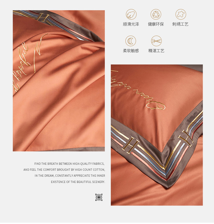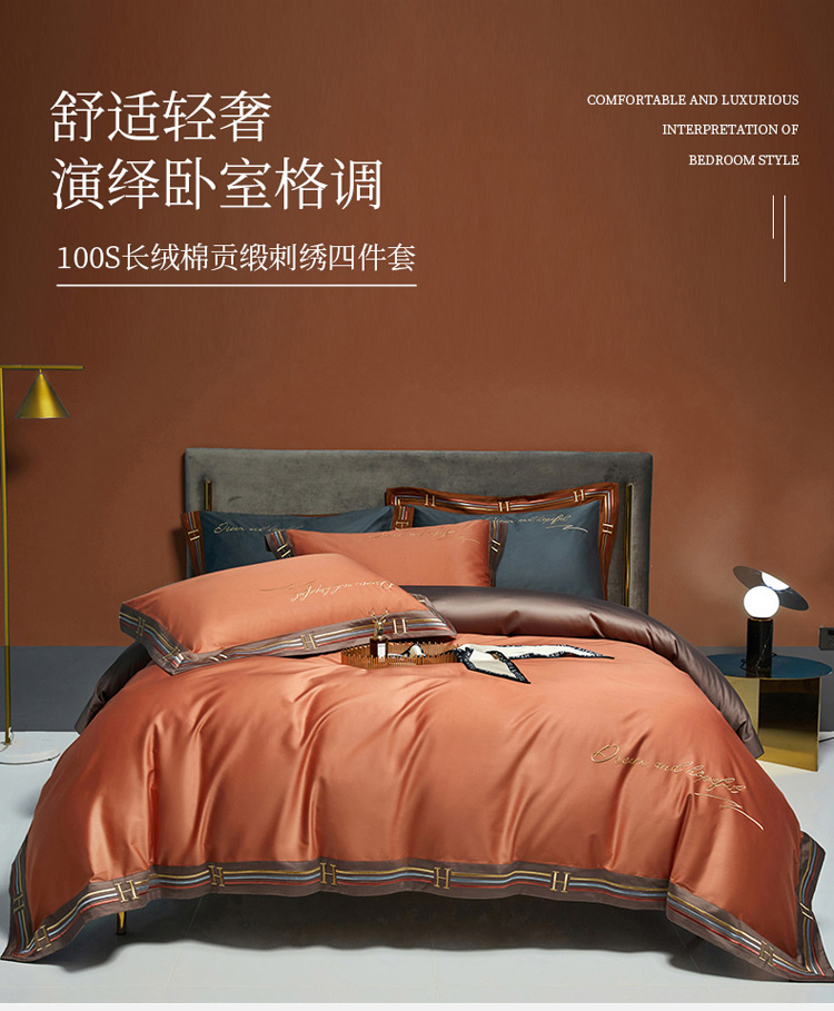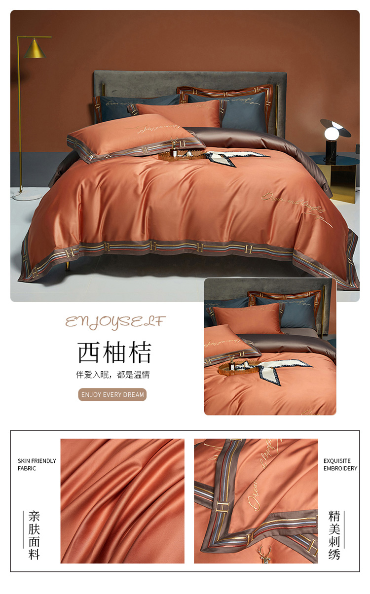 爱缦 2021新款100S长绒棉贡缎刺绣四件套罗曼尼 西柚桔