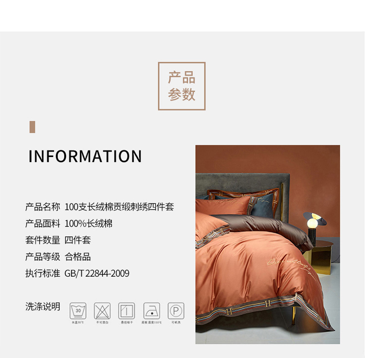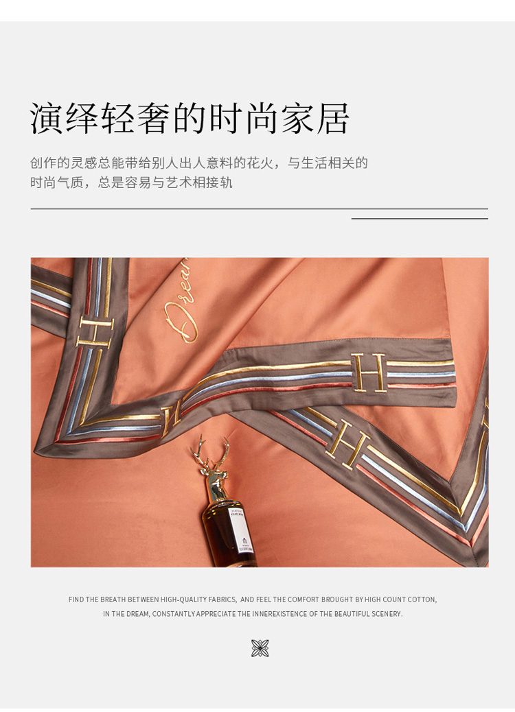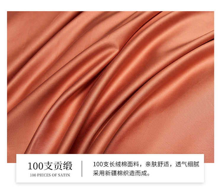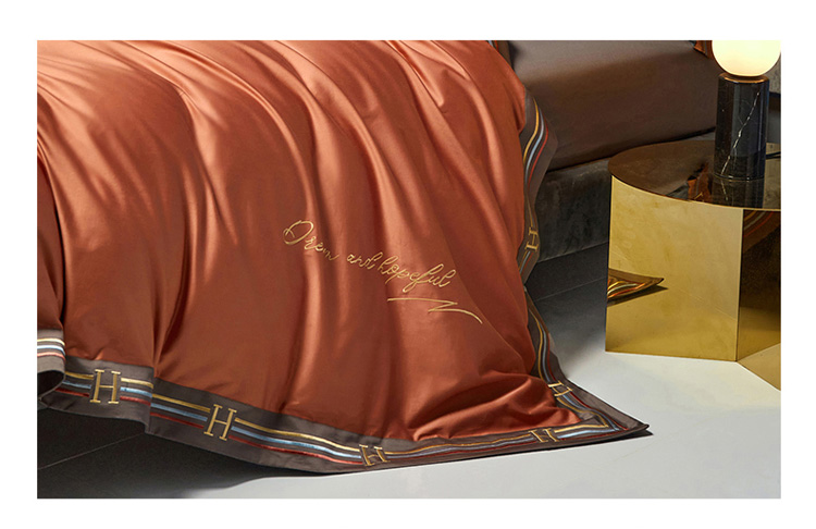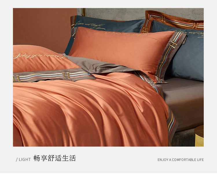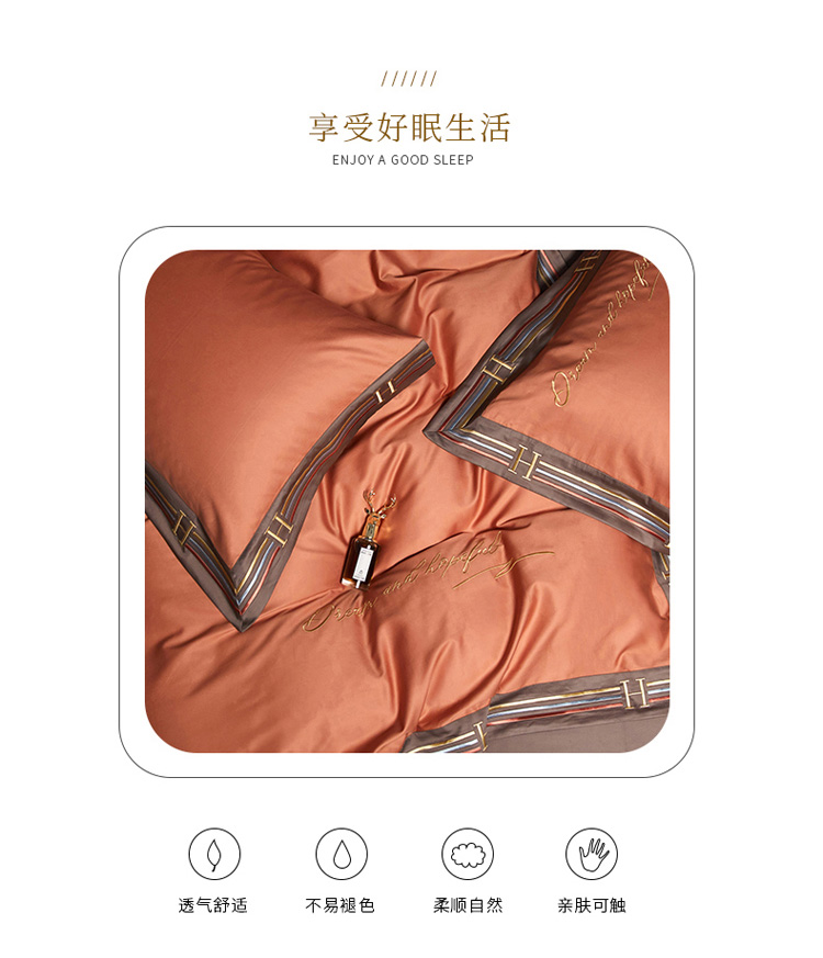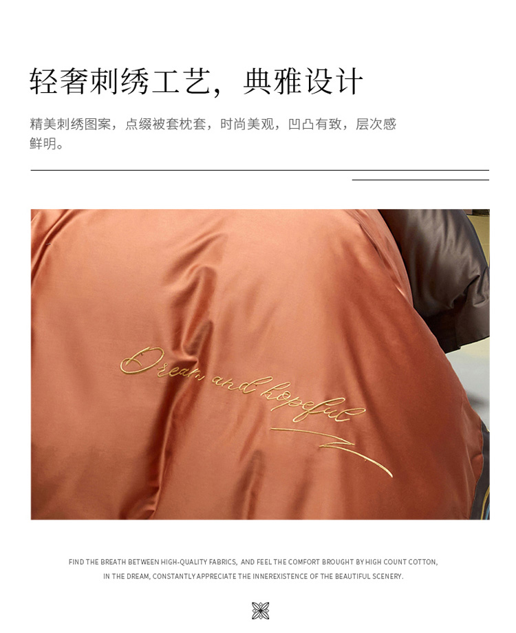 爱缦 2021新款100S长绒棉贡缎刺绣四件套罗曼尼 西柚桔