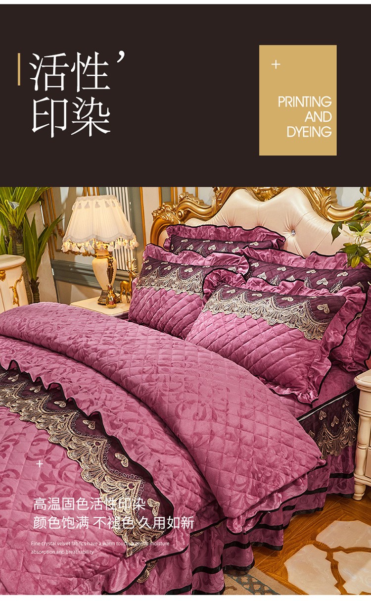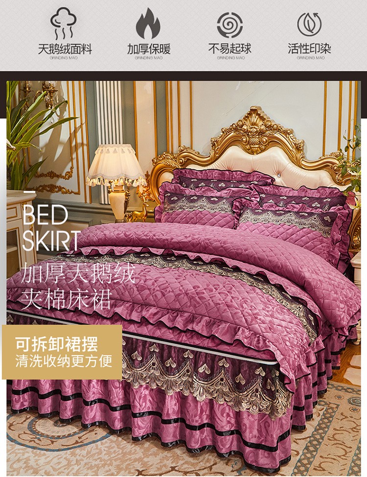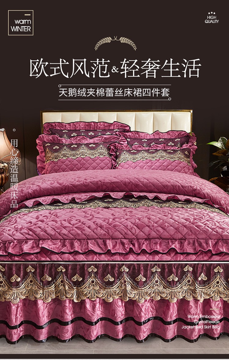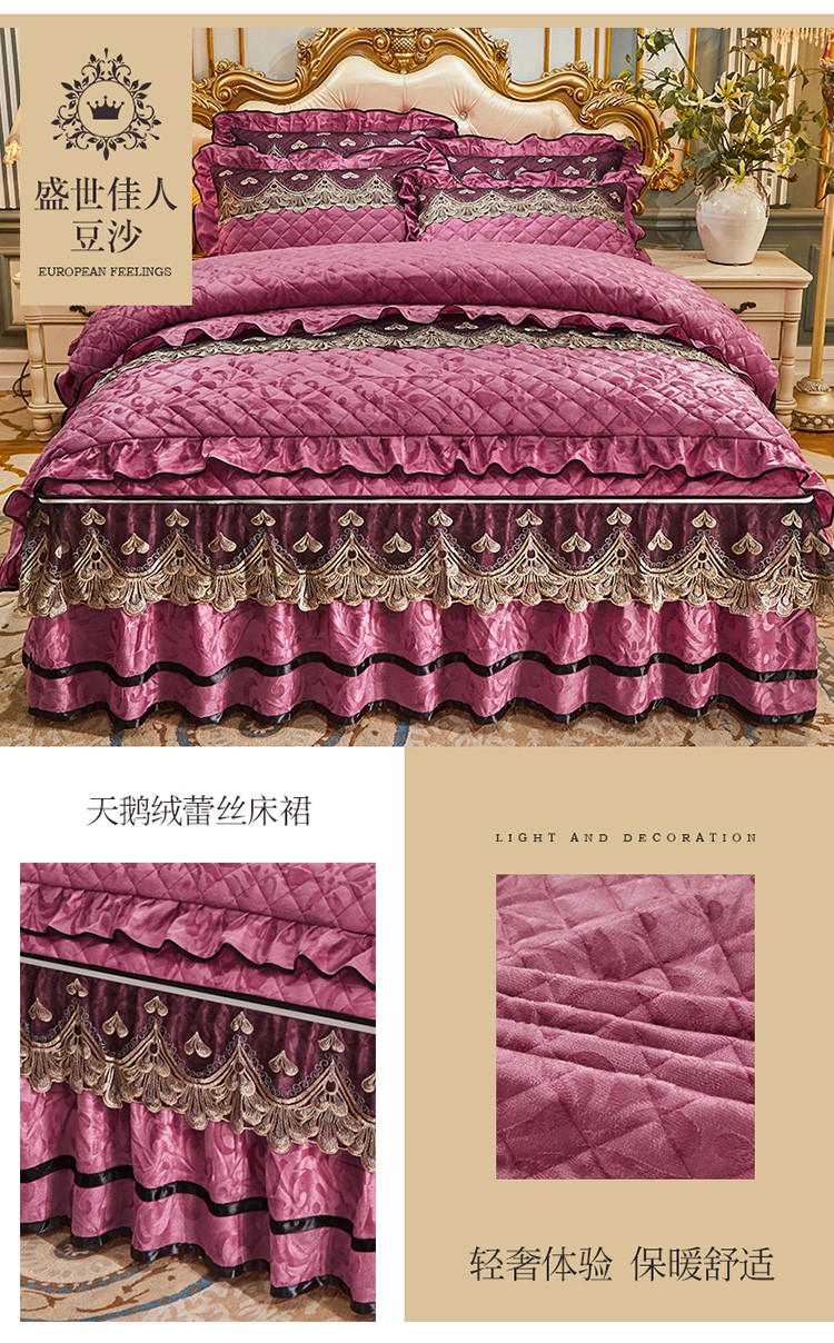 商品名称:网红馆 2025新款盛世佳人天鹅绒床裙全夹棉四件套 豆沙