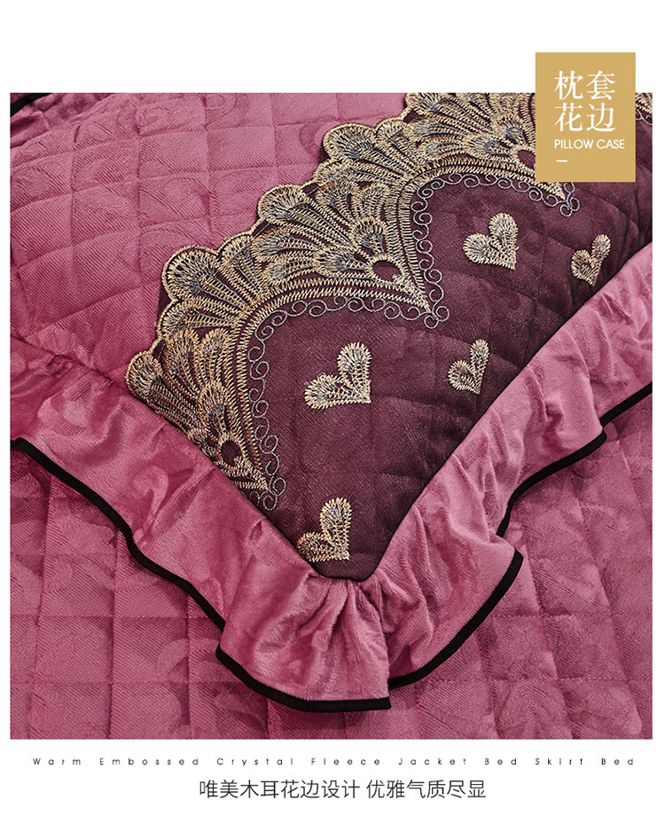 网红馆 2025新款盛世佳人天鹅绒床裙全夹棉四件套 豆沙