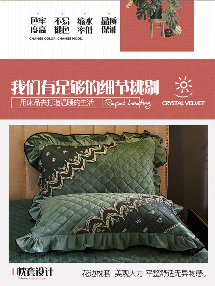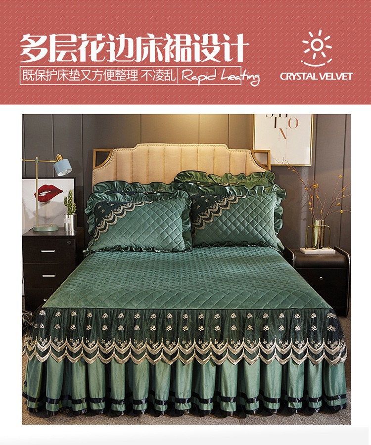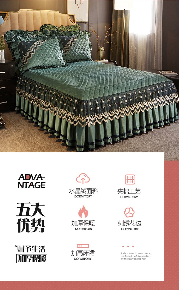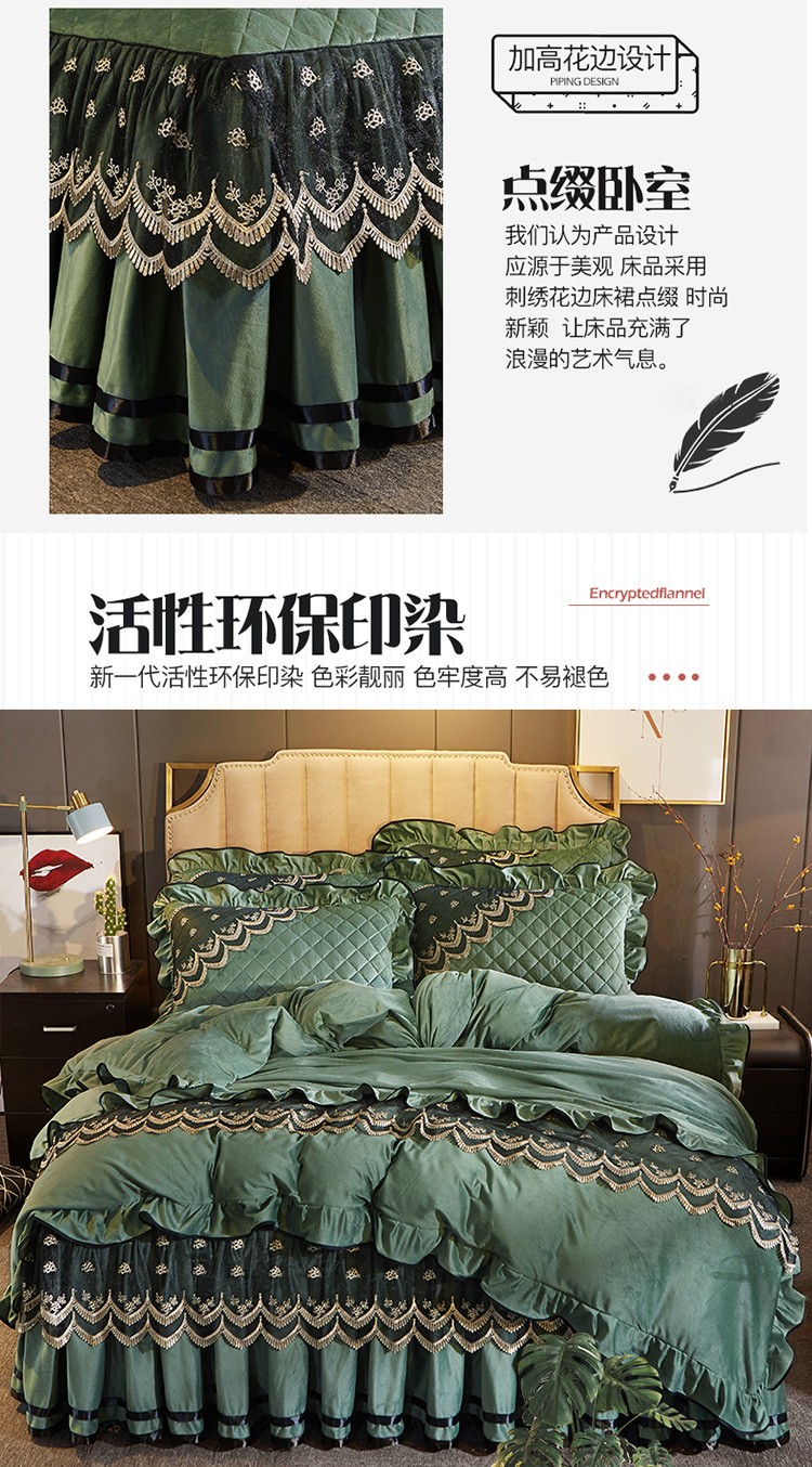 商品名称:网红馆 2025新款玲珑时尚水晶绒夹棉床裙四件套 橄榄绿