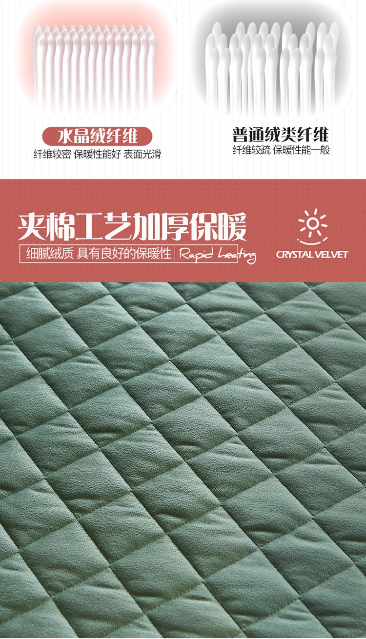 网红馆 2025新款玲珑时尚水晶绒夹棉床裙四件套 橄榄绿