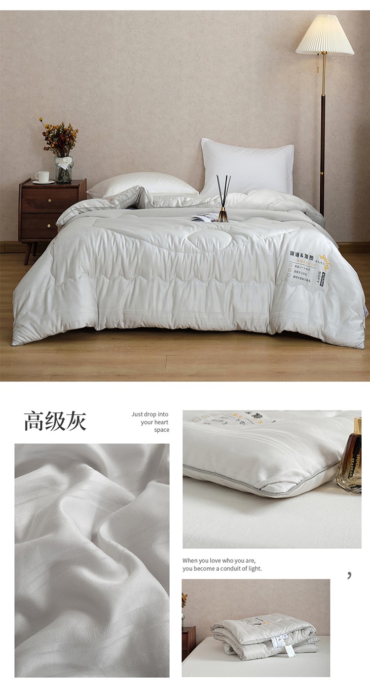 商品名称:木堇2021日式贡缎吸湿发热提花大豆纤维被子被芯春秋被高级灰