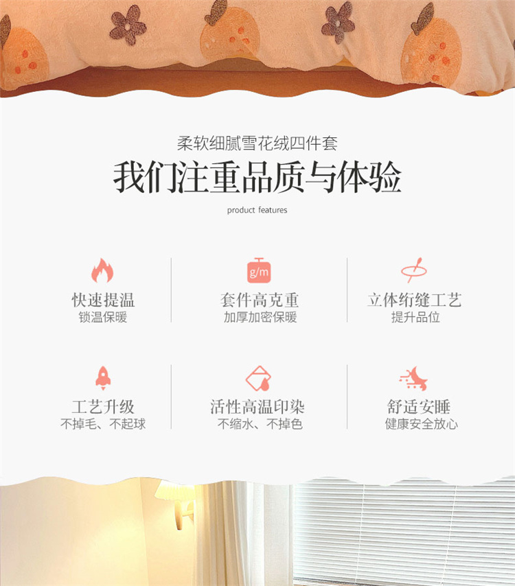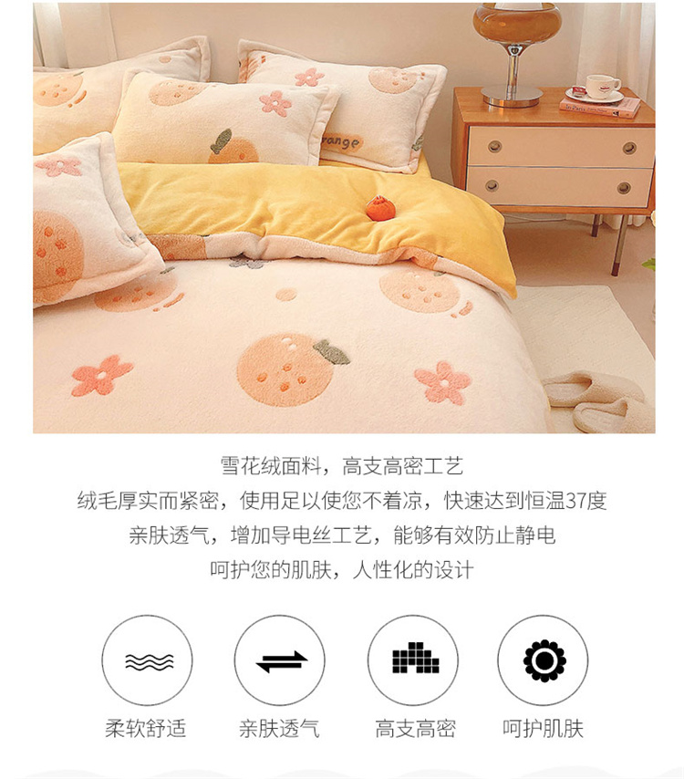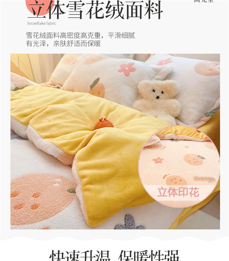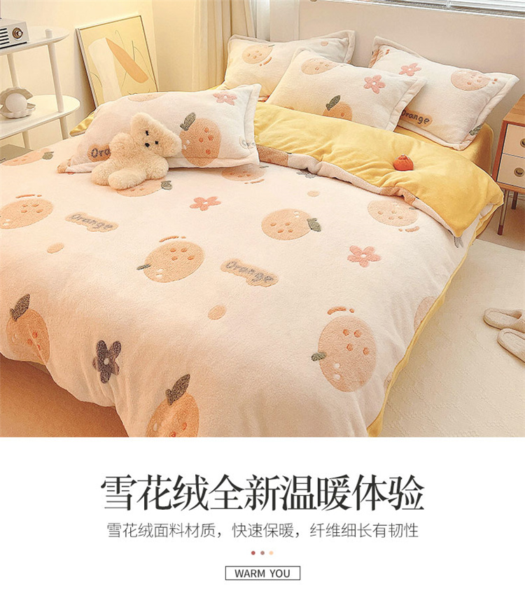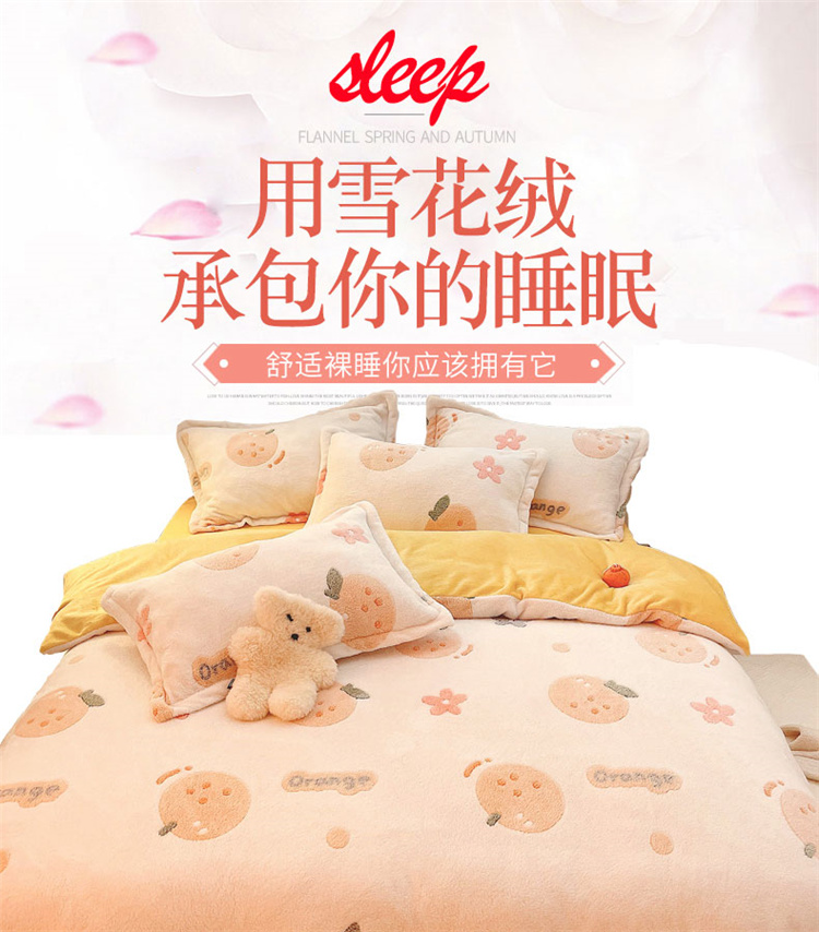 当前位置: 91家纺网 > 商品网购 > 床品套件 > 四件套 > 磨绒四件套 > 川悦生活 2021新款立体雪花绒四件套直播供货 皇冠小橘