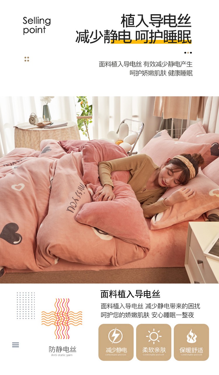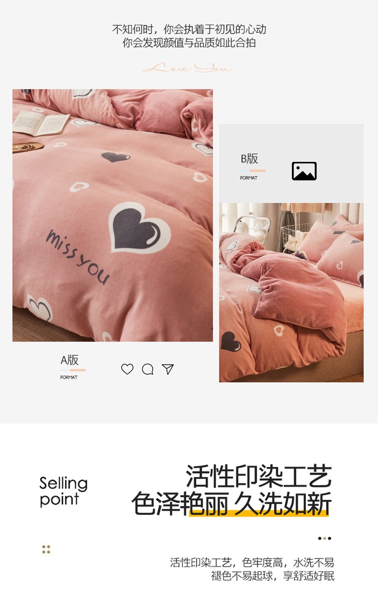 当前位置: 91家纺网 > 商品网购 > 床品套件 > 四件套 > 牛奶绒四件套 > 寐居家纺 2021新款印花牛奶绒四件套深色调 永恒的爱
