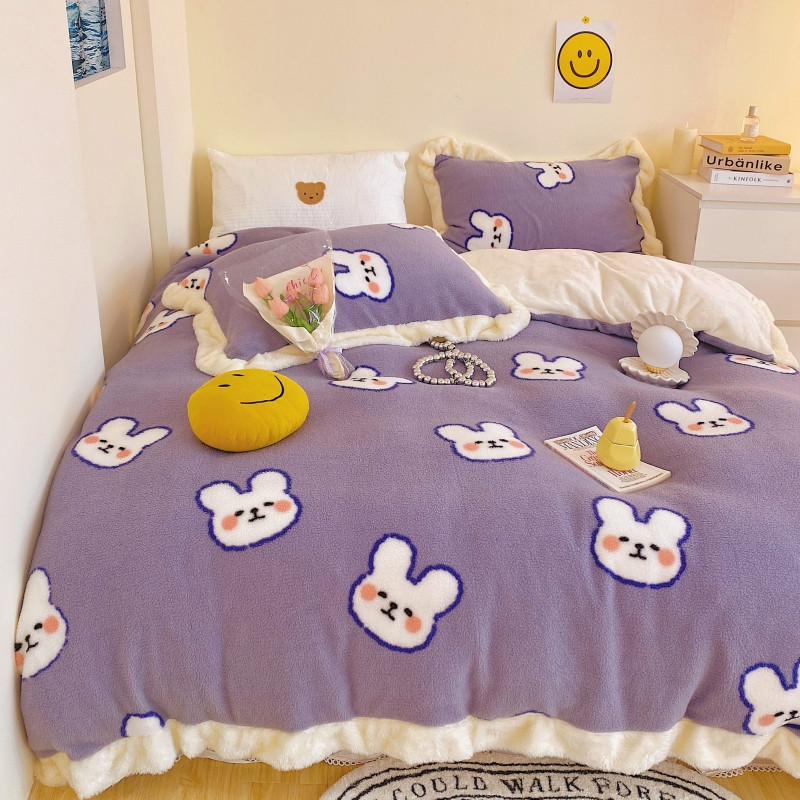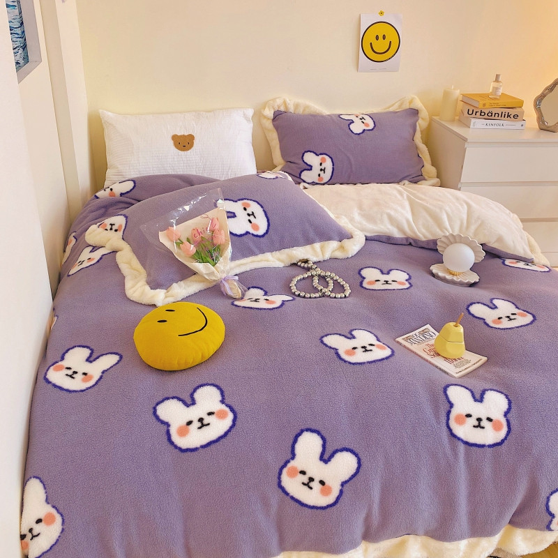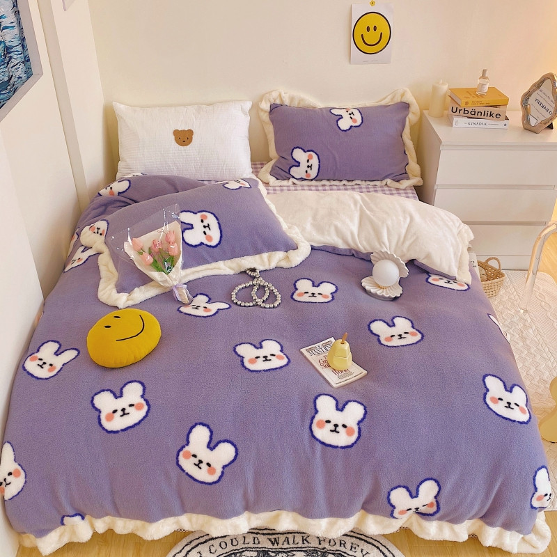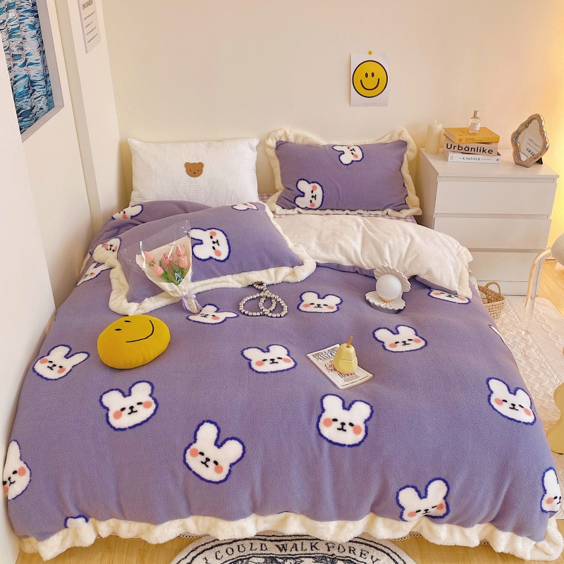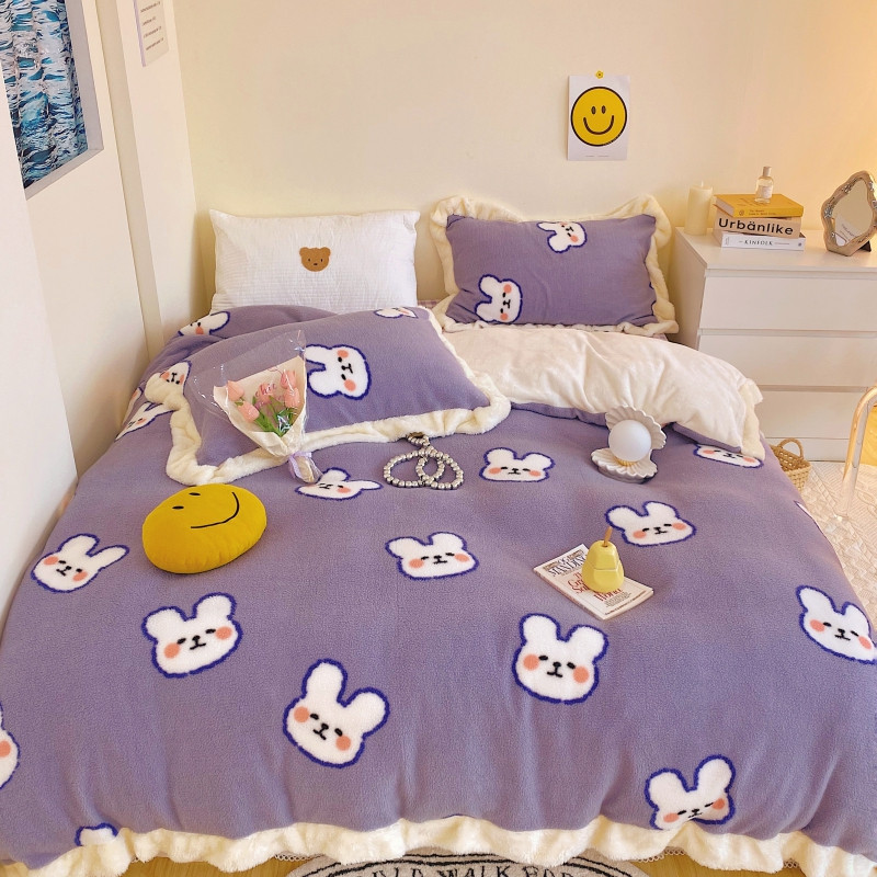 顾里家纺 新款A版泰迪羊羔绒B版牛奶绒ins风韩国四件套 ins兔兔