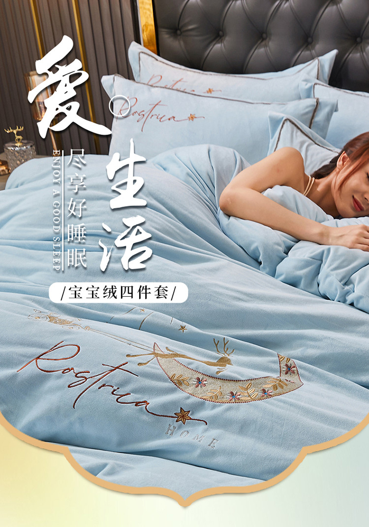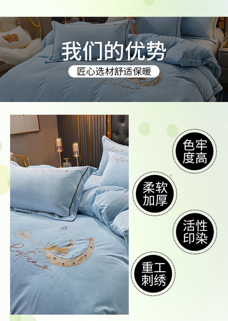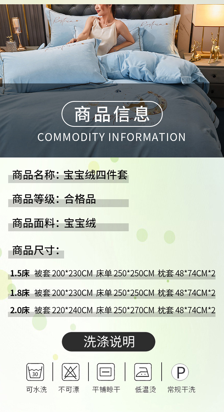 商品名称:铠畅 2021新款典雅宝宝绒刺绣四件套 典雅-浅蓝