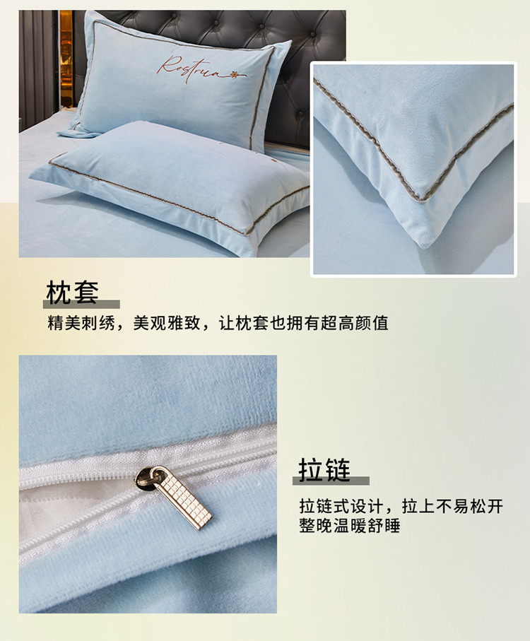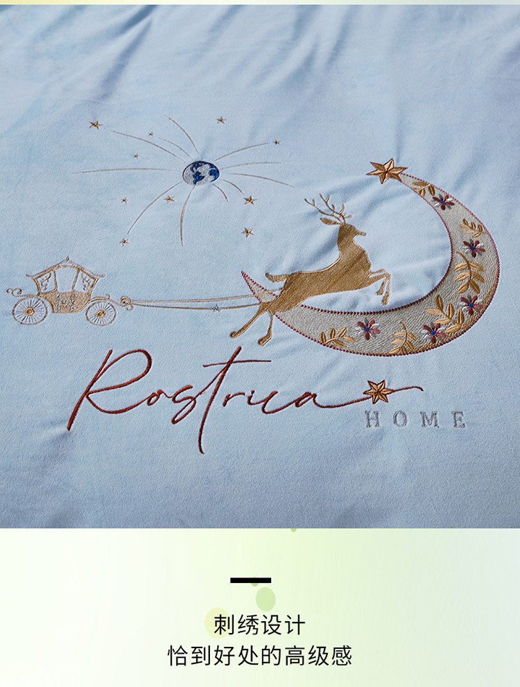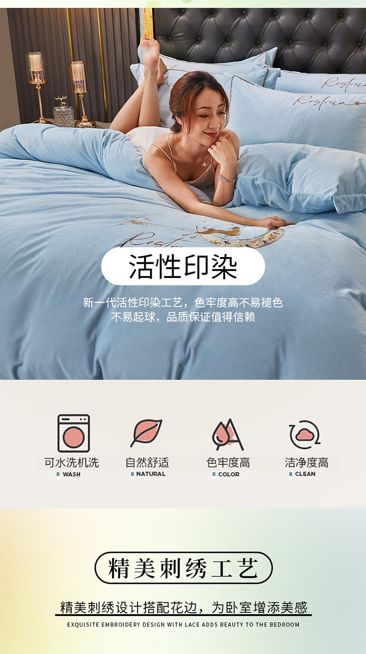 铠畅 2021新款典雅宝宝绒刺绣四件套 典雅-浅蓝