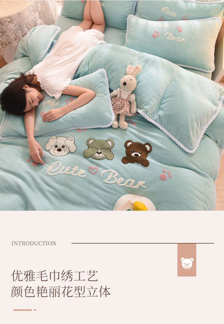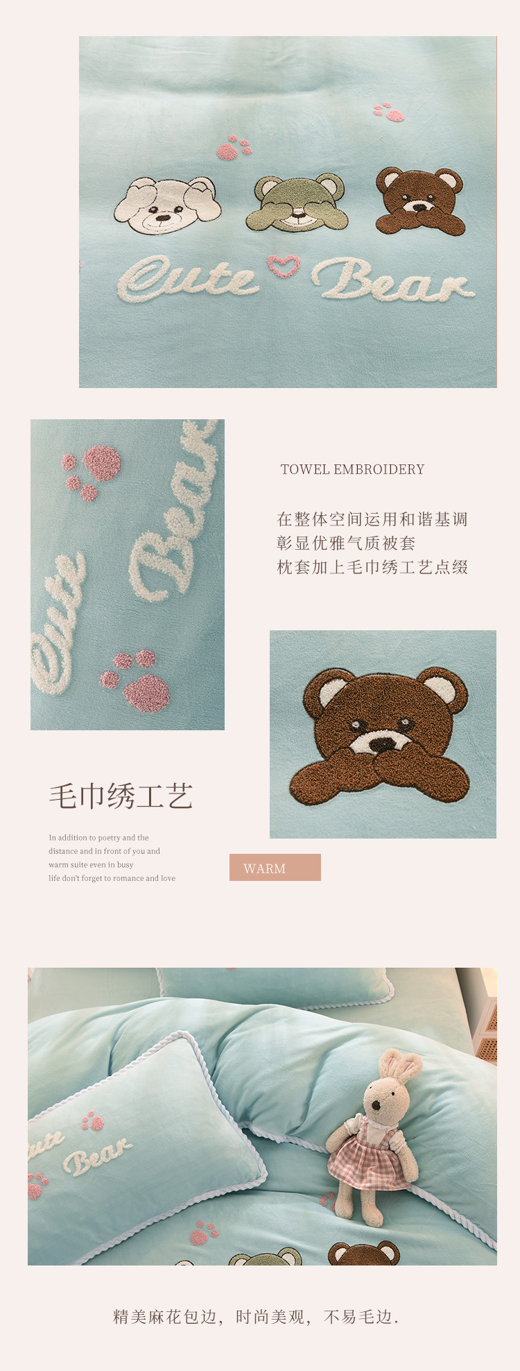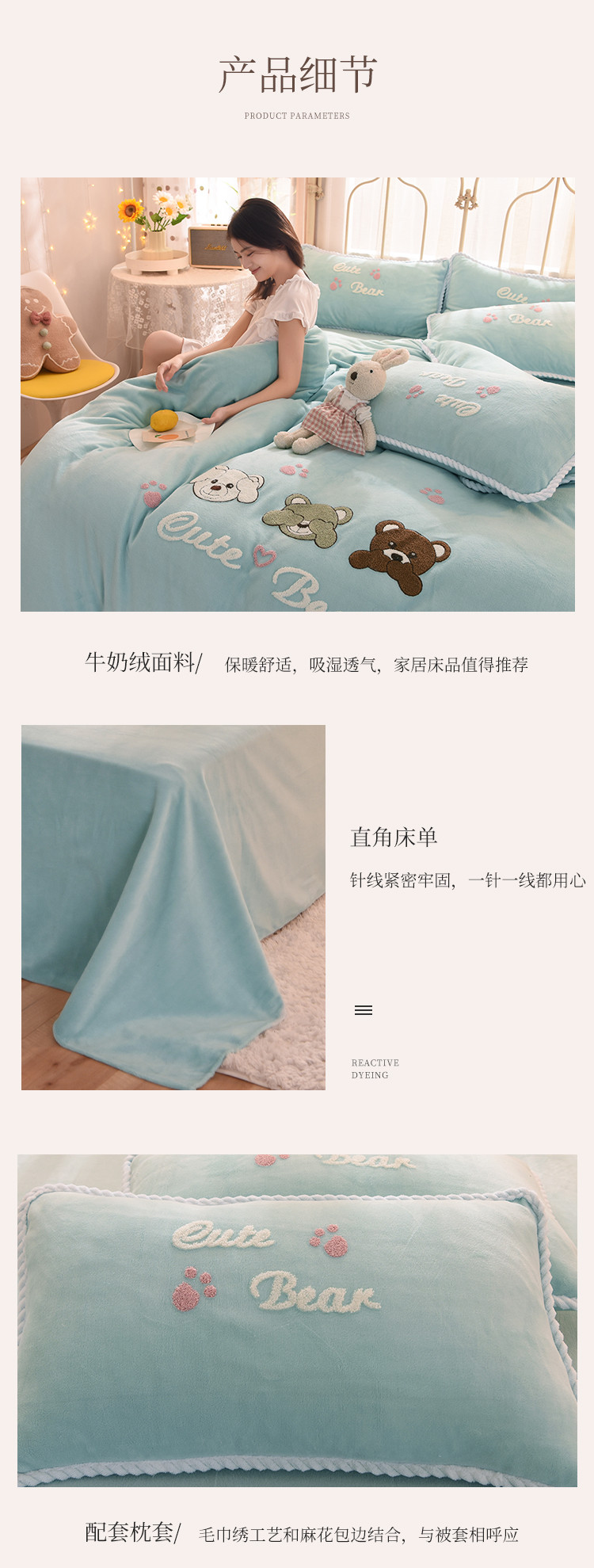 (总)菲儿家纺 2023新款毛巾绣牛奶绒四件套,哇塞小熊-豆绿,哇塞小熊-金桔黄,哇塞小熊-浅粉,哇塞小熊-优雅紫,哇塞小熊-月光蓝,小熊猫-奶黄,小熊猫-少女粉,小熊猫-松石绿,小熊猫-星空蓝,小熊猫-芋泥紫
