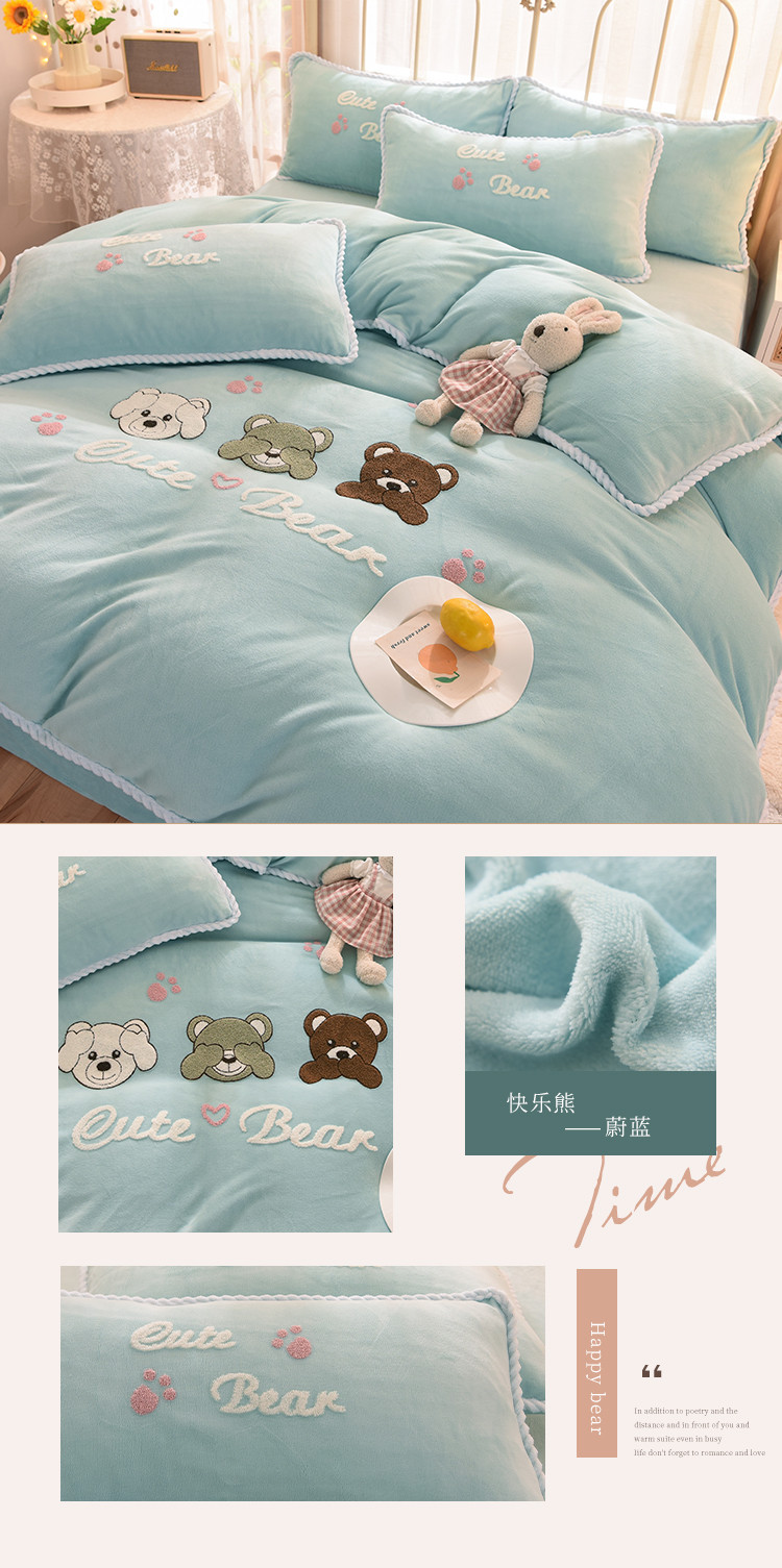 菲儿 2021新款牛奶绒四件套法莱水晶绒快乐熊-蔚蓝