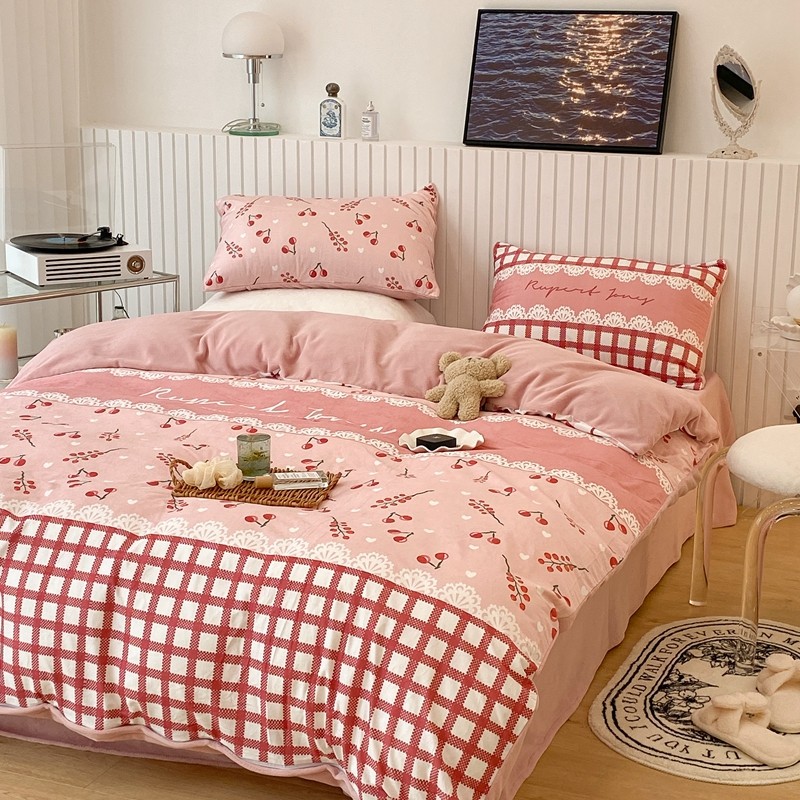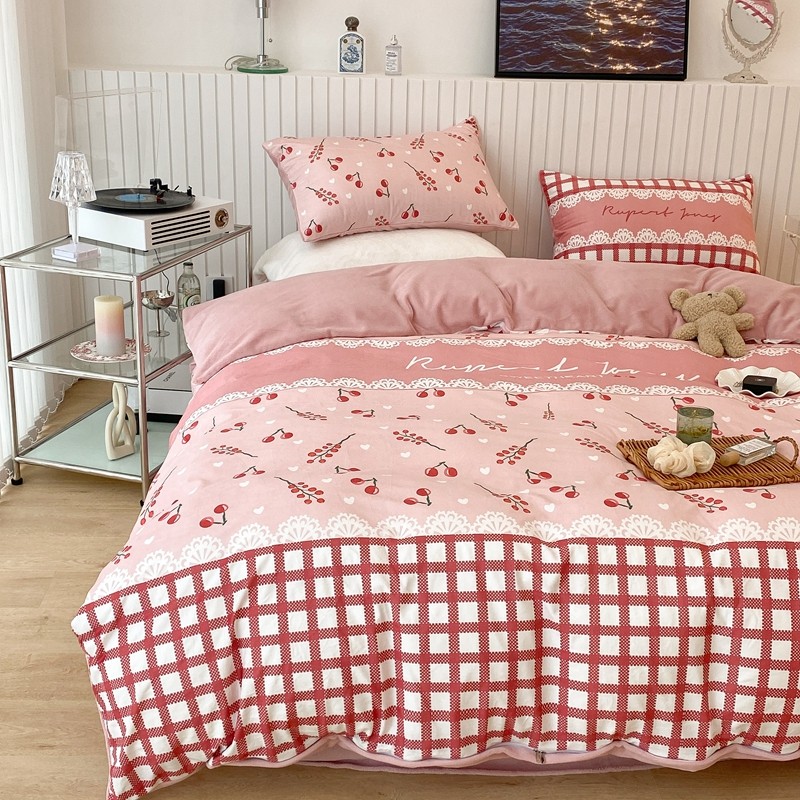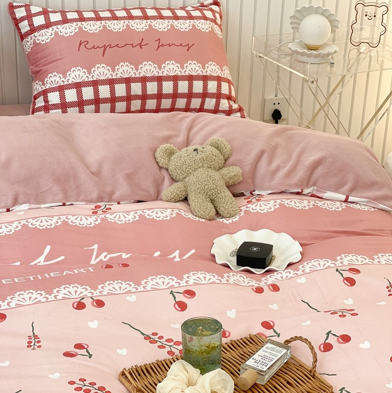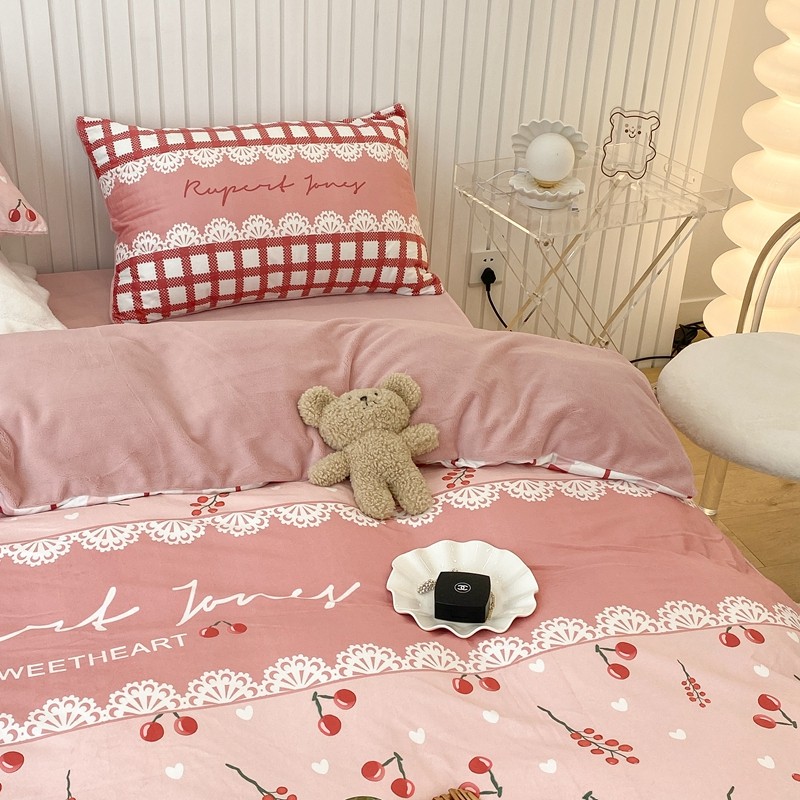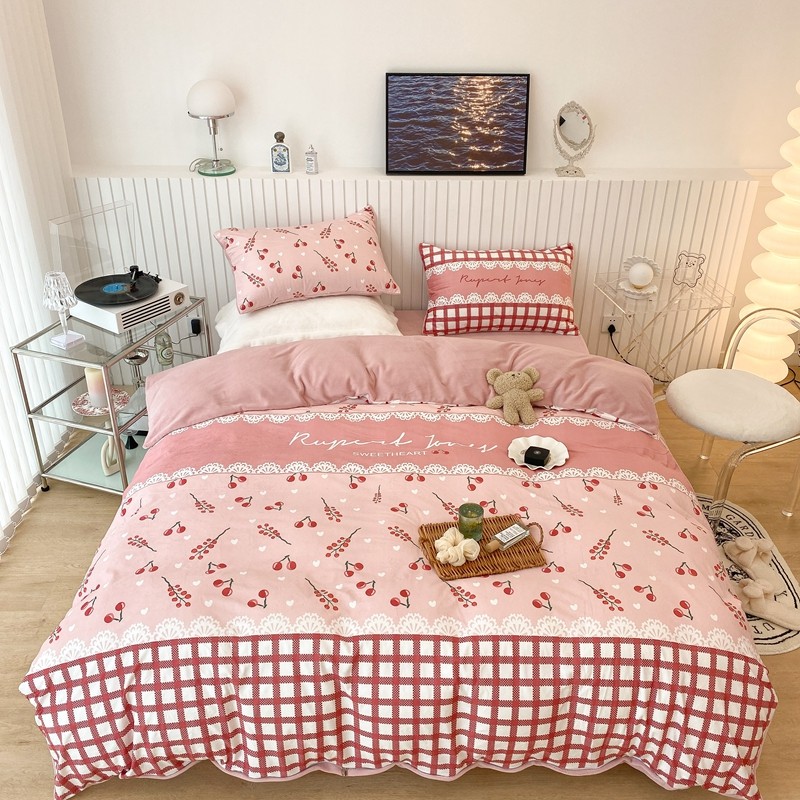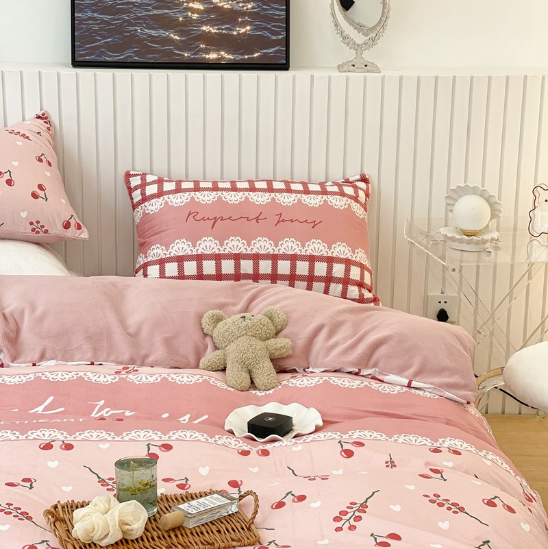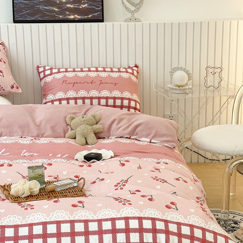 (总)昔可家纺 2024新款印花牛奶绒四件套系列-洛丽塔风,萝莉小兔,小熊烘焙屋,小熊玩偶屋