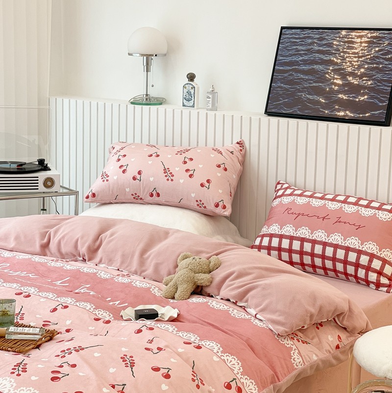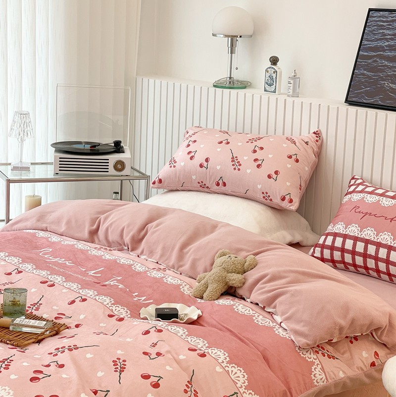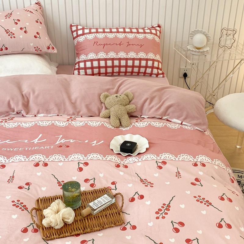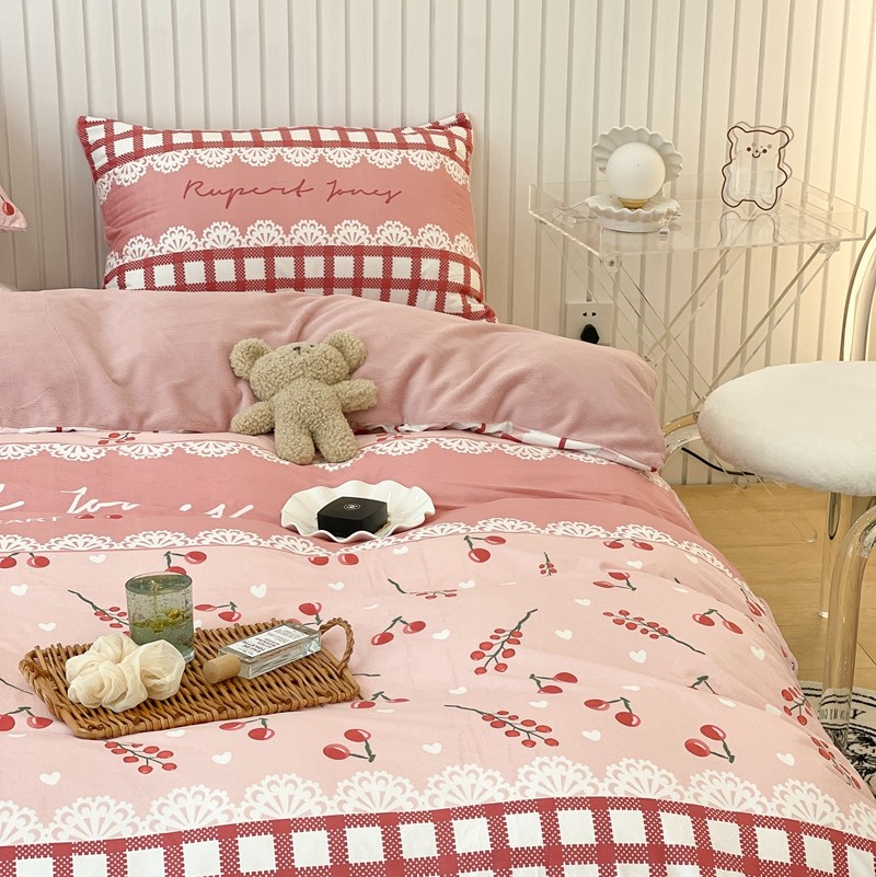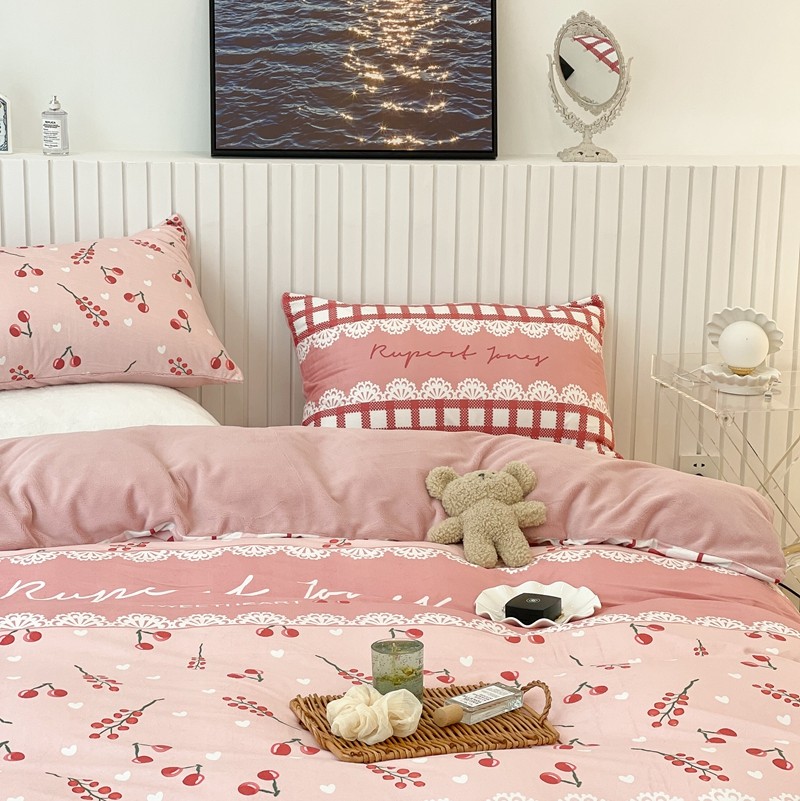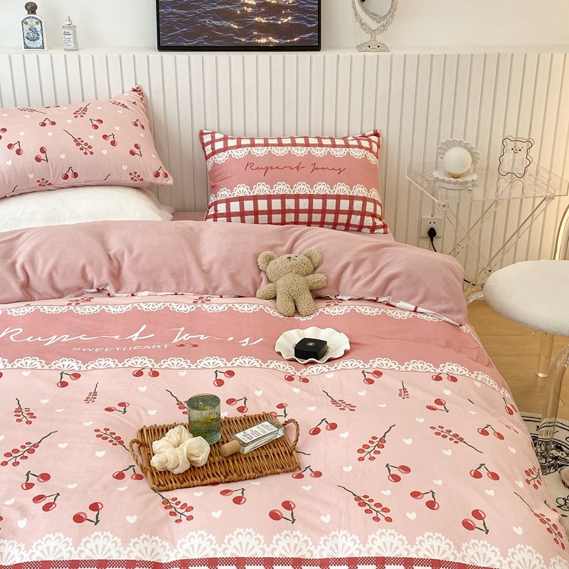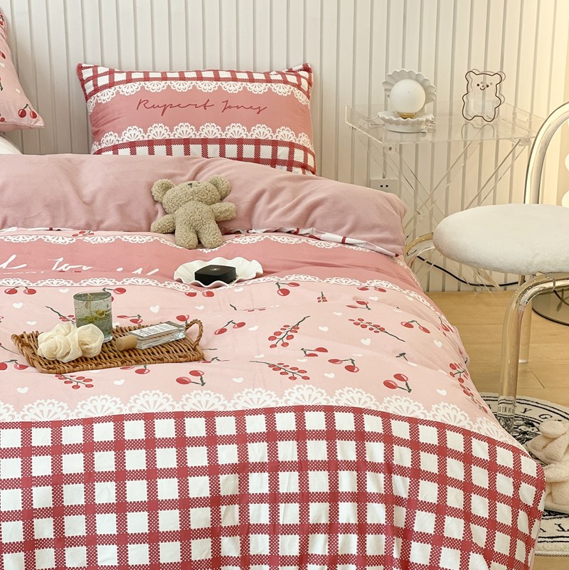 (总)昔可家纺 2024新款印花牛奶绒四件套系列-洛丽塔风,萝莉小兔,小熊烘焙屋,小熊玩偶屋