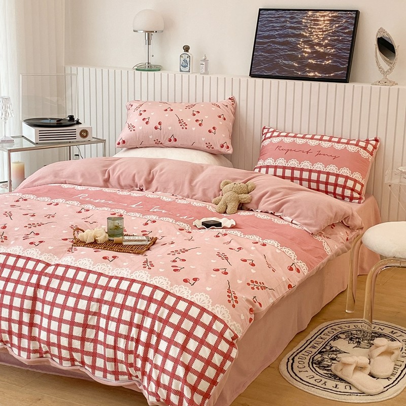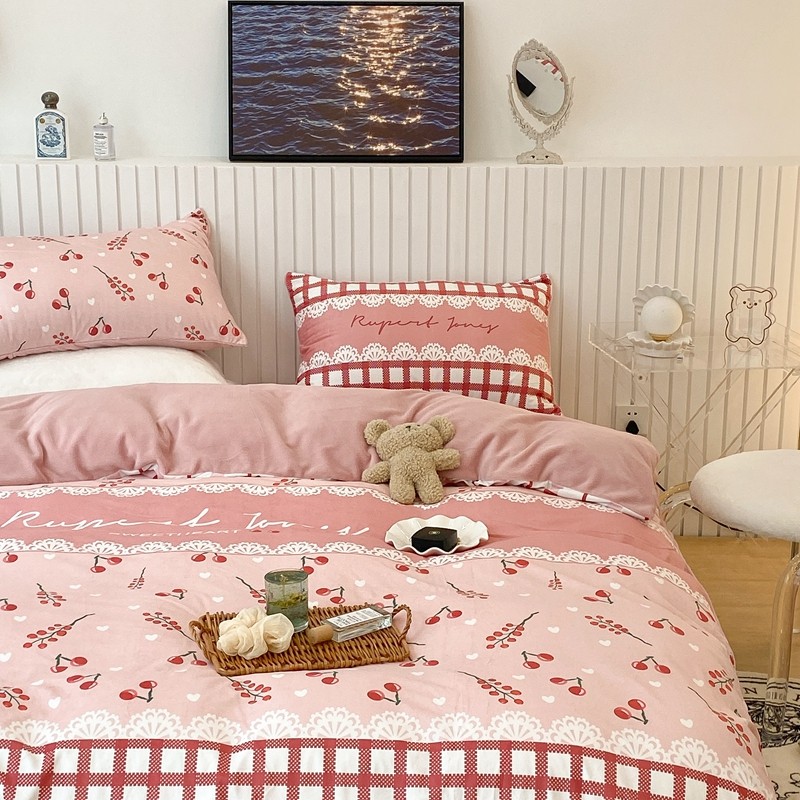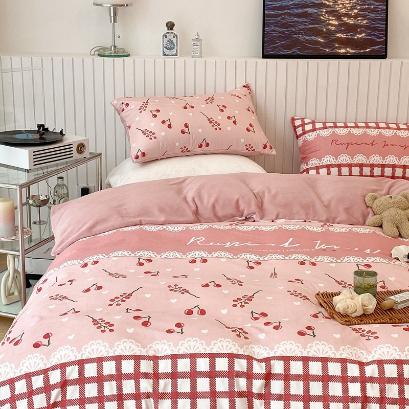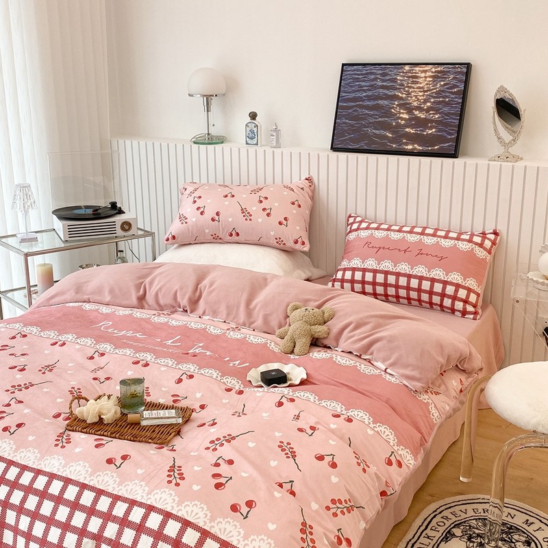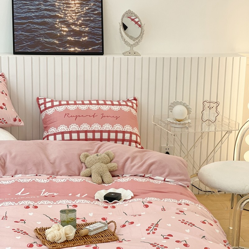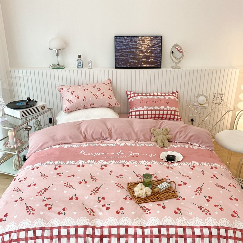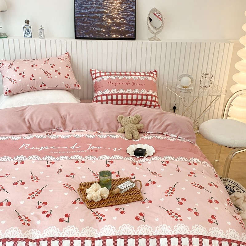 (总)昔可家纺 2024新款印花牛奶绒四件套系列-ins少女系列,芭蕾蛋糕,芭蕾美学,粉格蝴蝶结,黑粉芭蕾蝴蝶结,蓝格蝴蝶结,樱桃奶油蛋糕