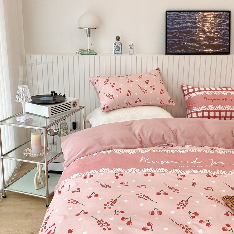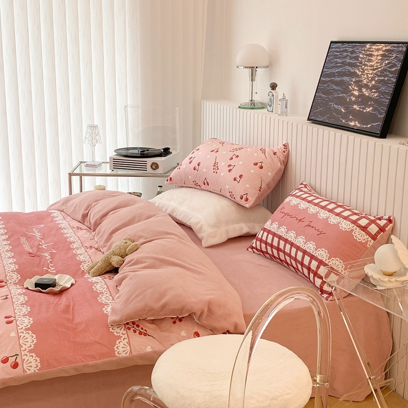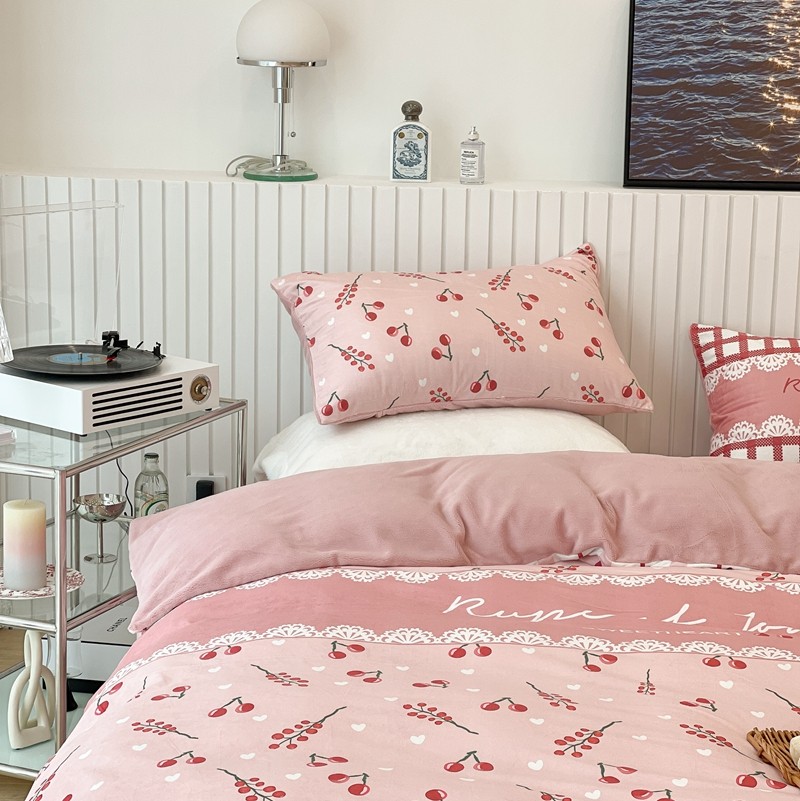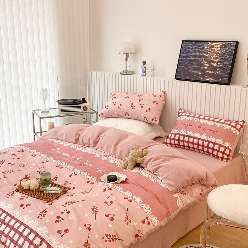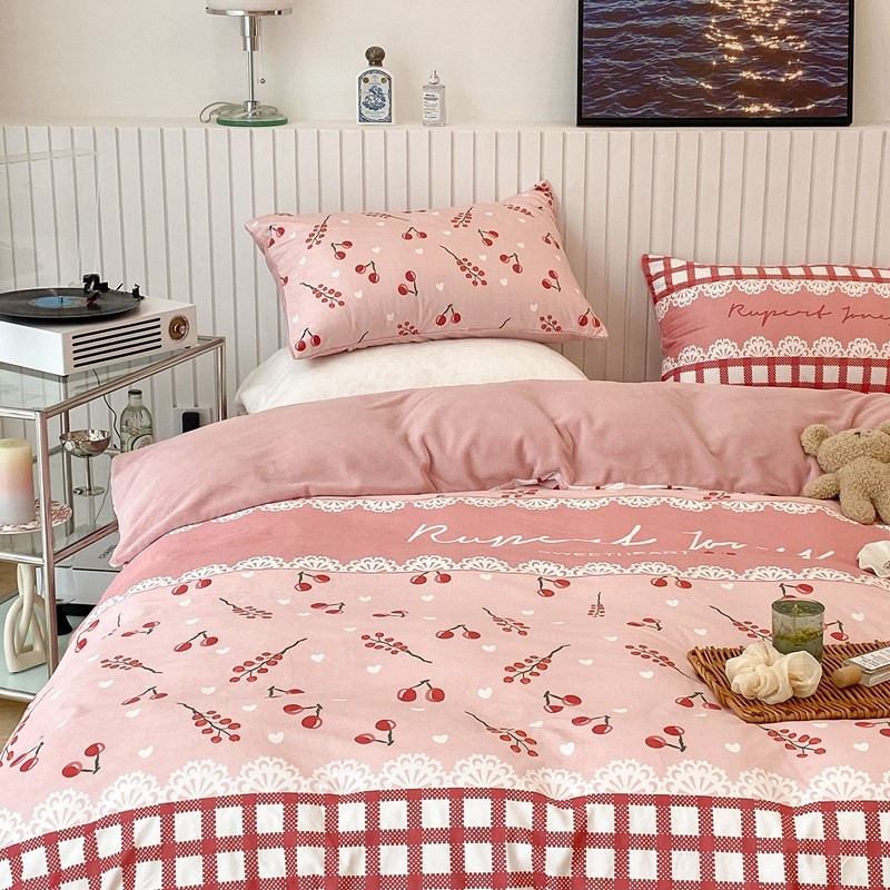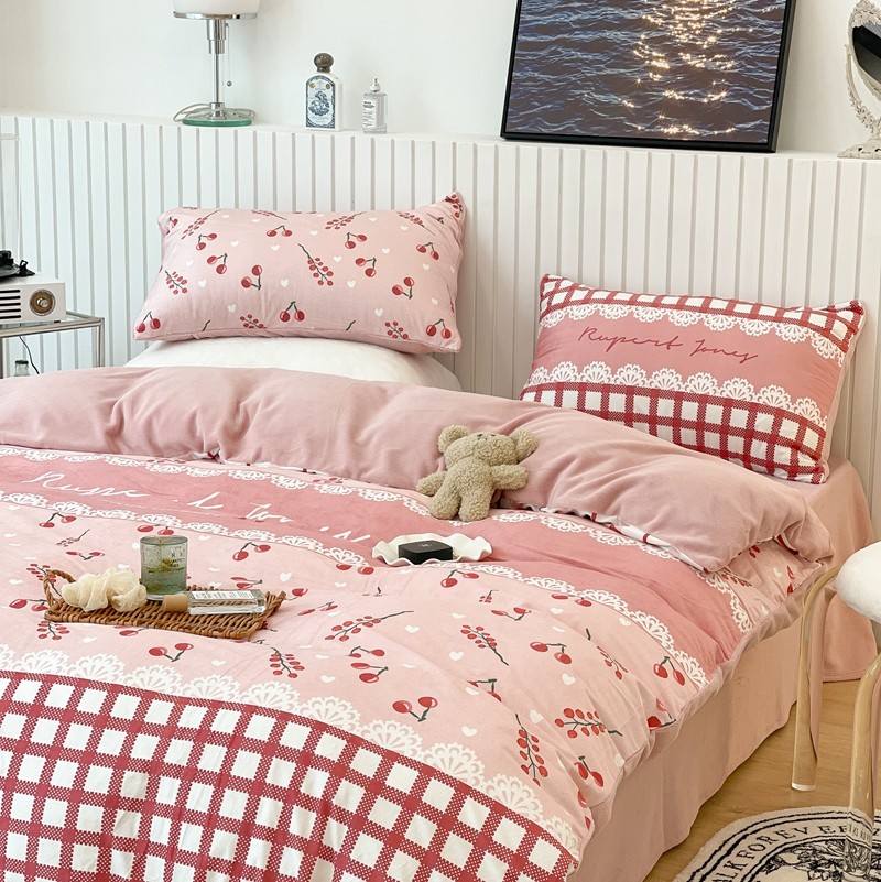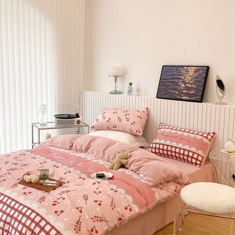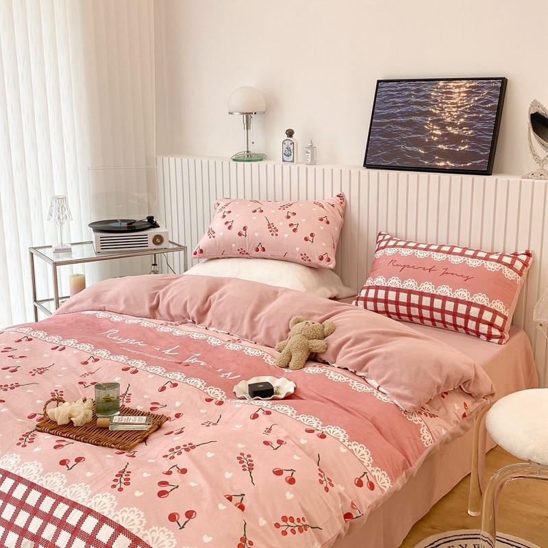 (总)昔可家纺 2024新款印花牛奶绒四件套系列-ins少女系列,芭蕾蛋糕,芭蕾美学,粉格蝴蝶结,黑粉芭蕾蝴蝶结,蓝格蝴蝶结,樱桃奶油蛋糕