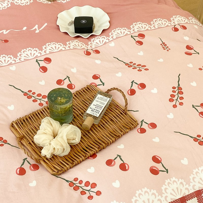 (总)昔可家纺 2023新款全棉小花系列四件套,柏林少女,小小的樱桃,紫色葡萄